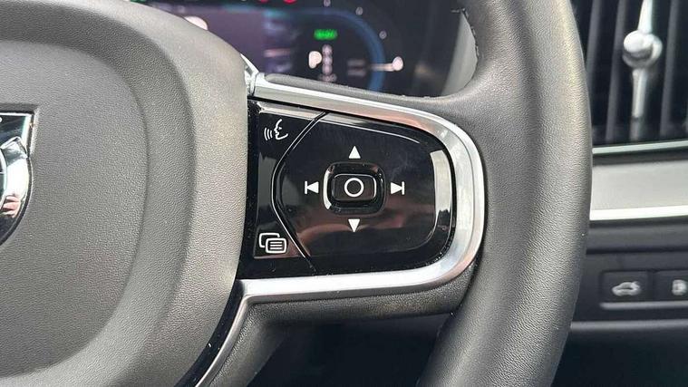 12.3" Progressive Driver Display, 360 degree surround view parking camera with side proximity sensors, 9" centre console touch screen, Adjustable steering wheel force, Apple carplay (wired), Bluetooth handsfree system, Drive mode settings, Driver alert control with lane keeping aid, Driver assistance (pilot assist and adaptive cruise control), Emergency services call system, Front and rear park assist, Google Automotive Services, Oncoming Lane Mitigation, PAS, Service interval indicator, Speed limiter, Speed sensitive steering, Trip computer, Volvo on call with App, Wireless/Inductive Mobile Phone Charging, 3.7 kW monophase on board charger, 7m 10amp charge cable with 3 pin plug and 6m 3 phase 16amp type 2/mode 3 charge cable, 8 speed automatic transmission with start/stop + manual change functions, Dynamic chassis, Electric rear axle drive, Recharging port located in nearside front wing, DAB Digital radio, Low speed exterior sound speaker, Premium Sound by Harman Kardon, dirac unison, dolby pro logic II surround sound, 13 speakers/600W output and fresh air subwoofer, Steering wheel remote infotainment controls, Adaptive brake lights with high level LED brake lights, Auto dimming interior + exterior mirrors, Automatic headlight levelling system, Automatic LED Headlights + Active high beam incorporating daytime running lights, Electric adjustable/heated/auto power folding door mirrors, Electric front+rear windows, Heated front windscreen, High gloss black door mirrors and window surround, High gloss black front and rear bumper decoratives, High gloss black mesh front grille with high gloss black surround, Home safe and approach lighting, Integrated roof rails in high gloss black, Power glass tilt and slide panoramic sunroof with sun curtain, Puddle lights, Rain sensor with automatic windscreen wiper activation, Rear side wing doors, Rear wiper, Roof antenna, Roof spoiler, Tinted windscreen, Visible VIN plate, 12V socket in front tunnel console and luggage compartment, 2 zone electronic climate control with Clean zone air quality system and pollen filter, 3 seat bench in 2nd row, A-pillar parking ticket holder, Air purifier particulate matter (PM) 2.5 filter, B Pillar ventilation, Bright metal luggage threshold, Centre console cupholders and storage, Charcoal floor mats, Front and rear courtesy lights, Front and rear door pocket illumination, Front cupholder illumination, Front footwell illumination, Front reading lights, Front seat cushion extensions, Glovebox compartment with illumination, Head restraints for all seats, Heated front seats, Heated steering wheel, Height/reach adjustable steering column, Illuminated luggage compartment, Illuminated vanity mirrors + ticket holder, ISOFIX attachment on outer rear seats, Load cover, Load protection net, Multi directional lumbar support, Power driver seat with memory + exterior mirrors memory, Power height adjustable passenger seat, Rear armrest with cupholder, Rear footwell and front and rear side step illumination, Rear seat concealed storage, Recharge aluminium tread plates, Single front passenger seat, Tailgate illumination and ambient door lighting, Underfloor stowage compartment, Versatile split folding rear seat - 60/40, 5 three point seatbelts, City safety with steering support with Pedestrian + cyclist + front collision warning with full auto brake and rear auto brake, Drivers knee airbag, Dual stage driver/passenger airbags, Electronic parking brake with auto hold, First aid kit, Front seats SIPS airbags, Hill descent control - Off-road drive mode, Hill start assist, IC (Inflatable Curtains) - Full Length, Passenger airbag cut-off device, Power child locks on rear doors, Road sign information display, Run off Road Mitigation, Run off Road Protection, Seatbelt reminder and pretensioners, SIPS (Side Impact Protection System), Slippery road and hazard light alert, Stability and Traction Control with Spin control, Engine Drag Control and Corner Traction Control, Tyre pressure monitoring system, Vehicle deceleration control with Anti-lock Brake System, Electronic Brake Distribution and Emergency Brake Assist, Warning triangle, WHIPS whiplash protection system - front, Anti-theft alarm including immobiliser/volume sensor + level sensor, Care key with user defined top speed, Key integrated remote control central locking + fuel flap with deadlocking system and auto open/close power windows, Keyless Drive (includes Keyless Entry and Keyless Start) with Handsfree Tailgate Opening/Closing, Locking wheel nuts, Private locking for tailgate, Tyre sealant kit + 12v compressor,