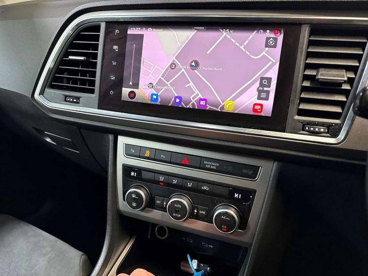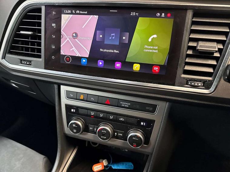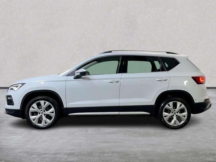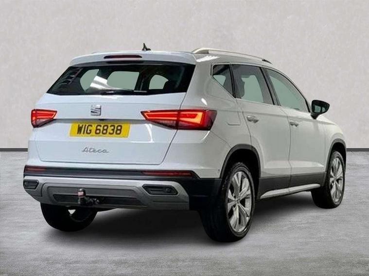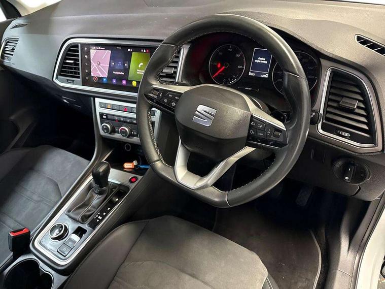 8" Digital cockpit, Colour multi-function on board computer display, E-call, Outside temperature gauge, Progressive power assisted steering, Rear view camera, SEAT drive profile with driving experience button - Normal, Sport, Eco and Individual mode, gearshift, steering and throttle response, Self parking functionality (includes front and rear parking sensors), Trip computer, Wireless full link smartphone integration, Wireless phone charger, Steering wheel mounted audio/phone controls, Black simulated exhaust pipes, Black wheel arch surrounds, Body colour bumpers, Chrome front grille frame, Chrome roof rails, Chrome side window trim, Dark tinted rear windows, Daytime running lights, Door mirrors with welcome light silhouette, Dynamic headlight range control with self adjusting whilst driving, Electric adjustable/heated/folding door mirrors, Front and rear electric windows, Front grille hot stamping, Full LED headlamps with lens and LED front fog lamps with cornering function, Heated windscreen, Illuminated aluminium front door sill, LED rear tail lights with dynamic indicators, Rear fog lights, Rear side wing doors, Rear wash/wipe, Reflex silver side mouldings, Third brake light, 12V socket in front, 3 seat bench in 2nd row, 60/40 split folding rear seat, Drawer under right front seat, Dual zone climate control, Front and rear head restraints, Front centre armrest, Front seat back storage pockets, Height adjustable driver and passenger seat with lumbar adjustment, ISOFIX points in outer rear seats with top tether anchorage points, Leather steering wheel and gear knob, Microsuede upholstery with front comfort seats, Rear armrest and easy back seat release mechanism from boot, Single front passenger seat, Steering wheel mounted gearshift paddles, Convenience pack - Ateca, Interior lighting pack - Ateca, Navigation system pack with DAB - Ateca, Safe and driving pack with lane assist - Ateca, 3x3 point rear seatbelts, ABS, Traction control system (TCS), Electronic stability control (ESC) and Electronic differential lock system (XDS), Airbags - Driver and front passenger airbag with deactivation, front side, two curtain and driver's knee airbags, Electric parking brake with auto hold function, Front and rear seatbelt reminder, Hill hold control, Manual rear child locks, Tiredness recognition system, Traction control, Tyre pressure monitoring system, Alarm, Keyless entry, Locking wheel bolts, Chrome interior detailing, 18" Brillaint silver alloy wheels,