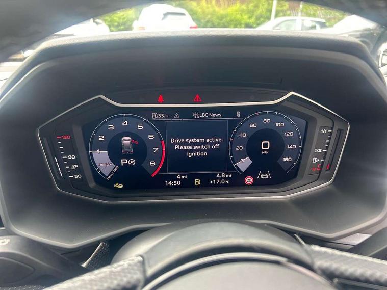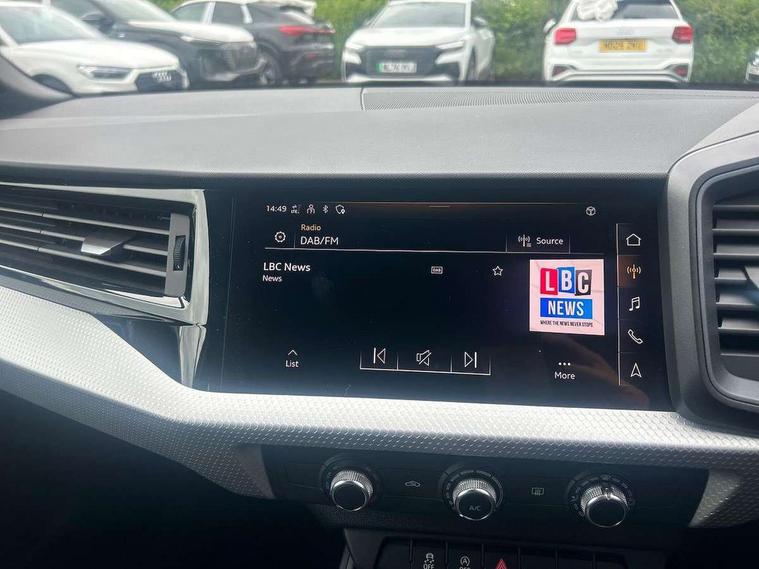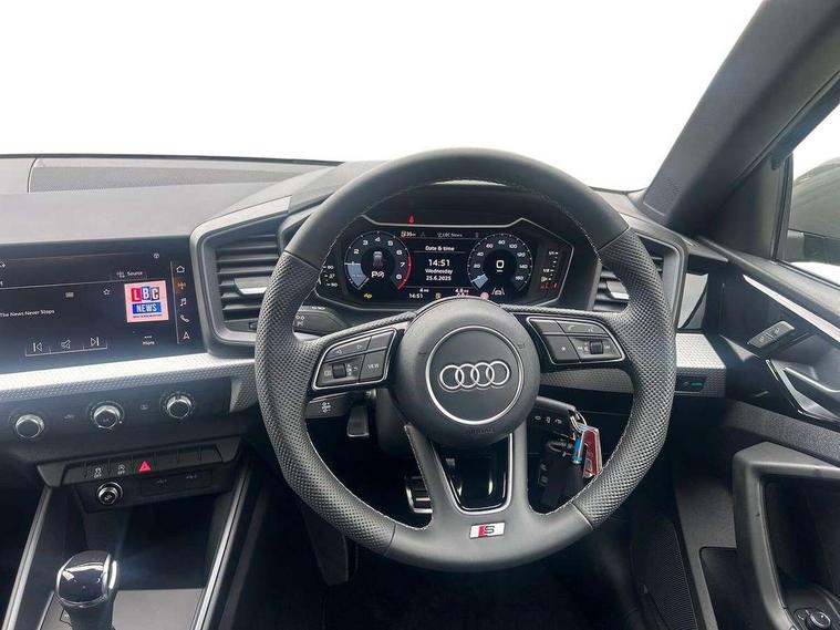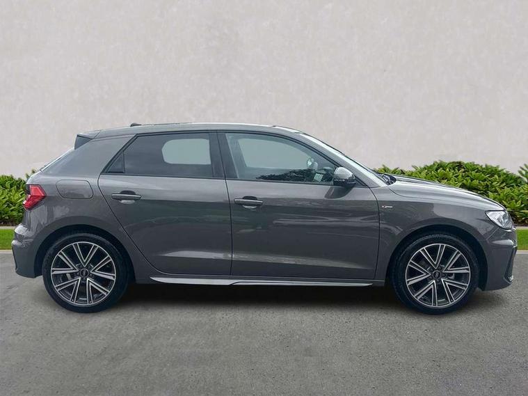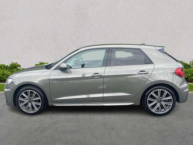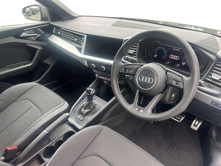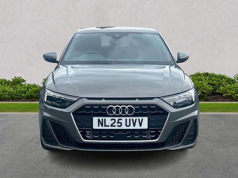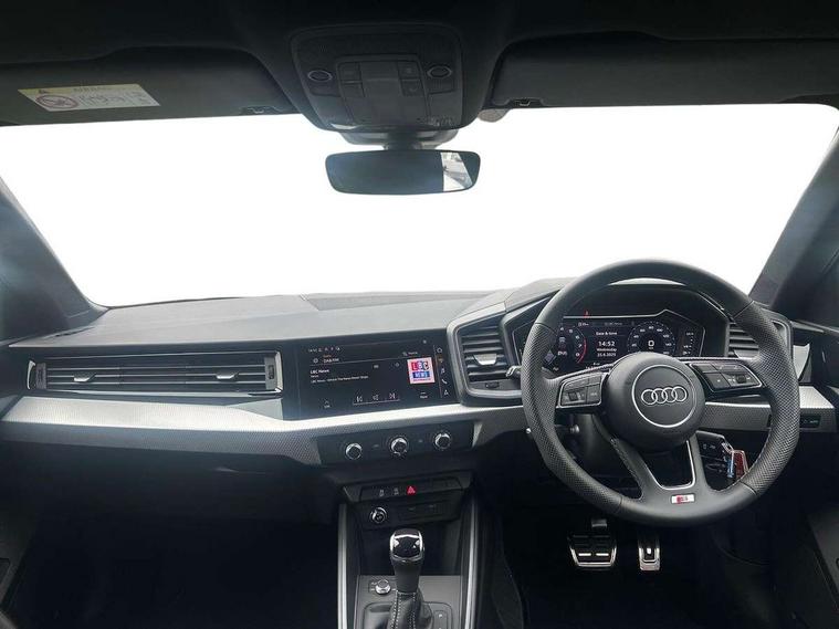 10.25" Digital instrument cluster display screen, Audi connect safety emergency and service including E-call, Audi smartphone interface, Automatic start/stop system, Bluetooth interface, Driver's information system, Electromechanical power steering, Lane departure warning system, Service interval indicator, Speed limiter, Voice control system, Washer fluid level indicator, Sports suspension, 1 x SDXC card reader, 1 x USB type C and 1 USB type A charging points, Audi music interface, Bluetooth audio streaming, DAB Digital radio, MMI radio plus with 8.8" colour MMI display screen and MMI touch, Adaptive brake lights, Auto dimming rear view mirror, Body colour side sill mouldings, Body coloured bumpers, Body coloured door mirrors, Door sills with aluminium inlays and S Line logo, Electric front and rear windows, Front side air inlets in grained matt black and C frame in titanium black, Heat insulating glass windscreen and side windows, Heated rear windscreen, LED headlights with LED rear lights + dynamic rear indicators, Matt aluminium silver tailpipe trim, Matt black radiator grille frame, Matt platinum grey in front spoiler clip and rear diffuser clip, Rain and light sensors, Rear fog lights, Rear wiper, S line badges on front wings, S line exterior bumpers, S line roof spoiler, Side air inlet frames titanium black, Side front spoiler lips in grained matt black, 12V socket in centre console with two cup holders, 3 rear seats, Black cloth headlining, Driver and passenger seat with manual height adjust with forward and backwards adjustment, Front and rear black floor mats with contrast stitching in fine silver, Front head restraints, Height and reach adjustable steering wheel, ISOFIX child seat mounting in front passenger and rear outer seats, Leather gear knob with aluminium trim, Leatherette handbrake grip, Luggage compartment light with front and rear reading lights, Lumbar adjustment for front seats, Rear head restraints, Split folding rear seats, Stainless steel pedals, 3x3 point rear seatbelts, Brake assist function, Driver and front passenger airbag with front side and head airbags, Electronic Stability Control including ABS, EBD, ASR and EDL, Front and rear seatbelt reminder, Front passenger airbag deactivation switch, Hill hold assist, Seatbelt height adjustment for front seats, Seatbelt monitoring, Tyre pressure warning light, Warning triangle and first aid kit, Anti theft alarm, Anti theft wheel bolts and loose wheel warning, Audi pre-sense front with pedestrain and cyclist recognition, Immobiliser, Remote central locking with 2 remote folding keys, Aluminium trim for control switches, air vents and digital instrument cluster, Silver grey inlays polygon structure in diamond paint finish, Structured grey accent areas including air vents, door handle recesses and centre console in quartz paint finish,