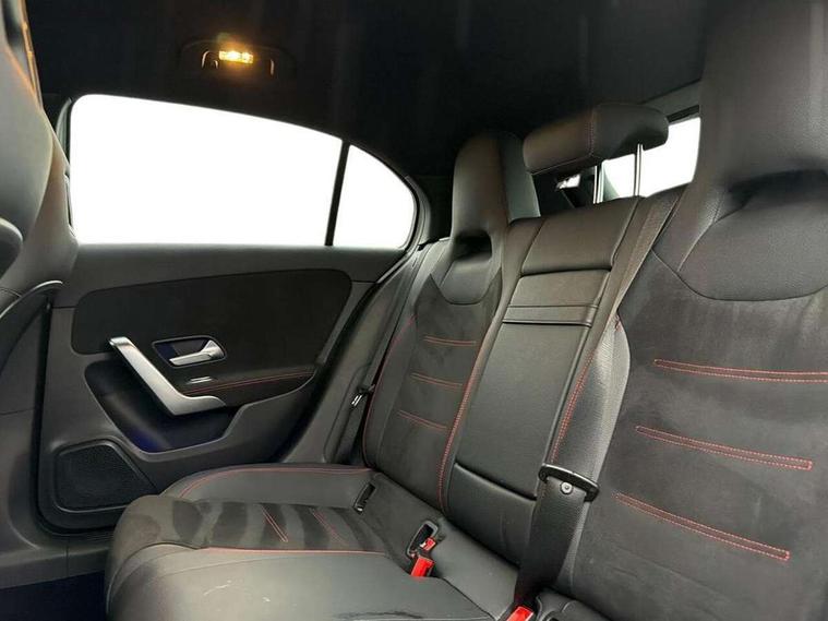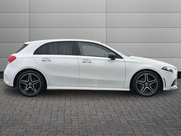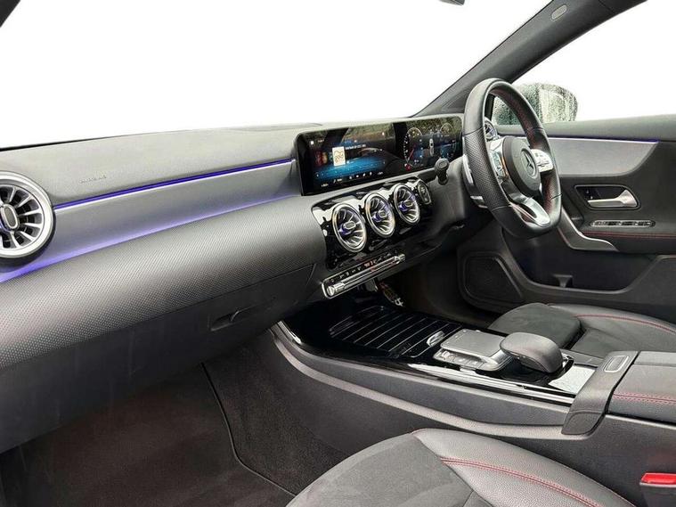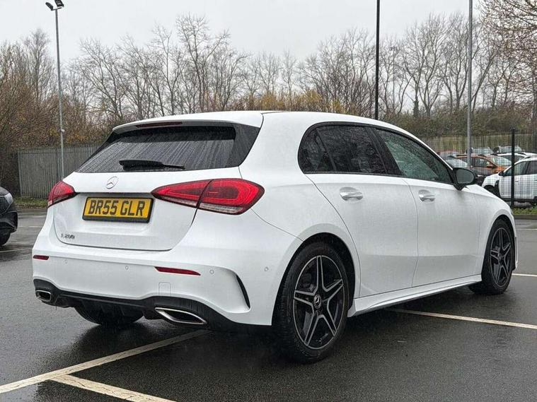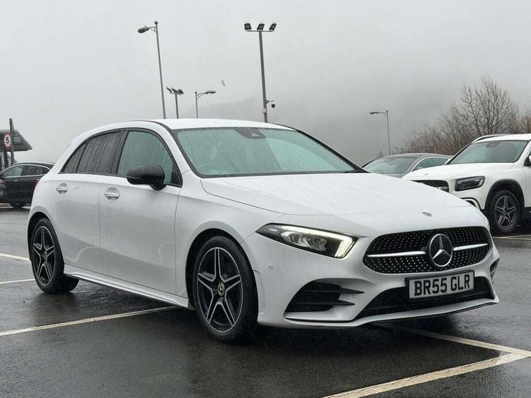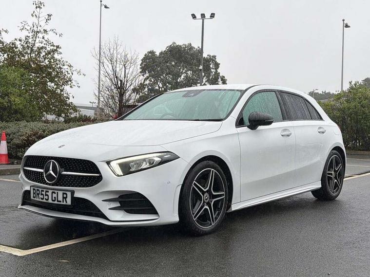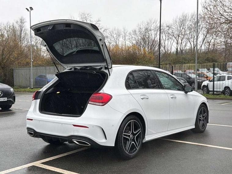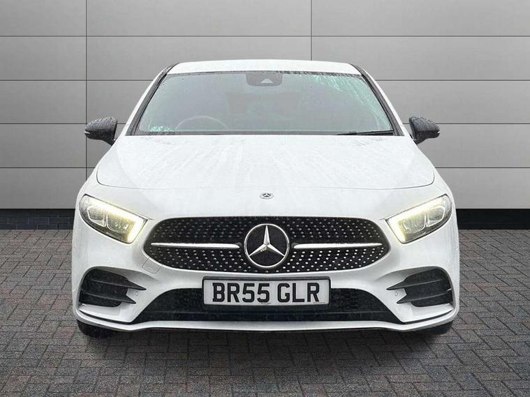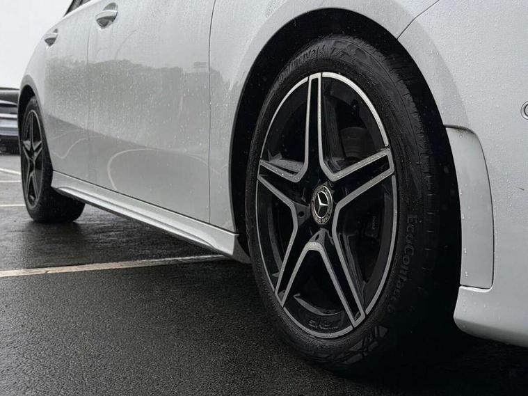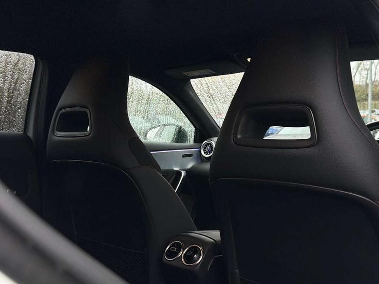 10.25" Digital instrument cluster display screen, 10.25" media display, 180 degree rear view camera with parking guidelines, Active parking assist with visual and audible warning of detected obstacles, Attention assist, Brake pad wear indicator warning light, Car wash mode, Cruise control + speed limiter, Direct steering, Dual bluetooth interfaces, DYNAMIC SELECT with a choice of driving modes (ECO, Comfort, Sport and Individual), ECO start/stop function, Fluid level warning indicator for fuel, oil, coolant and washer fluid, Hard-disk navigation, Hey Mercedes Voice activation, Lamp failure indicator, Lane keeping system, Mercedes me connect including emergency call system, accident recovery, breakdown and maintenance management, Mercedes me remote services, Outside temperature gauge, Owners manual in English, Pre-installation for private car sharing, Preinstallation for Mercedes Benz link, Service indicator (ASSYST), Smartphone integration with Apple CarPlay and Android auto, Speed limit assist, Speed sensitive power steering, Trip computer, Ultrasonic sensors positioned in the front and rear bumpers, Lowered comfort suspension, Rear axle torsion beam, 2 USB ports (type C) in rear stowage compartment and one in front of center console, 6 speakers, DAB Digital radio, MBUX multimedia system with DAB digital radio and touchpad including satellite navigation, Mercedes-Benz sound system - 100W, 4 Electric Front and Rear windows, Adaptive brake lights, AMG bodystyling - Front apron with splitter in chrome, rear apron with chrome trim and chrome visible trim elements in tailpipe, Automatic headlights, Black weather strip, Body colour bumpers, Body colour door handles with chrome inserts, Body colour side skirt, Electric adjustable and heated door mirrors with integrated LED side indicators, Exclusive diamond radiator grille, Exhaust system - Twin visible tailpipes in polished stainless steel, Headlamp assist automatic headlamp activation, Heated glass rear windscreen + timer control, LED High level third brake light, LED high performance headlamps with integrated LED daytime running lights, LED tail lamp, Privacy glass, Radio aerial, Rain sensing windscreen wipers with two sensitivity settings, Rear fog lights, Rear side wing doors, Rear wiper, 3 seat bench in 2nd row, 3 Spoke flat bottom leather multi function steering wheel with perforated leather in grip area, 40:20:40 split folding rear seats, Artico man-made leather/Microfibre Dinamica upholstery with red contrast stitching, Auto Mercedes-Benz child seat recognition sensor, Black air vents with surround in silver chrome, Black roof lining, Brushed stainless steel sports pedals with rubber studs, Controller on centre console with chrome surround, Floor mats with AMG lettering, Front centre armrest with storage compartment, Front seat backs luggage nets, Galvanished gear shift paddles on steering wheel, Heated front seats, Height/reach adjustable steering column, Illuminated Mercedes Benz lettering front door sills with changeable cover, Interior lighting - 64 colour Ambient lighting, Interior mirror with reading lamps in black and frameless, Manual height adjustable front seats, Rear armrest with 2 cupholders, Rear head restraints, Seat occupancy sensor for front passenger seat, Single front passenger seat, Sports seats with integrated headrests, Stowage compartment in centre console with retractable cover, Sunvisors with illuminated vanity mirrors, Touchpad on center console, Twin front cupholders, Two zone thermotronic luxury automatic climate control, Light and sight pack - A Class, Mirror package - A Class, Night pack - A Class Saloon/Hatchback, Seat comfort pack - A Class, 3 rear 3 point seatbelts, ABS with Brake Assist, Active bonnet, Active brake assist includes forward collision warning system with autonomous braking, Adaptive brake assist with hold function and hill start assist, Black seatbelts, Childproof locks manually operated for rear doors and electrically operated for rear power windows, Crash responsive emergency lighting, Driver and passenger head and side airbags, Drivers knee airbag, Dual stage driver/passenger airbags, Electronic parking brake, ESP curve dynamic assist, ESP with ASR, Front and rear seatbelt reminder, Front brake callipers with Mercedes Benz lettering, ISOFIX and top tether child seat fixing points in two outer rear seats, Tyre pressure monitoring system, Warning triangle and first aid kit, Window airbags, Alarm system/interior protection/immobiliser, Keyless entry lock/unlock, Keyless Go, Remote central locking and crash sensor with emergency opening function, Urban guard vehicle protection system with immobiliser and interior protection, Matrix look light longitudinal grain aluminium trim element, 18" AMG 5 twin spoke light alloy wheels aerodynamically optimised painted in black with highsheen finish, Summer tyres, Tirefit sealant kit,