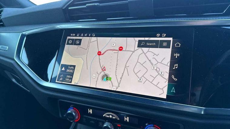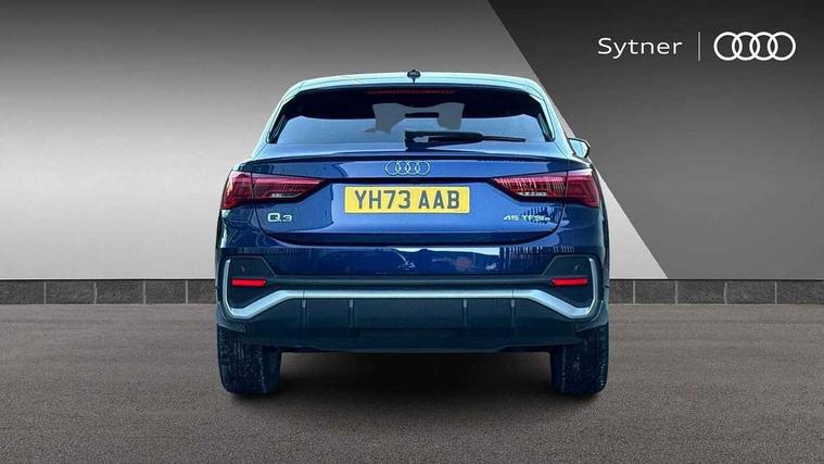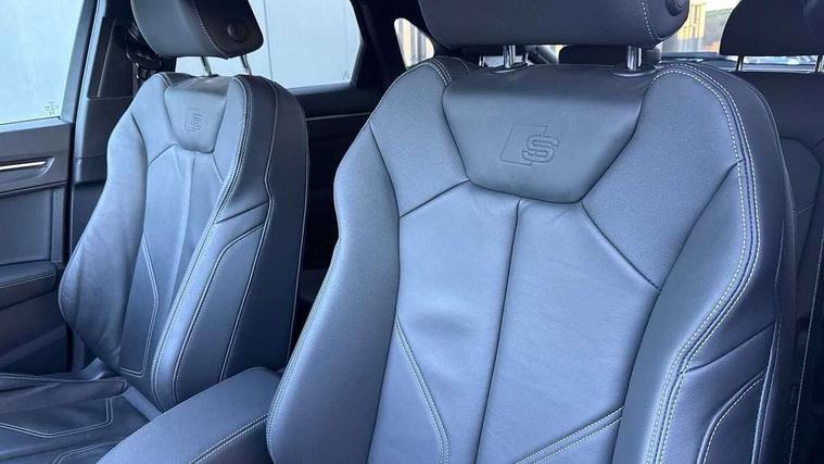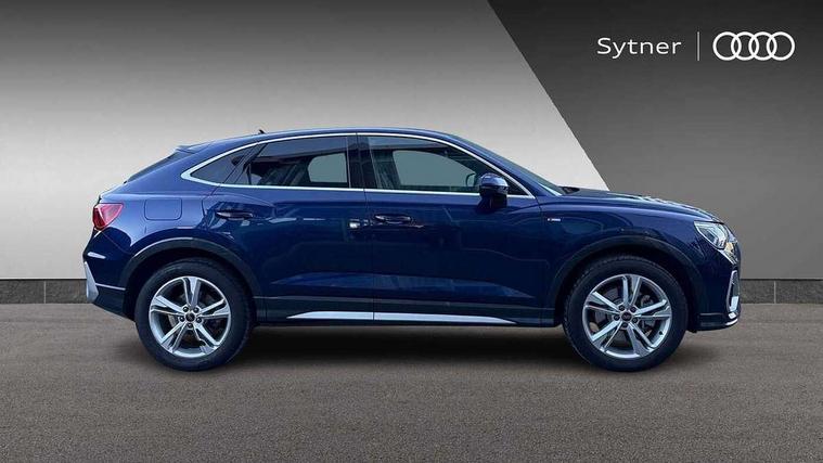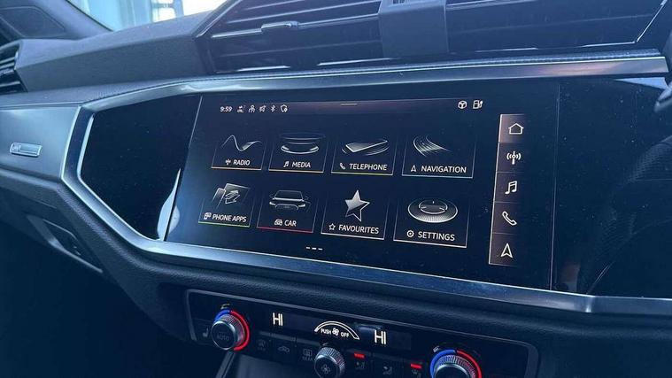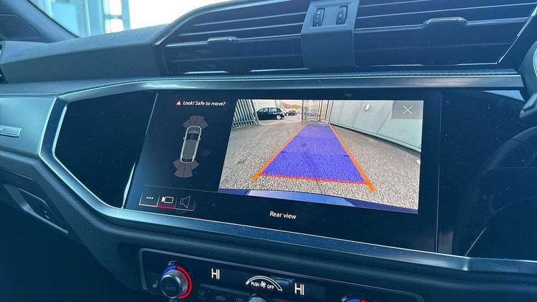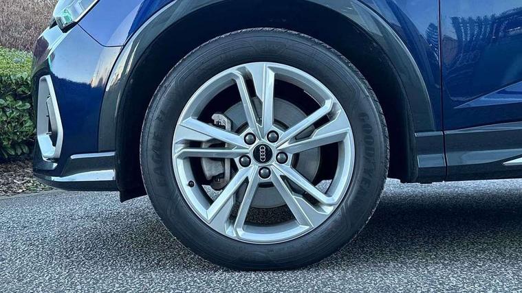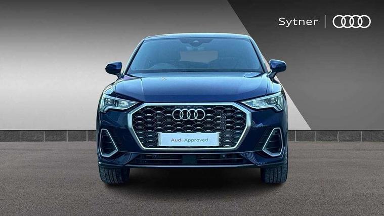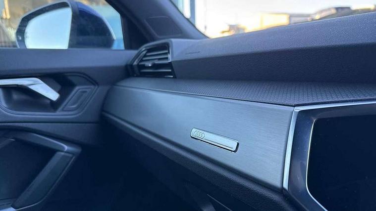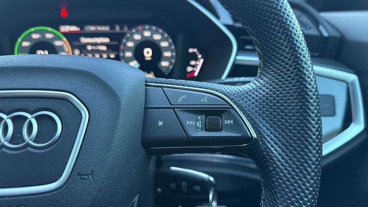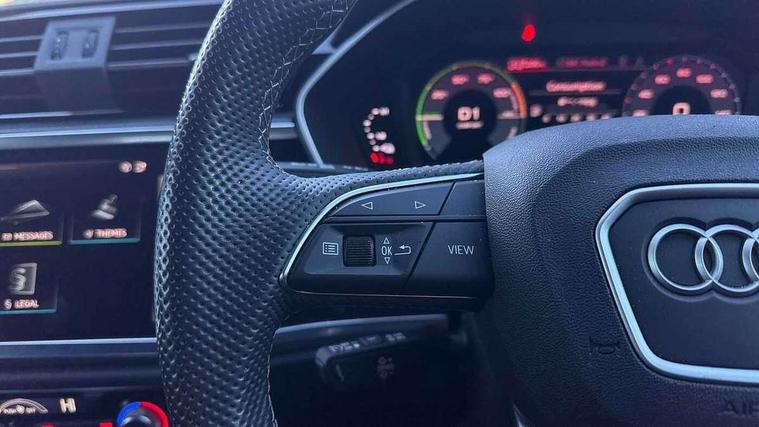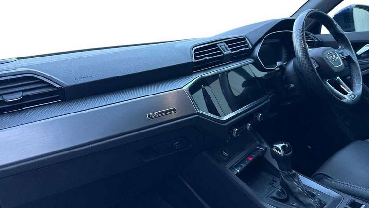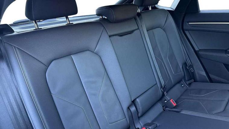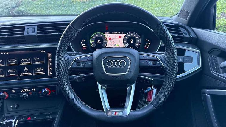 Audi drive select, Audi lane departure warning, Audi Virtual Cockpit - 10.25" display, Bluetooth interface, Camera based traffic sign recognition, Legal emergency call, MMI Navigation Plus with high resolution 10.1 inch touchscreen colour display, Power operated tailgate, Progressive steering, Service interval indicator, Smartphone interface includes wireless Apple carplay/Android Auto, Start stop system with recuperation, Voice control system with natural language interaction, 3 pin 10 amp domestic charging cable, 3.6 kw On-board charger, Standard suspension, Type 2 mode 3 32 amp charging cable, Type 2 socket for AC charging, 2 USB-C ports with charge and data functions, 6 passive loudspeakers, DAB digital radio module, Acoustic windscreen, Aluminium window trim, Auto dimming frameless rear view mirror, Diffuser grille in grained matt black, Diffuser trim in selenite silver, Electrically folding, adjustable and heated door mirrors with integrated LED side indicators and kerb view function for passenger side, Front and rear electric windows, Front fog lights, Front side air inlets in selenite silver, Front underbody protection in manhattan grey paint finish, Grille surround in aluminium silver matt, High gloss black finish B and C pillars, LED Dynamic rear indicators, LED headlights with LED daytime running lights, LED rear lights, LED third brake light, Privacy glass dark tinted rear and rear-side windows (from B-pillar backwards), Radiator grille in anthracite black with inlay in matt aluminium silver, Rain and light sensors, Rear side wing doors, Rear underbody protection in matt black, Rear wiper, S line badges on front wings, S line front and rear bumpers and side skirts in contrasting Manhattan grey paint finish, Side skirt insert in matt Platinium grey, Variable front intermittent wipers, 12V socket in rear centre console, 3 seat bench in 2nd row, 3 spoke leather multifunction steering wheel features S badging and grips in perforated leather with contrast stitching, 40:20:40 folding with manual adjustment for 60:40 forwards/backwards position and backrest angle, Adjustable rear seat bench/backrest with centre armrest and cupholder, Black cloth headlining, Dual zone electronic climate control, Front and rear black floor mats with contrast stitching, Front and rear headrests, Front and rear roof module including reading lights, Front centre armrest, Glove compartment lighting, Height and reach adjustable steering wheel, Illuminated door sill trims with S logo, ISOFIX child seat mounting for front passenger with airbag deactivation and outer rear seat including top tether attachment point for outer rear seats, Luggage compartment light right in white, Luggage compartment sill protection in stainless steel, Manual front seats with height adjustment, Perforated leather gearknob, Single front passenger seat, Stainless steel pedals, Ambient lighting pack - Q3, Non smoking pack - Q3, 3x3 point rear seatbelts, 6 airbags - Driver, front passenger, curtain and side windows, Audi pre-sense front with pedestrain and cyclist recognition, Electrically operated child locks on rear doors, Electromechanical parking brake, Electronic stabilisation control including ABS, ASR and EDL, Front seatbelt reminder, Hill descent control, Hill hold assist, Pre sense basic, Seatbelt monitoring, Tyre pressure warning, Warning triangle and first aid kit, Anti theft alarm, Anti theft wheel bolts, Immobiliser, Remote central locking, Aluminium look interior elements, Black dashboard, Dark matt brushed aluminium inlay, Detail dashboard around MMI touch colour display in glass look, black with surround in aluminium look, Leatherette door armrest, Tool kit, Tyre repair kit,