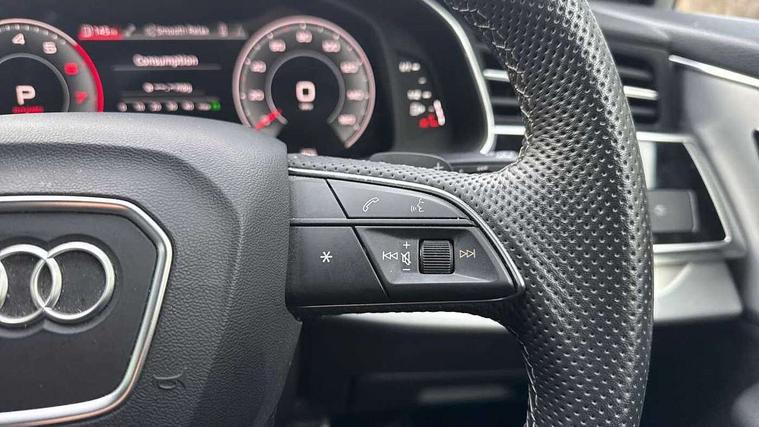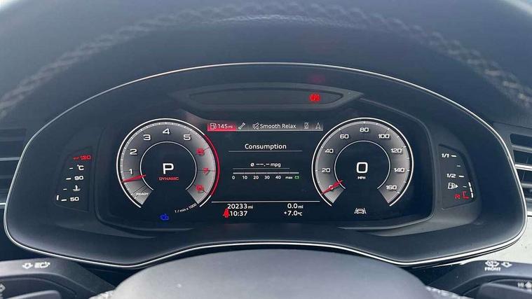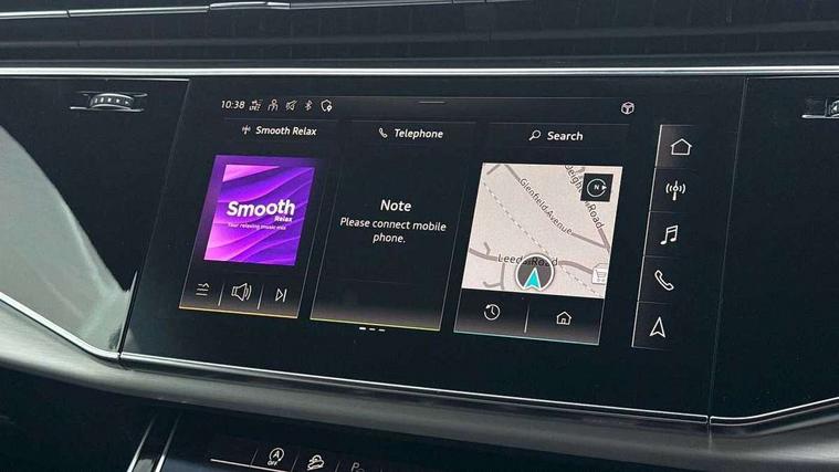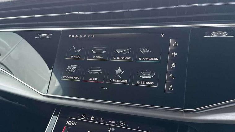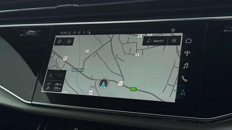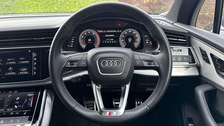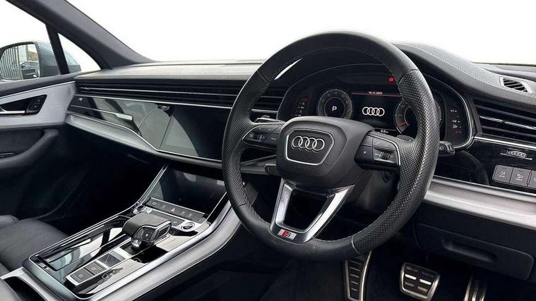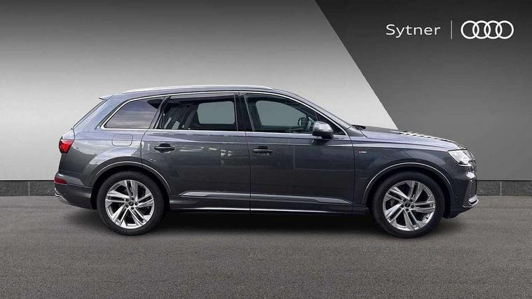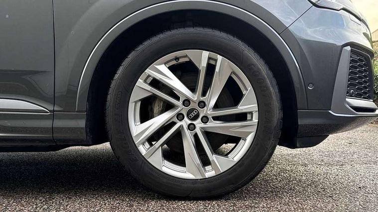 Audi connect safety and service (e-call), Audi connect with Amazon Alexa Integration, Audi drive select (Auto, Comfort, Dynamic, Efficiency, Individual, Off-road and All road), Audi smartphone interface includes wireless Apple carplay/Android Auto, Bluetooth interface, Camera based traffic sign recognition, Electromechanical steering, MMI navigation plus with MMI touch screens includes 10.1" and 8.6" screens with haptic feedback, Natural voice recognition, Parking system plus with 360 degree display (front, rear and side sensors) - acoustic and visual park assist system, Power operated tailgate, Rear view camera, Start/stop system, 48V Mild hybrid technology, 85 litre fuel tank, Adaptive air suspension, Quattro all wheel drive with self locking centre differential, Audi music interface - front 2 USB-C ports with charger and data functions, Audi sound system with 6 channel amplifier, 180 watt amplifying capacity and 10 loudspeakers including subwoofer, DAB digital radio module, 3rd brake light, Aluminium roof rails, Aluminium window trim, Audi matrix LED headlights with dynamic front and rear indicators, Auto dimming frameless rear view mirror, Body coloured door mirrors, Electrically adj heated/folding + automatically dimming exterior mirrors with memory + automatic kerb side function for passenger side exterior mirror, Heat insulating glass in windshield, Integrated LED indications in door mirrors, LED daytime running lights, LED rear tail lights, Privacy glass - dark tinted rear and rear side windows from B-pillar backwards, Rear side wing doors, Rear wiper, S Line badge on wings, S line bumpers in full body colour paint finish, S line roof spoiler, S line styling side ventilation grilles and side skirts, 2 seat bench in 3rd row, 2 zone automatic climate control, 3 seat bench in 2nd row, 7 seat layout with ISOFIX points for the front passenger seat and rear passenger seat, Black cloth headlining, Comfort front centre armrest, Electric adjustable front seat with 4 way lumbar support, driver memory functionality, Folding rear seats, Front head restraints, Front/rear floor mats, Heated front seats, Illuminated door sill trims with S logo, LED interior ambient lighting, Luggage compartment cover, Luggage compartment sill protection in stainless steel, Rear head restraints, Single front passenger seat, Stainless steel pedals, Sunvisors with illuminated vanity mirrors, Tool kit, 3 point seatbelts on all rear seats, Audi pre sense front, Child locks on rear doors, Driver and front passenger, front side and curtain airbags, Electromechanical parking brake, Electronic Stabilisation Control (ESC) including ABS, ASR and EDL, Extended pedestrian protection measures, Hill hold assist, Seatbelt monitoring, Tyre pressure loss indicator, Warning triangle and first aid kit, Anti theft alarm, Anti-theft wheel bolts and wheel loosening detection, Keyless Go, Remote central locking, Darkened matt brushed aluminium inlays, Tyre repair kit,