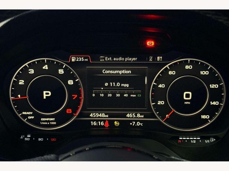 Audi connect navigation and infotainment includes innovative services, Audi connect remote and control connects your vehicle to your smartphone, Audi drive select, Audi drive select - Power steering assistance + engine + gearshift, Audi drive select with efficiency, Audi smartphone interface, Audi virtual cockpit, Automatic start/stop system with recuperation, Bluetooth interface includes bluetooth audio streaming, Cruise control, MMI navigation plus with MMI touch, Power operated tailgate, Progressive steering, Rear parking sensors, 2 x SDXC card reader, 8 passive loudspeakers, DAB Digital radio, DVD Drive, Auto dimming rear view mirror, Black window trims, Body colour door mirrors, Electrically adjustable, folding, auto dimming and heated door mirrors with integrated LED side indicators, Front windscreen with grey tinted sunband, LED headlights with LED rear lights, S Line badges on the front wings, S Line body styling - front and rear bumpers, side skirts, radiator grille, rear diffuser insert and front air intakes, Wheel arch trims in manhattan grey, 4-way electric lumbar support for front seats including seat height adjustment for both front seat, 60/40 split folding rear seat bench, Black cloth headlining, Front and rear head restraints, Front centre armrest, Front/rear floor mats, Height/reach adjust steering wheel, Illuminated door sill trims with S logo, ISOFIX child seat mounting for front passenger with airbag deactivation and outer rear seat including top tether attachment point for outer rear seats, Stainless steel pedals, 3x3 point rear seatbelts, 6 airbags - Front, curtain and front side airbags, Electromechanical parking brake, Electronic stabilisation control including ABS, ASR and EDL, Hill hold assist, Pre-sense front with pedestrian recognition, Seatbelt monitoring, Tyre pressure warning light, Warning triangle and first aid kit, Anti theft alarm, Anti theft wheel bolts, Electronically operated child locks, Aluminium interior element, Matt brushed aluminium trim inlays, Tool kit,