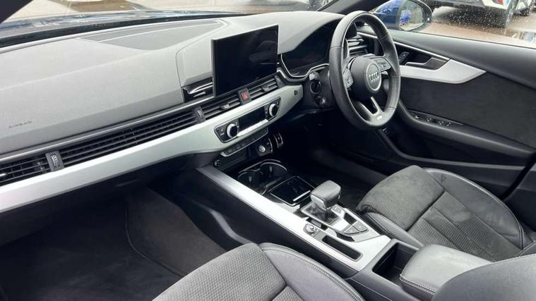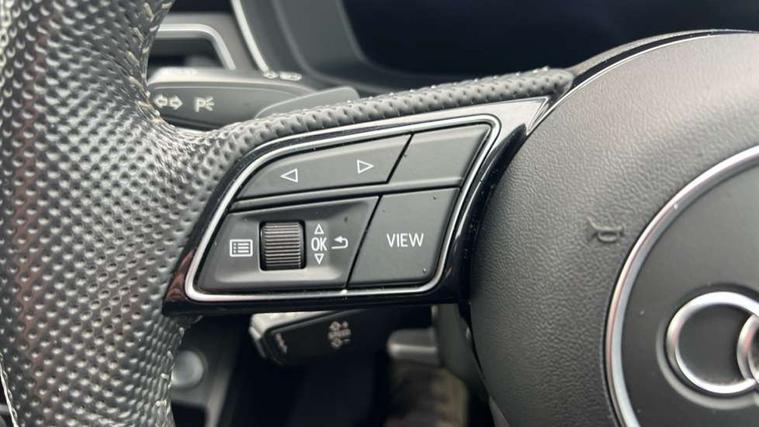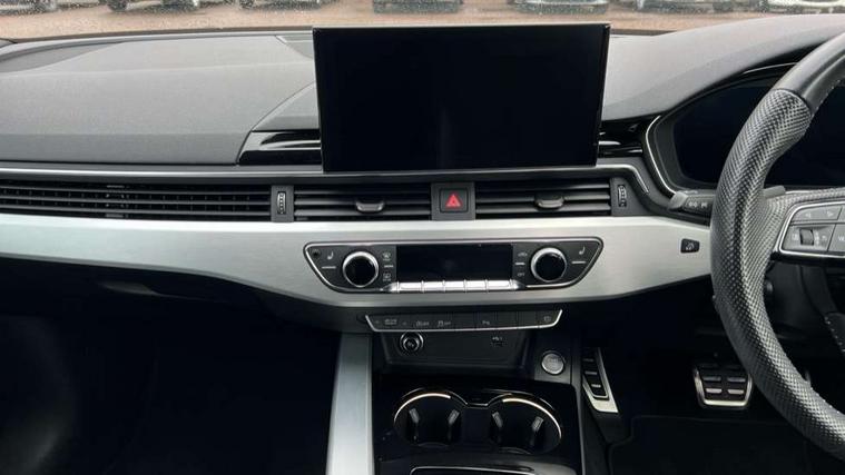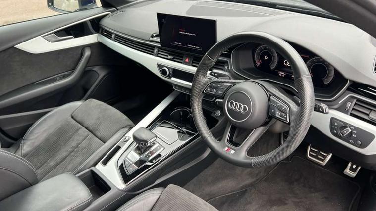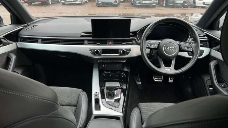 Audi connect safety and service (e-call), Audi drive select, Audi parking system plus with front and rear sensors, Audi smartphone interface, Audi virtual cockpit, Automatic start-stop system with coasting functionality and efficiency programme, Bluetooth interface, Electromechanical power steering, MMI Navigation plus with MMI touch includes 10.1" high resolution colour MMI display, 3D map, Power operated tailgate, Rear view camera, Voice control system, 54 litre fuel tank, Sports suspension lowered by 23mm, 2 USB charging ports, 8 passive loudspeakers, DAB digital radio reception, Aluminium roof rails, Auto dimming rear view mirror, Body colour door handles, Body colour front spoiler lip, Body colour side sill trim, Body coloured door mirrors, Electrically folding auto dimming/adjustable/heated door mirrors with LED side indicators and kerb view function for passenger side, Grained matt black side air inlets with matt aluminium silver inlay, High beam assistant, Honeycomb structure radiator grille in grained matt black, LED headlights with LED rear lights + dynamic rear indicators + headlight adjustment and high beam, turning light + LED daytime running lights, Matt aluminium silver tailpipe trim, New design rear diffuser, Privacy glass, Rain and light sensors, S Line badges on the front wings, S line front and rear bumpers with side skirts, S Line rear diffuser in matt titanium black with trim strip in matt aluminium silver, S Line roof edge spoiler, Windscreen with acoustic glazing, 4 way electric lumbar support for driver and front passenger, 40/20/40 split folding 3 rear seat bench in 3 parts with rear centre armrest, Black cloth headlining, Black perforated leather gearknob, Contrast stitching on seats, steering wheel and gear lever gaiter, Deluxe 3 zone electronic climate control, Door sill trims with aluminium inlay, Electric load area cover, Front and rear head restraints, Front centre armrest, Heated front seats, Illuminated door sill trims with S logo, ISOFIX child seat mounting and top tether, Manual seat adjustment, Stainless steel pedals and foot rest, High gloss package - A4, LED Interior light pack - A4/S4, 3 rear seatbelts, 6 airbags - Driver, front passenger, curtain and side windows, Electronic Stabilisation Control (ESC) including ABS, ASR and EDL, Hill hold assist, Multi collision brake assist, Pop-up bonnet for pedestrian protection, Pre sense city, Seatbelt monitoring, Warning triangle and first aid kit, Anti theft alarm, Anti theft wheel bolts, Keyless Go, Matt brushed aluminium inlays, Tool kit, Tyre repair kit,