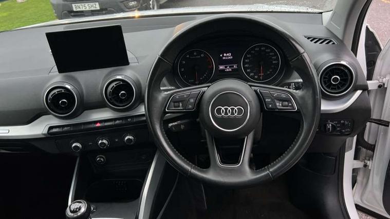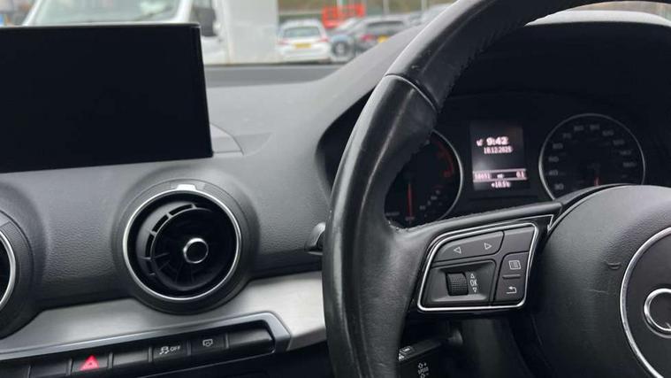 Audi drive select, Audi smartphone interface, Bluetooth hands free telephone connection, MMI - Multi Media Interface control system, MMI SD card Navigation, PAS, Service interval indicator, Voice control system, Dynamic suspension, Audi music interface, Aux input, CD player, DAB digital radio module, MMI radio plus with 7" colour MMI screen and MMI controller, USB port, Body colour door mirrors, Chrome exhaust tailpipe, Door mirror integrated indicators, Electrically adjustable and heated door mirrors, Front and rear electric windows, Rear wiper, Sunband for windscreen, Aluminium door sill trims, Centre console with storage/cupholders, Front and rear door pockets, Front and rear headrests, Front and rear velour floor mats, Front centre armrest, Front sports seats, Glovebox, Height adjustable front seats, Height/reach adjust steering wheel, ISOFIX on front passenger and rear outer seats, Storage compartment in rear centre console, Titanium grey cloth headlining, Non smoking pack - Q2, 3x3 point rear seatbelts, ABS+Electronic Brake force Distribution, Curtain airbags, Driver and passenger airbags, Driver and passenger side airbags, EDL + ASR, Electrically operated child locks on rear doors, Electromechanical parking brake, ESP, Multi-Collision braking, Pre-sense front with pedestrian recognition, Seatbelt warning light, Tyre pressure monitoring system, Warning triangle and first aid kit, Locking wheel bolts, Remote central locking, Thatcham category 1 alarm + immobiliser, Aluminium interior trim,