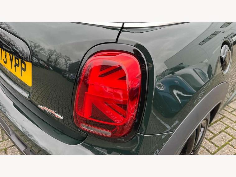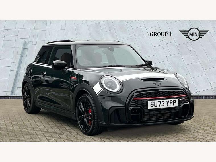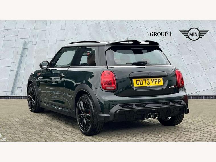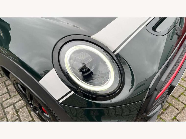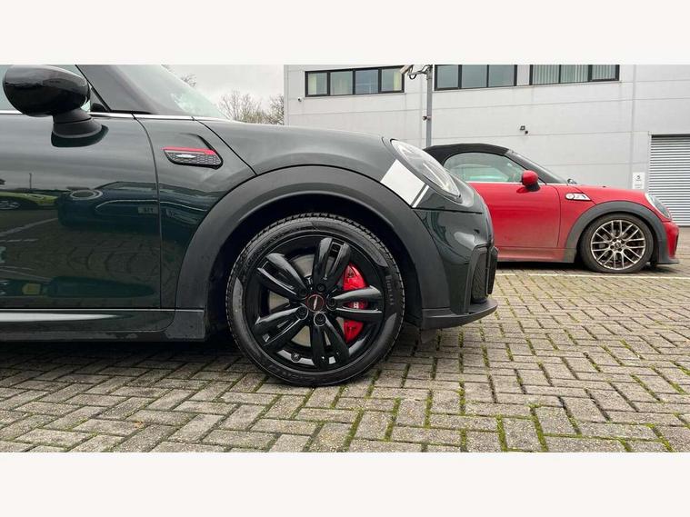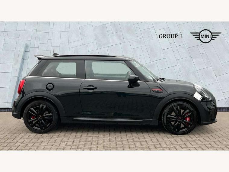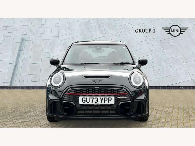 Apple CarPlay, Automatic start/stop function with brake energy recuperation, Compatible mobile phone bluetooth with audio streaming, Cruise control with brake assist, Electro-mechanical speed dependant steering assistance, Flexible car sharing preparation, Instrument cluster, MINI Driving Modes - centre toggle switch to control driving setting (sport, mid and green), Mini E-call, MINI TeleServices, On board computer, Rear park distance control, Service interval indicator, Double Vanos system, Eight speed steptronic sport transmission, with gearshift paddles, Fully variable valve control, High precision injection, Performance Control, 8.8" touchscreen with LED ring, FM tuner and DAB digital radio, 3rd brake light, Automatic headlight activation switch, Bonnet scoop, Dynamic brake lights, Electric front windows, Heated rear window, Heated windscreen washer jets, JCW Aerodynamic kit - Front and rear bumpers with sporty JCW styling and part-painted side sills with MINI John Cooper Works door sill finishers, John Cooper Works logo above an individual grille strut in Chilli Red, John Cooper Works rear spoiler, LED headlight with closed ring and daytime driving lights, Radiator grille piano black border with honeycomb structure in black matt, Rain sensor window wipers, Rear fog lights, Rear LED lights with union jack design, Rear window wiper, Side scuttle panel with integrated indicator, Side scuttle with MINI John Cooper Works logo in black high-gloss with red border, Sun/heat protection glass, Two central exhaust tailpipes with chrome finisher, White indicator lenses, 12V Accessory socket in centre console, 2 seat bench in 2nd row, 4 lashing eyes in luggage compartment, 60/40 split folding rear seat, Anthracite headliner including grab handles and clothes hooks, Carbon black colour line - Knee roll and door armrest, Chrome interior highlights, Cupholders, Front and rear isofix with front passenger airbag deactivation, Front floor mats in velour, Glove compartment, Height and length steering column adjustment, Interior lighting with 12 different colours across the dashboard, underneath door bezel with illuminated laser-engraved design on central display, JCW Sport seats with integrated headrests, adjustable thigh support and John Cooper Works logo, Leatherette gearshift lever and handbrake gaiters, LED reading lights, vanity mirror lights, front foot well light and spotlight on front seats, Manual air conditioning, Mechanical seat adjustment - forward/back & backrest for front seats and driver seat height adjust, Multifunction steering wheel, Passenger seat height adjuster, Rubberised stainless steel pedals, Single front passenger seat, Storage compartments in doors, Storage pocket on back of front seats, Sunvisors with vanity mirrors, Walknappa leather steering wheel with grey seam and John Cooper Works badge on Piano Black lower steering wheel spoke, Navigation pack without Apple Carplay - Mini Hatchback, Piano black exterior pack - JCW, 3 point seatbelts on all four seats, 4-piston fixed-calliper brakes front, 6 Airbags - front, side, head and seat belt tensioners, Anti-lock braking system (ABS), DSC - Dynamic Stability Control, Front and rear disc brakes, Red brake callipers with John Cooper Works logo, Single tone fanfare horn, Tyre pressure monitoring system, Alarm system with tilt sensor, monitoring doors, bonnet interior and tailgate, Electronic vehicle immobiliser, Start/stop toggle with keyless go, Tool kit,