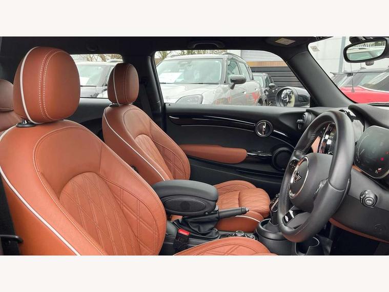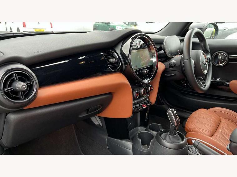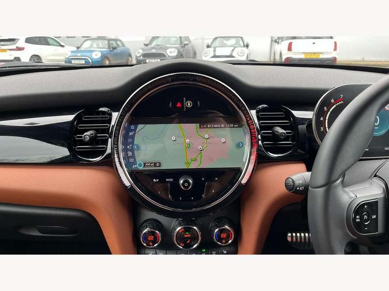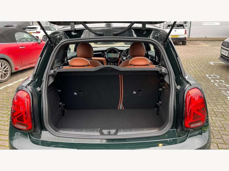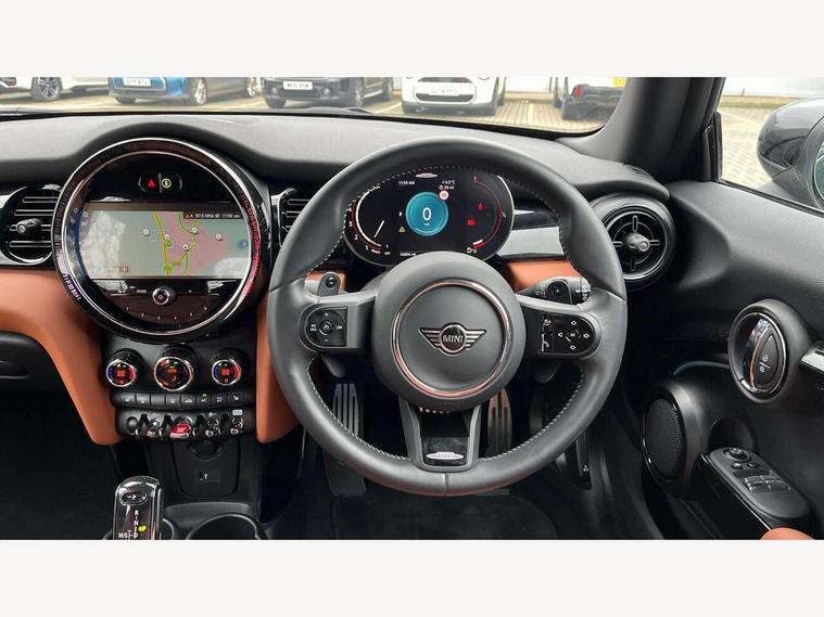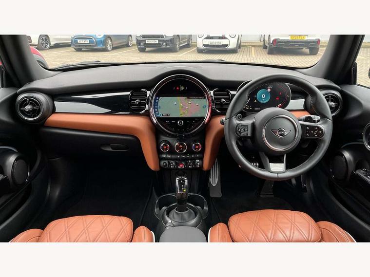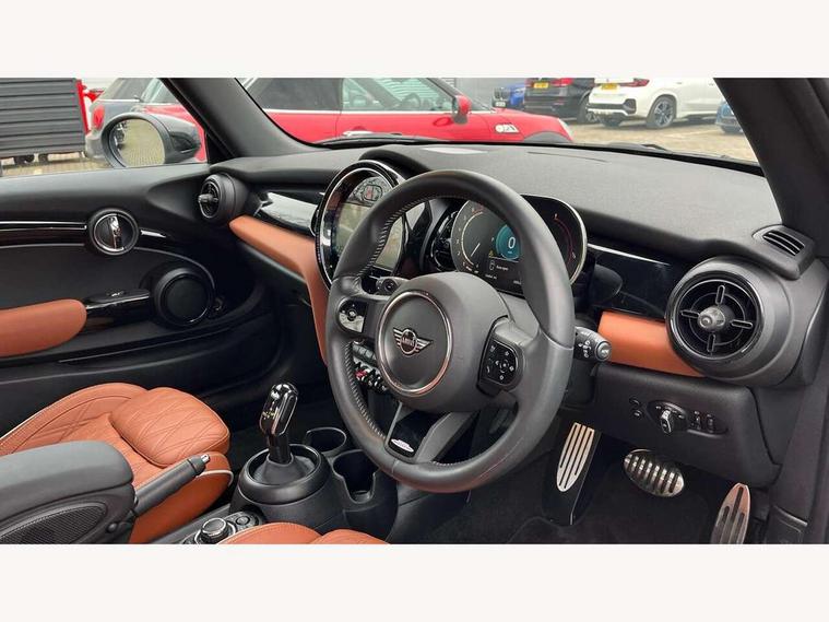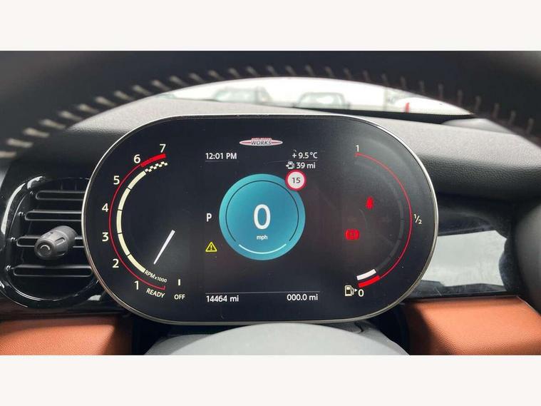 Apple CarPlay, Automatic start/stop function with brake energy recuperation, Compatible mobile phone bluetooth with audio streaming, Cruise control with brake assist, Electro-mechanical speed dependant steering assistance, Flexible car sharing preparation, Instrument cluster, MINI Driving Modes - centre toggle switch to control driving setting (sport, mid and green), Mini E-call, MINI TeleServices, On board computer, Rear park distance control, Service interval indicator, Double Vanos system, Eight speed steptronic sport transmission, with gearshift paddles, Fully variable valve control, High precision injection, Performance Control, 8.8" touchscreen with LED ring, FM tuner and DAB digital radio, 3rd brake light, Automatic headlight activation switch, Bonnet scoop, Dynamic brake lights, Electric front windows, Heated rear window, Heated windscreen washer jets, JCW Aerodynamic kit - Front and rear bumpers with sporty JCW styling and part-painted side sills with MINI John Cooper Works door sill finishers, John Cooper Works logo above an individual grille strut in Chilli Red, John Cooper Works rear spoiler, LED headlight with closed ring and daytime driving lights, Radiator grille piano black border with honeycomb structure in black matt, Rain sensor window wipers, Rear fog lights, Rear LED lights with union jack design, Rear window wiper, Side scuttle panel with integrated indicator, Side scuttle with MINI John Cooper Works logo in black high-gloss with red border, Sun/heat protection glass, Two central exhaust tailpipes with chrome finisher, White indicator lenses, 12V Accessory socket in centre console, 2 seat bench in 2nd row, 4 lashing eyes in luggage compartment, 60/40 split folding rear seat, Anthracite headliner including grab handles and clothes hooks, Carbon black colour line - Knee roll and door armrest, Chrome interior highlights, Cupholders, Front and rear isofix with front passenger airbag deactivation, Front floor mats in velour, Glove compartment, Height and length steering column adjustment, Interior lighting with 12 different colours across the dashboard, underneath door bezel with illuminated laser-engraved design on central display, JCW Sport seats with integrated headrests, adjustable thigh support and John Cooper Works logo, Leatherette gearshift lever and handbrake gaiters, LED reading lights, vanity mirror lights, front foot well light and spotlight on front seats, Manual air conditioning, Mechanical seat adjustment - forward/back & backrest for front seats and driver seat height adjust, Multifunction steering wheel, Passenger seat height adjuster, Rubberised stainless steel pedals, Single front passenger seat, Storage compartments in doors, Storage pocket on back of front seats, Sunvisors with vanity mirrors, Walknappa leather steering wheel with grey seam and John Cooper Works badge on Piano Black lower steering wheel spoke, Navigation pack without Apple Carplay - Mini Hatchback, Piano black exterior pack - JCW, 3 point seatbelts on all four seats, 4-piston fixed-calliper brakes front, 6 Airbags - front, side, head and seat belt tensioners, Anti-lock braking system (ABS), DSC - Dynamic Stability Control, Front and rear disc brakes, Red brake callipers with John Cooper Works logo, Single tone fanfare horn, Tyre pressure monitoring system, Alarm system with tilt sensor, monitoring doors, bonnet interior and tailgate, Electronic vehicle immobiliser, Start/stop toggle with keyless go, Tool kit,