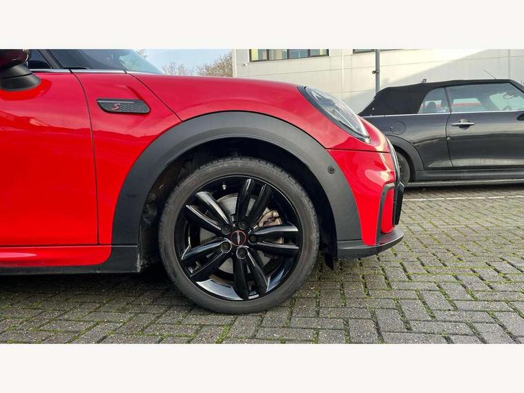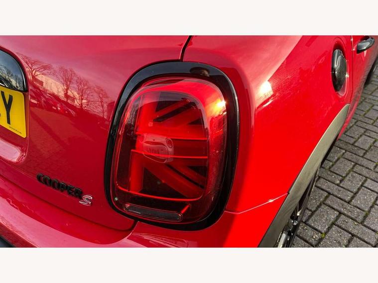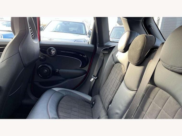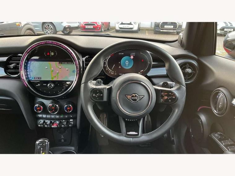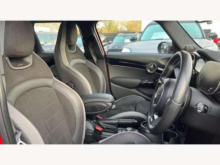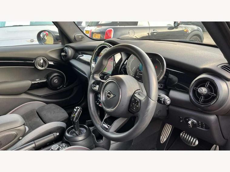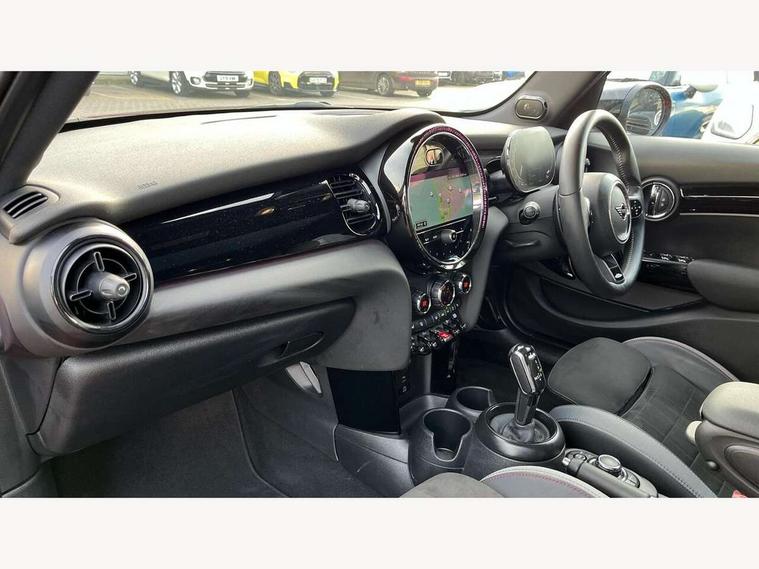 Apple CarPlay, Automatic start/stop function with brake energy recuperation, Compatible mobile phone bluetooth with audio streaming, Electro-mechanical speed dependant steering assistance, Flexible car sharing preparation, MINI Driving Modes - centre toggle switch to control driving setting (sport, mid and green), Mini E-call, MINI TeleServices, On board computer, Rear park distance control, Service interval indicator, Adaptive suspension, Double Vanos system, Fully variable valve control, Gear change indicator display, High precision injection, Performance Control, Steptronic sport transmission with double clutch and steering wheel paddles, 8.8" touchscreen with LED ring, FM tuner and DAB digital radio, 3rd brake light, Automatic headlight activation switch, Bonnet scoop, Dynamic brake lights, Electric front+rear windows, Heated rear window, Heated windscreen washer jets, JCW Aerodynamic kit - Front and rear bumpers with sporty JCW styling and part-painted side sills with MINI John Cooper Works door sill finishers, John Cooper Works rear spoiler, Metal door sill strips with Cooper S imprint, Model logo Cooper S on right of tailgate, Radiator grille chrome border with honeycomb structure including S Badge, Rain sensor window wipers, Rear fog lights, Rear LED lights with union jack design, Rear side wing doors, Rear window wiper, Side scuttle panel with integrated indicator, Sun/heat protection glass, Two central exhaust tailpipes with chrome finisher, White indicator lenses, 12V Accessory socket in centre console, 3 seat bench in 2nd row, 4 lashing eyes in luggage compartment, 60/40 split folding rear seat, Anthracite headliner including grab handles and clothes hooks, Carbon black colour line - Knee roll and door armrest, Chrome interior highlights, Cupholders, Front and rear isofix with front passenger airbag deactivation, Front and rear velour floor mats, Glove compartment, Height and length steering column adjustment, Interior lighting with 12 different colours across the dashboard, underneath door bezel with illuminated laser-engraved design on central display, JCW Sport seats with integrated headrests, adjustable thigh support and John Cooper Works logo, Leatherette gearshift lever and handbrake gaiters, LED reading lights, vanity mirror lights, front foot well light and spotlight on front seats, Mechanical seat adjustment - forward/back & backrest for front seats and driver seat height adjust, Multifunction steering wheel, Single front passenger seat, Sport leather steering wheel with speed limiter and audio/communication controls, Storage compartments in doors, Storage pocket on back of front seats, Sunvisors with vanity mirrors, Walknappa leather steering wheel with grey seam and John Cooper Works badge on Piano Black lower steering wheel spoke, Piano black exterior pack - Mini Hatchback Cooper S, 3 point seatbelts on all five seats, 6 Airbags - front, side, head and seat belt tensioners, Anti-lock braking system (ABS), Child locks on rear doors, DSC - Dynamic Stability Control, Front and rear disc brakes, Hill start assist, Two tone horn, Tyre pressure monitoring system, Alarm system with tilt sensor, monitoring doors, bonnet interior and tailgate, Electronic vehicle immobiliser, Start/stop toggle with keyless go, Piano black interior trim, Tool kit,