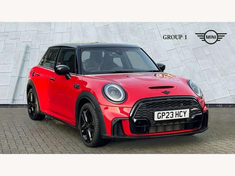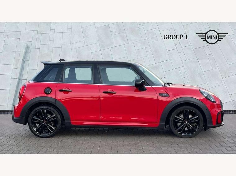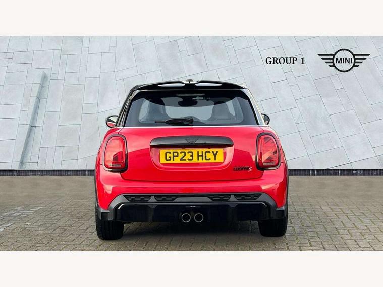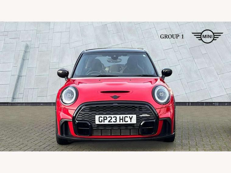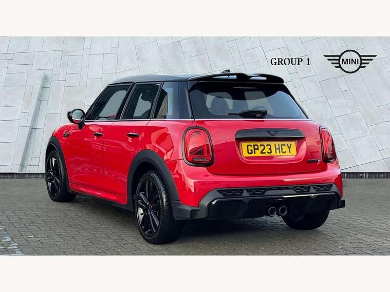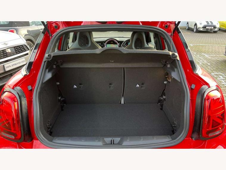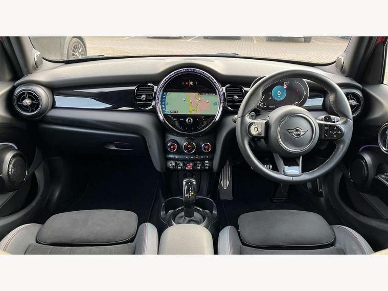 Apple CarPlay, Automatic start/stop function with brake energy recuperation, Compatible mobile phone bluetooth with audio streaming, Electro-mechanical speed dependant steering assistance, Flexible car sharing preparation, MINI Driving Modes - centre toggle switch to control driving setting (sport, mid and green), Mini E-call, MINI TeleServices, On board computer, Rear park distance control, Service interval indicator, Adaptive suspension, Double Vanos system, Fully variable valve control, Gear change indicator display, High precision injection, Performance Control, Steptronic sport transmission with double clutch and steering wheel paddles, 8.8" touchscreen with LED ring, FM tuner and DAB digital radio, 3rd brake light, Automatic headlight activation switch, Bonnet scoop, Dynamic brake lights, Electric front+rear windows, Heated rear window, Heated windscreen washer jets, JCW Aerodynamic kit - Front and rear bumpers with sporty JCW styling and part-painted side sills with MINI John Cooper Works door sill finishers, John Cooper Works rear spoiler, Metal door sill strips with Cooper S imprint, Model logo Cooper S on right of tailgate, Radiator grille chrome border with honeycomb structure including S Badge, Rain sensor window wipers, Rear fog lights, Rear LED lights with union jack design, Rear side wing doors, Rear window wiper, Side scuttle panel with integrated indicator, Sun/heat protection glass, Two central exhaust tailpipes with chrome finisher, White indicator lenses, 12V Accessory socket in centre console, 3 seat bench in 2nd row, 4 lashing eyes in luggage compartment, 60/40 split folding rear seat, Anthracite headliner including grab handles and clothes hooks, Carbon black colour line - Knee roll and door armrest, Chrome interior highlights, Cupholders, Front and rear isofix with front passenger airbag deactivation, Front and rear velour floor mats, Glove compartment, Height and length steering column adjustment, Interior lighting with 12 different colours across the dashboard, underneath door bezel with illuminated laser-engraved design on central display, JCW Sport seats with integrated headrests, adjustable thigh support and John Cooper Works logo, Leatherette gearshift lever and handbrake gaiters, LED reading lights, vanity mirror lights, front foot well light and spotlight on front seats, Mechanical seat adjustment - forward/back & backrest for front seats and driver seat height adjust, Multifunction steering wheel, Single front passenger seat, Sport leather steering wheel with speed limiter and audio/communication controls, Storage compartments in doors, Storage pocket on back of front seats, Sunvisors with vanity mirrors, Walknappa leather steering wheel with grey seam and John Cooper Works badge on Piano Black lower steering wheel spoke, Piano black exterior pack - Mini Hatchback Cooper S, 3 point seatbelts on all five seats, 6 Airbags - front, side, head and seat belt tensioners, Anti-lock braking system (ABS), Child locks on rear doors, DSC - Dynamic Stability Control, Front and rear disc brakes, Hill start assist, Two tone horn, Tyre pressure monitoring system, Alarm system with tilt sensor, monitoring doors, bonnet interior and tailgate, Electronic vehicle immobiliser, Start/stop toggle with keyless go, Piano black interior trim, Tool kit,