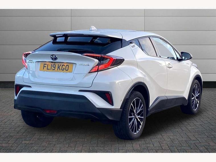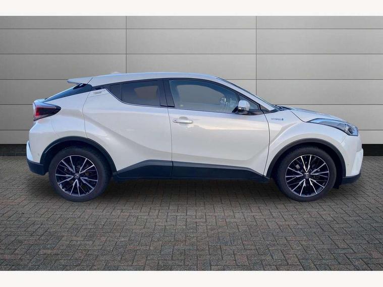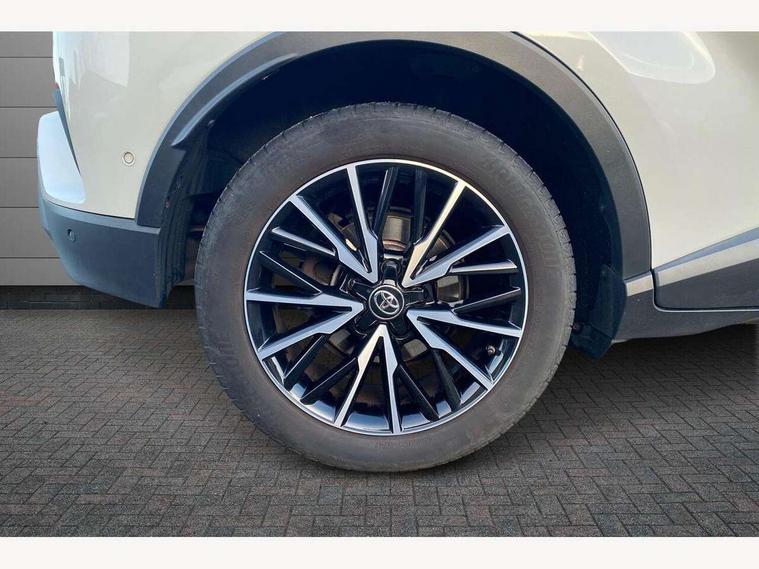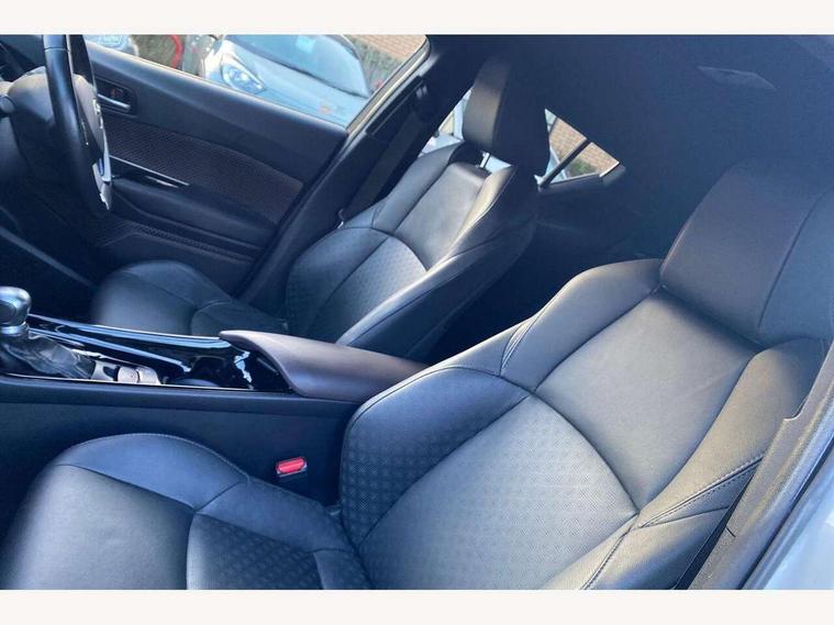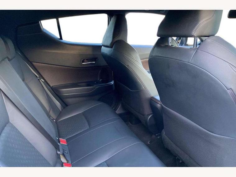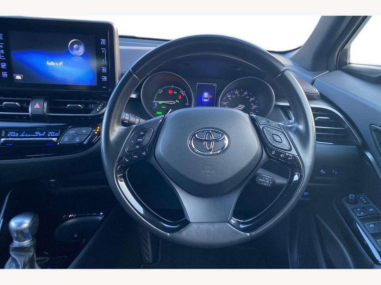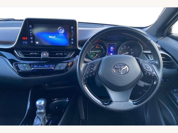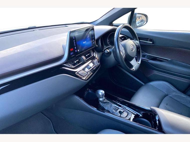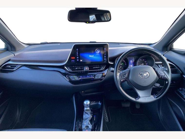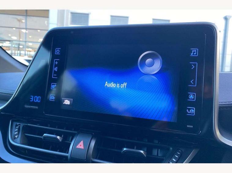 4.2" Colour TFT driver information display, 8" touch screen, Adaptive cruise control, Adjustable speed limiter, Bluetooth system, Collision prevention assist, Lane change assist and blind spot monitor, Lane departure warning system, Lights on warning, PAS, Rear cross traffic alert, Reversing camera, Touch 2 Go navigation system, Traffic sign recognition, Trip computer, Vehicle Stability Control (VSC), 6 speakers, Auxiliary input socket, DAB Digital radio, Steering wheel mounted controls, USB connection, Auto dimming rear view mirror, Auto folding mirrors, Auto high beam, Body colour door handles, Body colour heated door mirrors, Body coloured bumpers, Electric folding/heated door mirrors with integrated indicators, Follow me home headlights, Front and rear electric windows, Front fog lights, Heated rear windscreen, LED daytime running lights, LED rear lights, Privacy glass, Rain sensitive windscreen wipers, Rear spoiler, Rear wiper, Shark fin roof aerial, 12V Accessory socket, Ambient lighting, Child seat anchorage points, Chrome interior door handles, Driver/passenger sunvisors and illuminated vanity mirrors, Dual zone automatic air conditioning, Folding rear seats, Front and rear door pockets, Front centre armrest, Front cupholders x 2, Front head restraints, Glovebox illumination, Heated front seats, Height adjustable drivers seat, Illuminated door sills, Illuminated entry system, Leather gear knob, Leather upholstery, Lumbar support, Nappa leather steering wheel, Rear headrests, Tilt/telescopic steering column, Whiplash Injury Lessening (WIL) feature (active headrest) for seats, Parking pack - C-HR, 3x3 point rear seatbelts, ABS+EBD+Brake assist, Airbag deactivation switch, Driver/Front Passenger airbags, Driver/front passenger side airbags, Drivers knee airbag, ESP + traction control, Front and rear curtain airbags, Front and rear seatbelt reminder, Hill start assist control (HAC), Rear child proof door locks, Road sign information display, Toyota safety sense, Tyre pressure monitoring system, Alarm, Immobiliser, Remote central locking, Smart entry, Tyre repair kit,
