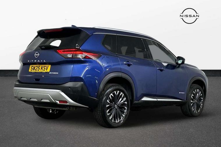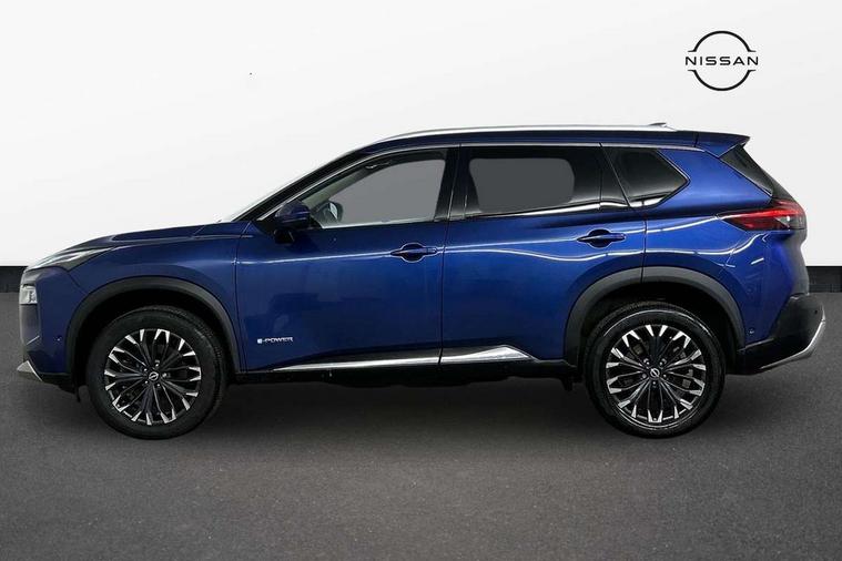 Advanced 10.8" head up display, Android auto wireless, Blind spot warning, Drive assist custom mode, Drive modes (sport, normal, eco), Driver drowsiness and attention warning, e-Pedal step, Electric speed sensitive power steering, Emergency and breakdown call, Event data recorder, Front and rear parking sensors, Full Digital 12.3" TFT Digital Combimeter, Google maps services - search, weather, 3D maps and Google street view, Hands free power tailgate, Idle stop/start system, Intelligent around view monitor, Intelligent Cruise control (ICC), Intelligent driver alert system, Intelligent forward collision warning, Intelligent lane departure warning, Intelligent lane intervention, Intelligent lane keep assist, Lane departure prevention, Maximum speed limiter, Moving object detection, Nissan connect 12.3 inch touchscreen infotainment system, Nissan connect nav with TomTom traffic, Propilot assist with Navi-Link, ProPilot park, Push button starter, Rear cross traffic alert, Rear view camera, Remote control services - door locks, lights, horn and car locator, Reversing detection, Telematics - notifications and connectivity services, Traffic jam pilot, Traffic sign recognition with legal speed adjustment, Trip computer, Virtual personal assistant and firmware over the air capability, Wireless apple carplay, Wireless charging pad, 6 speakers, AM/FM audio system with DAB, Bluetooth audio streaming, Front USB connections (Type-A and Type-C), Rear USB charging only ports 2 Type-C, Auto rear wiper when reversing, Body colour mirror caps, Body coloured door handles, Bodyside mouldings, Chrome side window finisher, e-POWER badging, Electric auto folding door mirrors, Electric sunroof/sunshade, Electrically adjustable and heated door mirrors, Follow me home headlights, High beam assist, Intelligent auto headlights, LED 3rd brake light, LED daytime running lights, LED front fog lights, LED headlights with adaptive driving beam, LED rear lights, One touch front and rear electric windows with remote opening and closing, Partially body coloured bumpers, Rain sensing wipers, Rear privacy glass, Rear reversing light (bulb lighting), Rear roof spoiler, Rear side wing doors, Rear styling plate, Roof rails, Shark fin antenna, Smart rear view mirror with auto dimming, Splash free wipers, Super UV and infrared cut glass, Thermaclear heated windscreen, Three blink turn signal, 12v power socket in dashboard and luggage, 3 bench rear seats in 2nd row, 3 rear headrests, 40/20/40 folding rear seats with recline, Butteryfly console, Chrome interior door handles, Driver and front passenger sunvisors with illuminated vanity mirrors, Driver seat back pocket, Electric adjustable 2 way lumbar support for driver, Electric adjustable 2 way lumbar support for passenger seat, Electric adjustable driver and passenger seat with memory function, Fore/Aft adjustable rear seats, Front and rear heated seats, Front centre console and armrest, Front cupholders, Front door with bottle holders, Heated steering wheel, Height adjustable driver's seat, Height adjustable front headrests, Height adjustable passenger seat, Leather shift knob, Leather steering wheel, Luggage board system, Luggage space lighting, Multifunction steering wheel, Passenger seat back pocket, Rear armrest with 2 cupholders, Rear door bottle holders, Single front passenger seat, Sliding second row seats, Steering column mounted gear shift paddles, Synthetic leather monoform upholstery, Tilt/telescopic adjustable steering wheel, Tri zone automatic climate control with pollen filter, Two rear isofix child seat anchorage points with top tether, Sky pack - X-Trail, 3x3 point rear seatbelt pretensioners + load limiters, ABS with EBD and brake assist, Active brake limited slip, Auto hold function, Child locks on rear doors, Curtain and front side, far side airbags, Driver and passenger airbags, Driver, passenger and 2nd row rear seat belt reminder, Electronic parking brake, Front seatbelt pretensioners + load limiters, Height adjustable front seatbelts, Hill start assist, Intelligent blind spot intervention, Intelligent front emergency braking with pedestrian, cyclist recognition and junction assist, Intelligent rear automatic braking, Tyre pressure monitoring system, Vehicle dynamic control, Approach unlock and walk away lock, Engine immobiliser, Intelligent Key, Remote central door locking with deadlocking, Thatcham Cat.1 alarm, 19" Diamond cut alloy wheels, Tyre puncture repair kit,