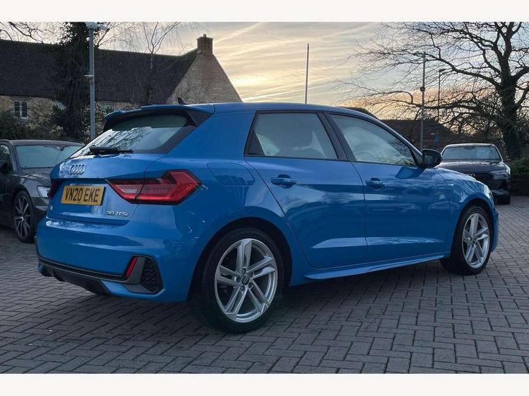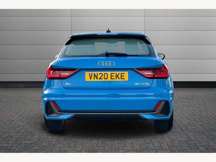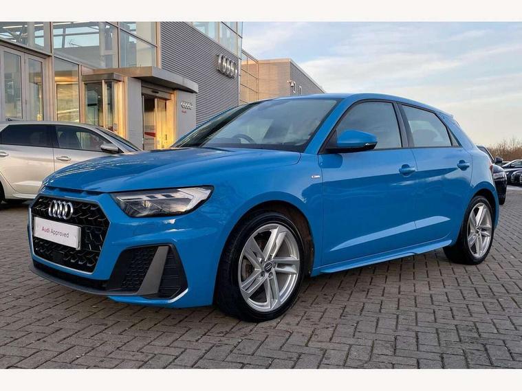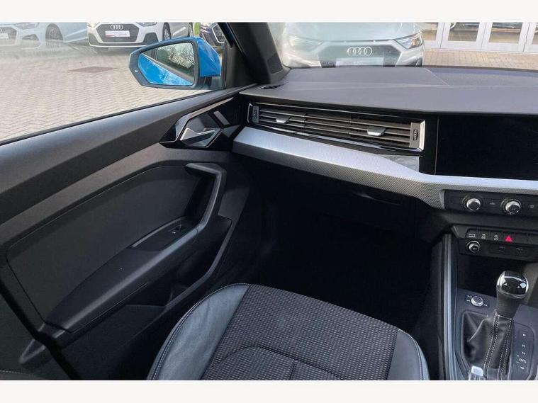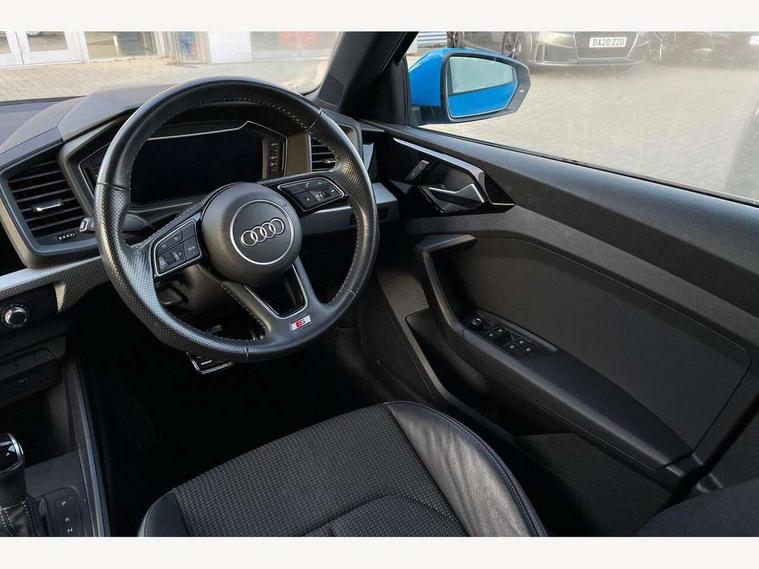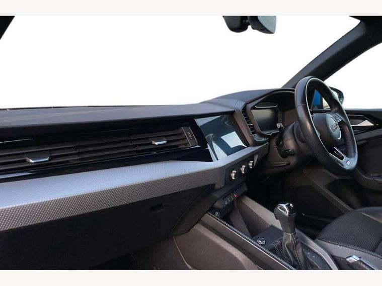 10.25" Digital instrument cluster display classis style instrument dials + speed, odometer, time, outside temperature, telephone menu + fuel level warning, Audi connect safety emergency and service including E-call, Audi drive select - power steering assistance + engine + gear shift 3 preset modes (auto, dynamic, efficiency and an Individual mode), Audi smartphone interface with connect compatible smartphone via USB directly MMI display + Nav, music, third party apps controlled via MMI controller, Automatic start/stop system, Bluetooth interface, Cruise control, Driver's information system, Electromechanical power steering, Lane departure warning system, Rear parking sensor, Service interval indicator, Speed limiter, Voice control system, Washer fluid level indicator, Sports suspension, 1 x SDXC card reader, 1 x USB type C and 1 USB type A charging points, DAB Digital radio, MMI radio plus with 8.8" colour MMI display screen and MMI touch, Auto dimming rear view mirror, Body coloured door mirrors, Door sills with aluminium inlays and S Line logo, Electric front and rear windows, Electrically adjustable, heated, folding door mirrors with integrated LED side indicator, Front side air inlets in grained matt black and C frame in titanium black, Heat insulating glass windscreen and side windows, Heated rear windscreen, LED headlights with LED rear lights + dynamic rear indicators + headlight adjustment and high beam, turning light + LED daytime running lights, Radiator grille and rear diffuser in matt titanium black, Radiator protective grille frame in matt aluminium silver, Rain and light sensors, Rear fog lights, Rear wiper, S line badges on front wings, Side front spoiler lips in grained matt black, 12V socket in centre console with two cup holders, 3 rear seats with headrests, 40:60 Split folding rear seat or folded fully, Black cloth headlining, Driver and passenger seat with manual height adjust with forward and backwards adjustment, Front and rear black floor mats with contrast stitching in fine silver, Front head restraints, Height and reach adjustable steering wheel, ISOFIX child seat mounting for front passenger and outer rear seats including top tether attachment point of outer rear seats, Leather gear knob with aluminium trim, Luggage compartment light with front and rear reading lights, Manually adjustable lumbar support in front seats, Stainless steel pedals, LED interior lighting pack - A1, Luggage compartment pack - A1, S line exterior styling pack - A1 Sportback, 3x3 point rear seatbelts, Audi pre-sense front with pedestrain and cyclist recognition, Brake assist function, Driver and front passenger airbag with front side and head airbags, Electronic Stability Control including ABS, EBD, ASR and EDL, Front and rear seatbelt reminder, Front passenger airbag deactivation switch, Hill hold assist, Seatbelt height adjustment for front seats, Seatbelt monitoring, Tyre pressure warning light, Warning triangle and first aid kit, Anti theft alarm, Anti theft wheel bolts and loose wheel warning, Immobiliser, Remote central locking with 2 foldaway keys, Aluminium trim for control switches, air vents and digital instrument cluster, Silver grey inlays polygon structure in diamond paint finish, Structured grey accent areas including air vents, door handle recesses and centre console in quartz paint finish,