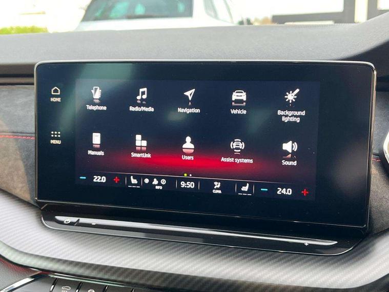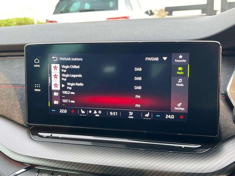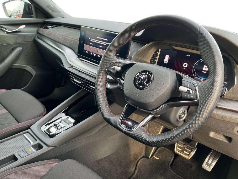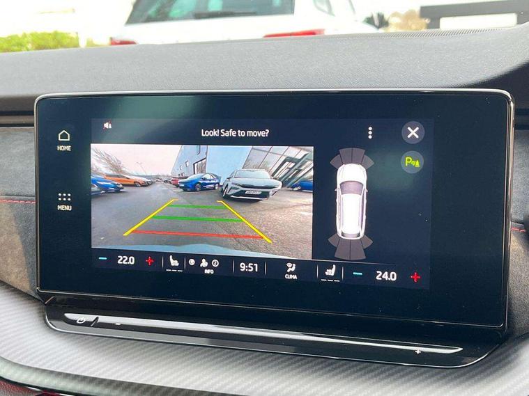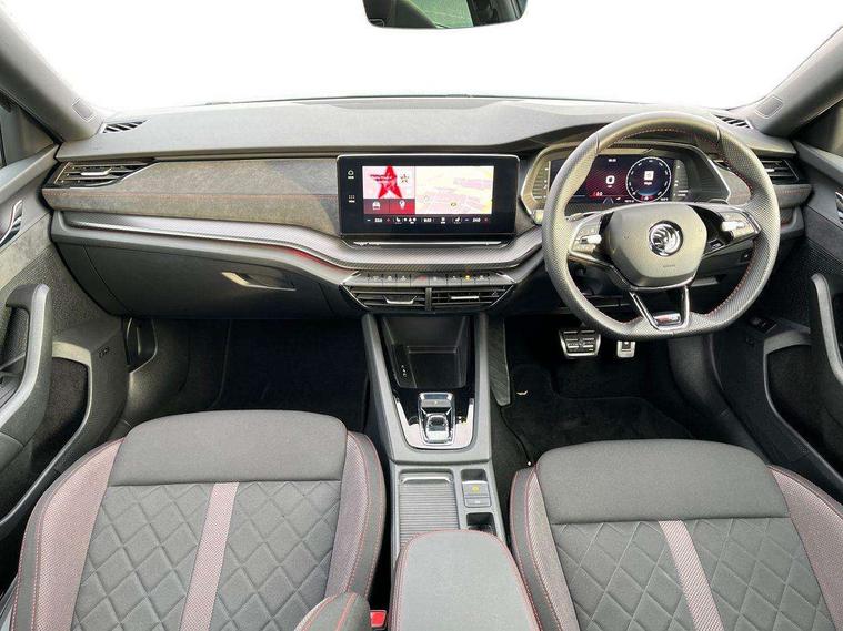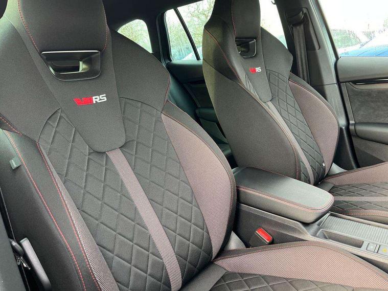 1x USB Type C port in rear view mirror (charging only), 2x USB Type C ports in rear of front centre armrest (charging only), Blind spot detection+electrically adjust, heated, folding, driver side auto-dimming+passenger tilt by reversing door mirrors with memory+boarding spots, Bluetooth system, Colour multifunction trip computer, Columbus satellite navigation with 10" touchscreen display, Drive mode selector, Front assist system, Progressive dynamic steering, Smartlink (includes android auto and mirrorlink), Speed limiter, Turn Assist, Virtual Cockpit - 10.25" digital display, Voice control system, Wireless SmartLink for Apple Car Play, Electronically controlled limited slip differential, Front and rear stabilizers, Sports suspension with 15mm lower, 2x USB Type C ports (for charging and data transfer), DAB Digital radio, Swing radio with 8.25" touchscreen, Aero front windscreen wipers with intermittent function, Auto dimming rear view mirror, Black roof rails, Body colour door handles, Chrome exhaust tailpipes, Door sills with vRS logo, Electric front and rear windows, Exterior gloss black sports styling including front grille, side strip, window surrounds, door mirror and badging, Full LED Matrix headlights with AFS, rear LED lights and dynamic indicators and cornering front fog lights, Heated rear windscreen, High level third brake light, Ice scraper in fuel cap, Rain and light sensors, Rear fog light on one side, Rear privacy glass, Rear spoiler, Rear window wiper, 3 rear headrests, 4 foldable roof handles, Alcantara padded dash panel with contrast stitching, Aluminium pedals, Black headlining, Chrome inner door handles, Cloth upholstery, Front centre armrest, Front head restraints, Heated front seats, Height adjustable driver and passenger seat with lumbar support, Illuminated air conditioned glovebox, Leather trimmed gearshift lever, Luggage compartment lighting with two side lamps, Mechanical rear seat release, Parcel shelf - rolling, Satin black textured with artificial stiching in dash board pads, Sun visors with mirrors, Sunglasses storage, Textile floor mat set, Three spoke leather sports multifunction steering wheel with paddles, Ticket holder, Umbrella in door panel, Unsplit rear bench seat and split folding backrest, LED interior light pack - Octavia, 3 point front/outer rear seatbelts+pre-tensioners, Alarm with interior monitoring, tilt sensor and back up horn, Automatic door unlocking in case of crash, Automatic fuel cut off in case of crash, Automatic warning lights in case of emergency braking, Drivers knee airbag, Electronic parking brake, Emergency call and proactive services, ESC including ABS, EBV, MSR, ASR, EDS, HBA, DSR, Front and rear disc brakes, Head and curtain airbags, Hill hold control, Hill start assist, ISOFIX on front passenger seat and outer rear seats, Passenger airbag deactivate switch, Red brake calipers, Two tone horn, Tyre pressure monitor, Visual and acoustic seat belt reminder, Warning reflectors in front door, Door locks with immobiliser, Keyless entry and start/stop including rear doors, Remote central locking, Carbon optic decorative inserts, Gloss black air vent surrounds, 19" Altair anthracite alloy wheels,
