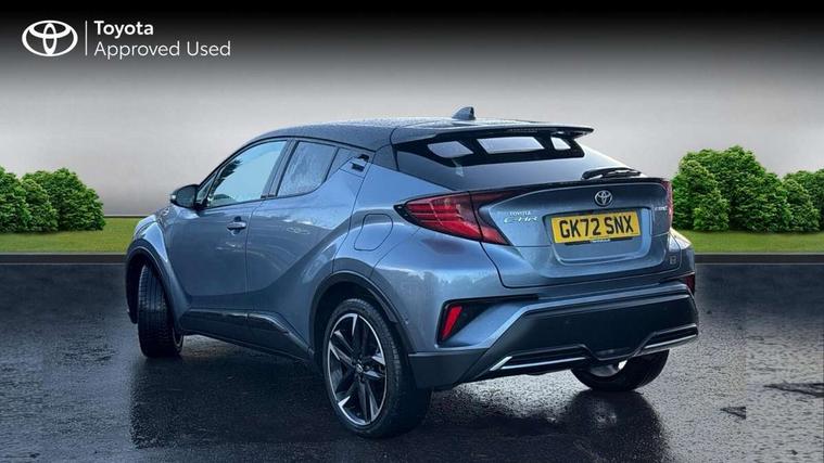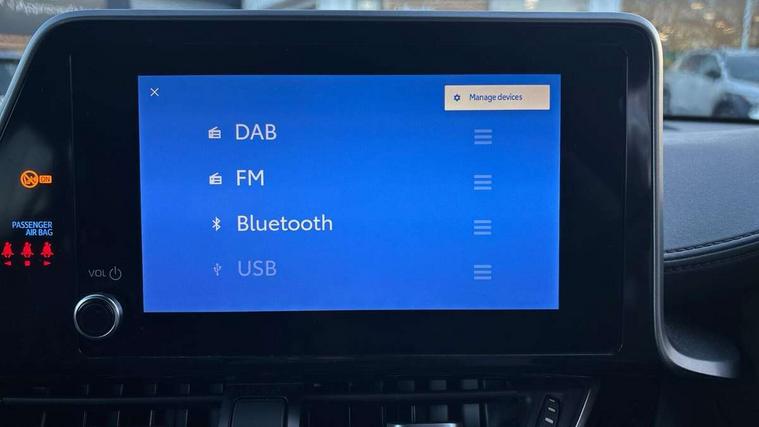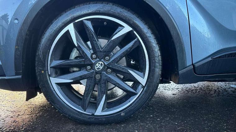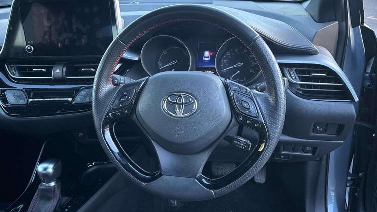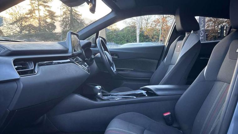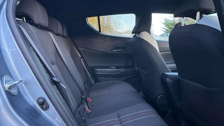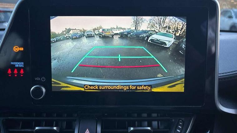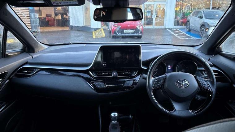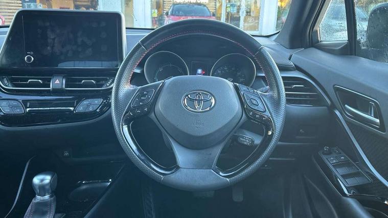4.2" coloured TFT screen for multi-information display, Adaptive cruise control, Bluetooth connectivity, E-call, Electric power steering, Hybrid system indicator, Lane departure alert with steering control, Lane trace assist, Push button tailgate release, Remote boot door release in cabin, Remote boot door release in key, Reversing camera, Road sign assist - RSA, Simple Intelligent parking assist, Smart voice assist, Touch 2 Go navigation system, Trip computer, Voice recognition, Wireless smartphone integration, Vehicle Stability Control (VSC), 6 speakers, AM/FM radio, DAB Radio (Digital Audio Broadcasting), Toyota touch 2 multimedia system with 8" display, USB connector, Wi-fi connectivity, Adaptive front light system, Adaptive LED Headlights, Anti-jam protection on power windows, Auto high beam, Auto up and down function on all power windows, Automatic headlight levelling, Automatic headlights, Automatic headlights cut-off, Black and body coloured rear bumper, Black upper front grille, Body colour door handles, Body colour door mirrors, Body coloured front bumper, Boot door release with push button, Chrome front lower bumper, Electric heated door mirrors, Follow me home headlights, Front and rear power windows, Front spoiler lip in black, Headlight cut off reminder, Honeycomb lower front grille, LED daytime running lights, LED fog lights, LED front light guide, LED High mounted stop light, LED rear brake lights, LED rear combination lights, Noise reduction layer on front windows and windscreen, Power adjustable door mirrors, Privacy glass, Rain sensor, Rear sequential indicators, Rear side wing doors, Rear spoiler, Rear tailgate, Rear window defogger, Rear window wiper, Shark fin antenna, UV-filter on driver and passenger windows, UV-filter on rear windows, 12v power outlet - front, 3 rear headrests, 3 seat bench in 2nd row, 3 spoke perforated leather steering wheel, 60/40 split folding rear seat, Adjustable rear headrests, Adjustable speed limiter switch on steering wheel, Assist grips front and centre pillar, Audio and telephone switches on steering wheel, Black front door assist grips, Blue ambient lighting on front cup holders, Blue ambient lighting on front doors, Boot light, Chrome interior door handles, Cloth upholstery, Driver and front passenger personal light, Driver and front passenger Whiplash Injury Lessening seats, Driver and passenger seatback pockets, Dual zone automatic air conditioning, Floor mats, Front cupholders, Front head restraints, Front sports seats, Glovebox with internal light, Hard tonneau cover, Heated driver and front passenger seats, Hooks for luggage holding net, Humidifying Nanoe air purifier, Illuminated entry system, Isofix attachments on outer rear seats, Leather gearshift, Light on driver sun visor, Light on passenger sun visor, Manual telescopic steering wheel, Manual tilt steering wheel, Manually height adjustable driver seat, Manually height adjustable front passenger seat, Manually reclining driver seat, Manually reclining front passenger seat, Manually sliding driver seat, Manually sliding front passenger seat, Microphone on front personal light, Mirror on driver sun visor, Mirror on passenger sun visor, Multimedia switches on steering wheel, Pollen filter, Power adjustable lumbar support on driver seat, Shopping bag hooks, Single front passenger seat, Slow opening on lower glovebox, Voice recognition switch on steering wheel, Tech with parking sensor pack - C-HR, 16 Disk front wheel brake, 3x3 point rear seatbelts, ABS+EBD+Brake assist, Electronic parking brake, Front and rear seatbelt reminder, Front passenger airbag on/off switch, Hill start assist control (HAC), Pre collision system with pedestrian detection, Pre-tensioners and force limiters, Rear door child safety locks, SRS Airbags - Driver + Front passenger, front side, front and rear curtain and driver's knee airbags, Toyota safety sense, Tyre pressure monitoring system, Tyre pressure warning system, Acoustic vehicle alert system (AVAS), Glass-breaking alarm sensors, Immobiliser, Intrusion alarm, Intrusion sensor, Motion sensor alarm, Power door locks, Power passenger window lock, Remote central locking, Black lower dashboard, Black upper dashboard, Piano black console, Silver deco line on upper dashboard, 19" Black machined alloy wheels, Tyre repair kit,