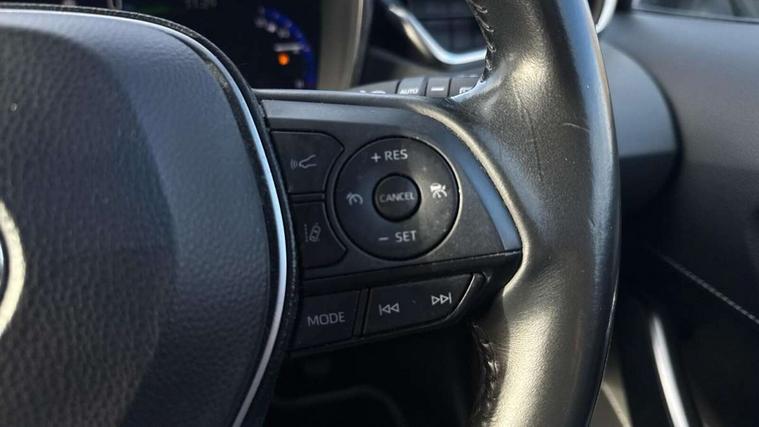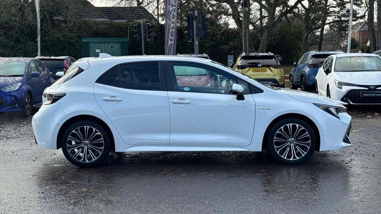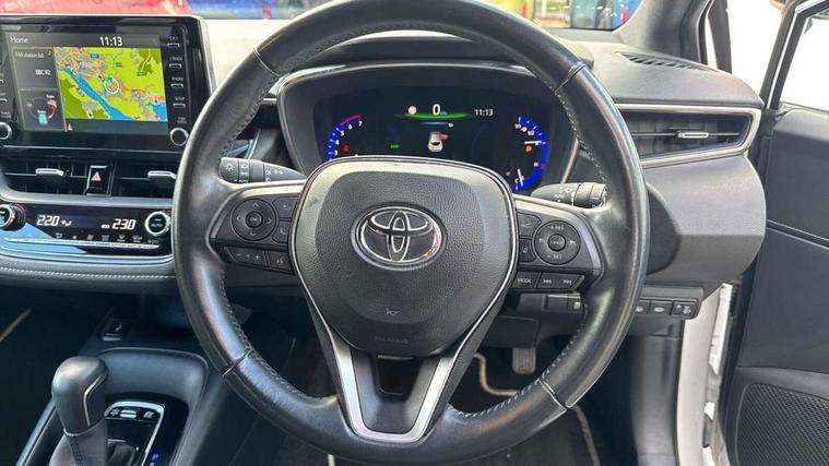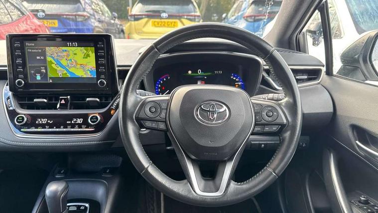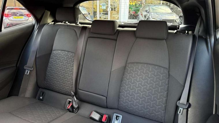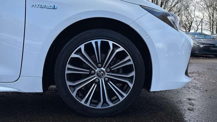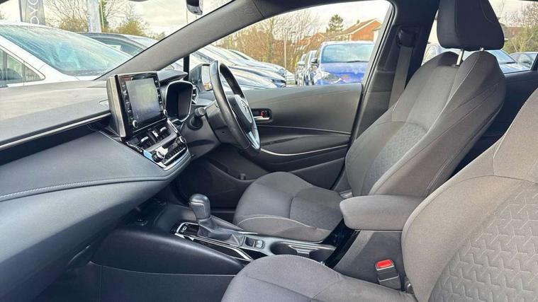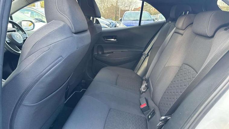 Adaptive cruise control, Bluetooth telephone connectivity, E-call, Electrically assisted power steering, Front parking sensor, Intelligent park assist, Push button start, Rear parking sensor, Reversing camera, Voice activation, Vehicle Stability Control (VSC), 2 ring combimeters with 7" colour TFT screen, 6 speakers, 8" multimedia and back monitor, AM/FM radio, DAB Digital radio, Toyota touch 2 with go navigation system, USB/AUX connectivity, Anti-jam protection on power windows, Auto dimming inside rear view mirror, Auto high beam, Auto up and down function on all power windows, Automatic folding mirrors, Automatic headlights, Automatic rear view mirror, Automatic wipers, Body coloured bumpers, LED daytime running lights, LED fog lights, LED Headlights, LED rear combi lights with LED lightguide, Power front windows, Power rear windows, Privacy glass, Rain sensor, Rear window wiper, Shark fin antenna, 3 rear headrests, Clean air filter, Dual zone automatic air conditioning, Fabric upholstery, Front head restraints, Heated seats, ISOFIX seat fixing (2 fixings on rear outer seats), Leather steering wheel and gear knob, Pollen filter, Power lumbar support, Tilt/telescopic steering column, Whiplash Injury Lessening (WIL) feature (active headrest) for seats, Parking pack - Corolla, Toyota safety sense 2 - Corolla, 3x3 point rear seatbelts, Anti lock braking system + Electronic brake force distribution, Brake assist function, Electronic parking brake, Front passenger airbag on/off switch, Front seatbelt reminder, HAC - Hill start assist control, Rear seat belt reminder, Seatbelt pretensioners and force limiters, Supplemental restraint system (SRS) airbags - 7 airbags including driver, front passenger, curtain, side and knee airbags, Traction control, Tyre pressure warning system, Alarm/immobiliser, Space saver spare wheel,