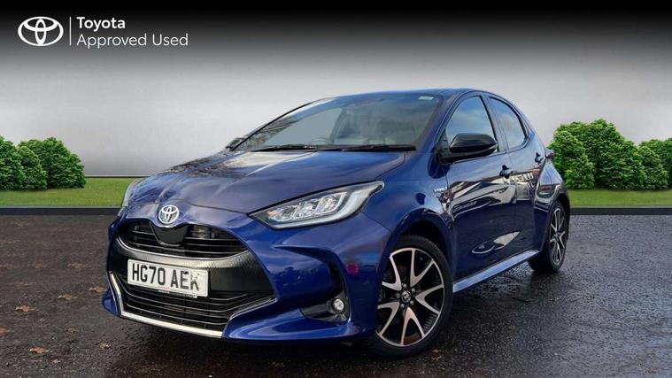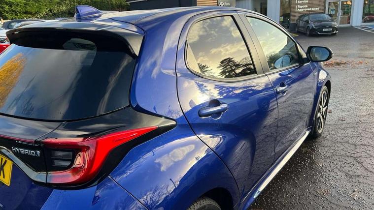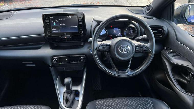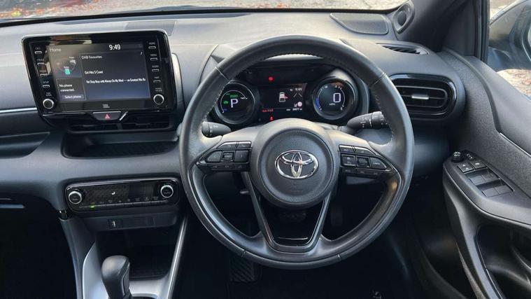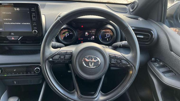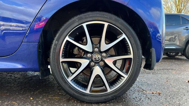 Adaptive cruise control, Adjustable speed limit with speed warning, Bluetooth connectivity, Colour binocular inspired displays with digital speedometer, E-call, Electric power steering, Hybrid energy display, Multi information display switches on steering wheel, Reversing camera, Smartphone integration with Apple CarPlay and Android auto, Vehicle Stability Control (VSC), 8" Multimedia display touch screen, JBL Premium sound system with 8 speakers, Toyota Touch 2 with DAB, USB connection, Acoustic windscreen glass, Auto windscreen wipers, Automatic headlights, Body coloured door mirrors, Electric adjustable heated door mirrors, Follow me home headlights, Front auto power windows with anti jam protection, Full LED rear lights, LED daytime running lights, LED front fog lights, LED Headlights, LED High mounted stop lamp, Painted front grille, Rear auto power windows with anti jam protection, Rear privacy glass, Rear spoiler, Shark fin antenna, Turning signal integrated indicators in door mirrors, 3 adjustable rear headrests, 3 spoke leather steering wheel, 60/40 split folding rear seat, Active headrests, Adjustable boot height, Coat hooks in rear grab handles, Cup holders (2 front & door), Data Communication Module (DCM) connected services, Dual zone automatic air conditioning, Fabric seat with partial synthetic leather upholstery, Front armrest, Front sport seats, Glovebox, Height adjustable driver's seat, Height adjustable passenger seat, Isofix seat fixing, Leather gearshift, Map pockets on the backs of the front seats, Pollen filter, Shopping bag hooks, Tilt/telescopic steering column, 3 point seatbelts on all rear seats, ABS+EBD+Brake assist, Electronic parking brake, Emergency brake light system (EBS), Front passenger airbag on/off switch, Front seatbelt reminder, Hill start assist control (HAC), Rear child proof door locks, Rear seat belt reminder, Supplemental Restraint System (SRS) 8 airbags: Driver & passenger's airbags, dual side curtain airbags, side impact airbags, front centre airbag, Toyota Safety Sense 2, Precollison + Night time Pedestrian & Cyclist Detection, Lane Trace Assist, Auto High Beam, Intelligent ACC & Road Sign Assist, Tyre pressure warning system, Alarm/immobiliser, Keyless smart entry with push button start, Remote powered central double locking doors, Piano black interior trim, Soft touch instrument panel, Space saver spare wheel,