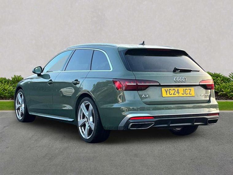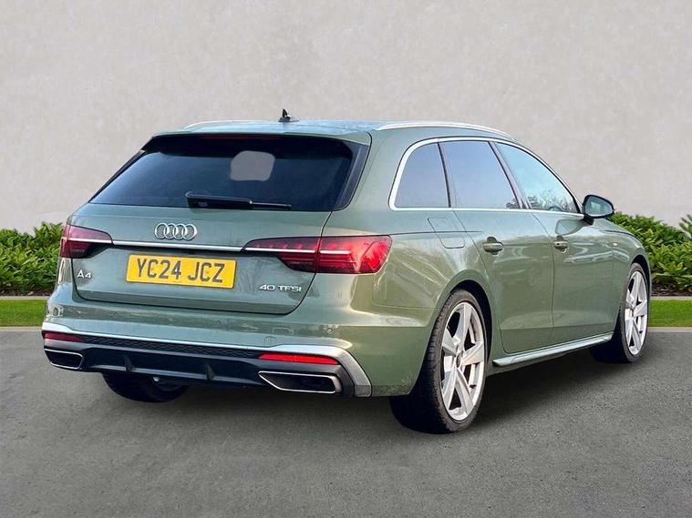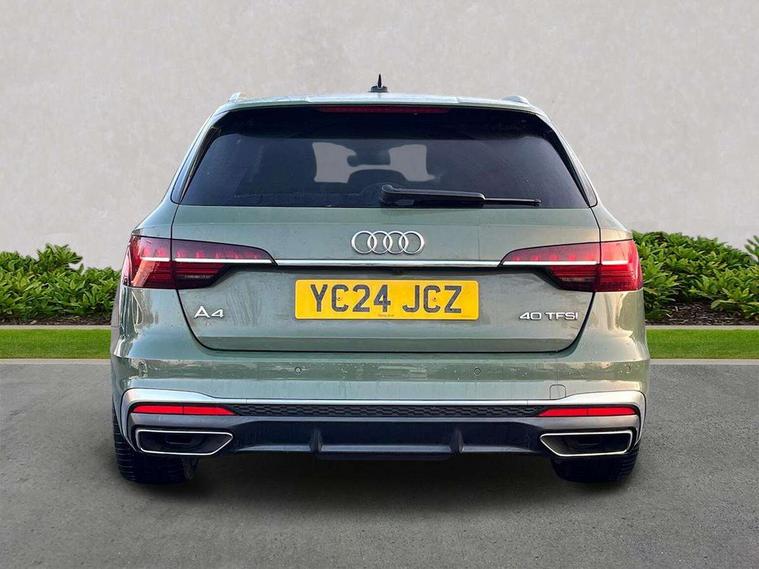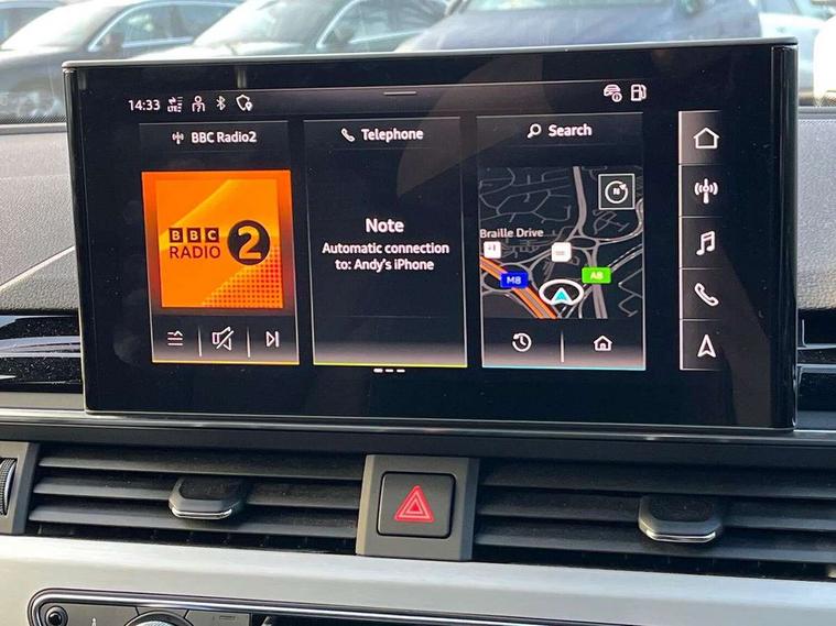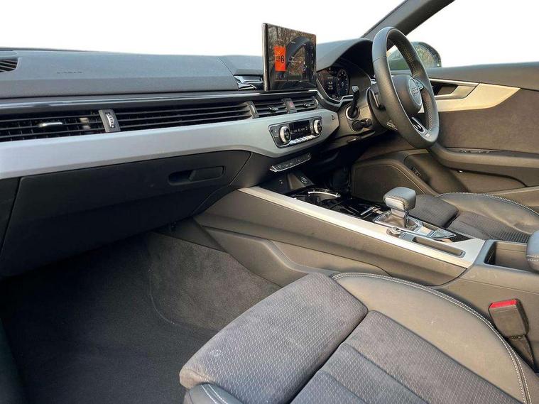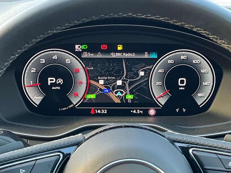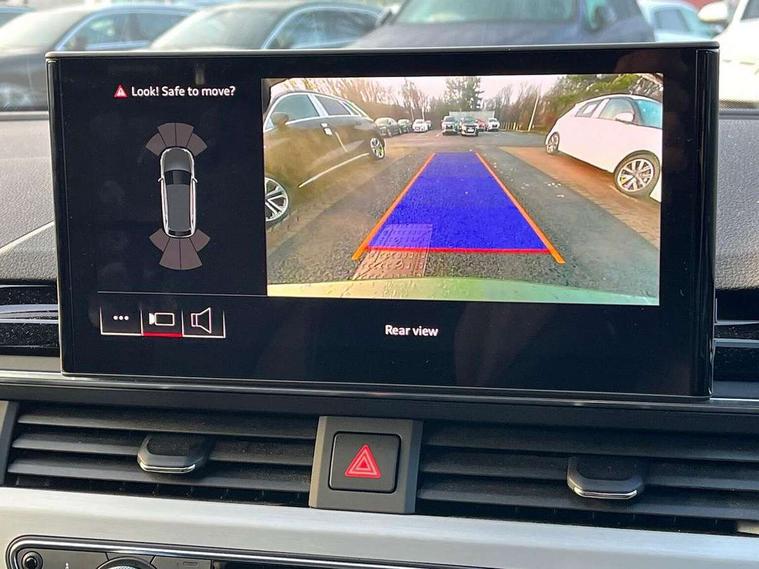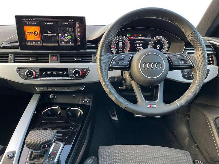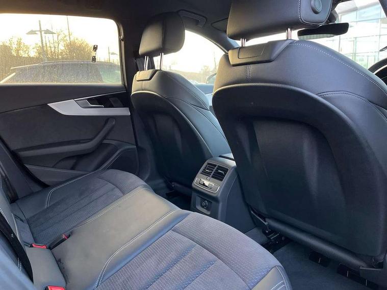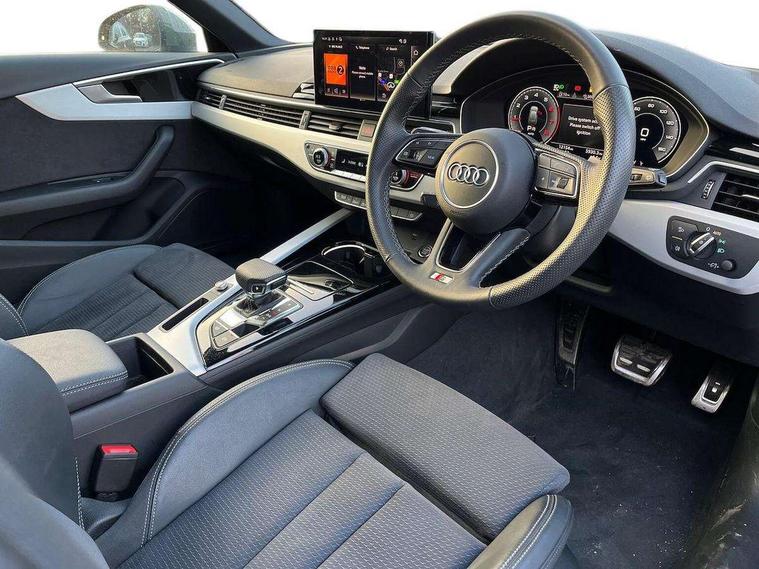 Audi connect safety and service (e-call), Audi drive select, Audi smartphone interface, Audi virtual cockpit, Automatic start-stop system with coasting functionality and efficiency programme, Bluetooth interface, Camera based traffic sign recognition, Electromechanical power steering, Email, calendar and text messages displayed via MMI, Front and rear parking sensors, Lane departure warning, MMI Navigation plus with MMI touch includes 10.1" high resolution colour MMI display, 3D map, Power operated tailgate, Rear view camera, Voice control system, 54 litre fuel tank, Sports suspension lowered by 23mm, 2 USB charging ports, 8 passive loudspeakers, DAB digital radio reception, Aluminium roof rails, Auto dimming rear view mirror, Body colour door handles, Body colour front spoiler lip, Body colour side sill trim, Body coloured door mirrors, Electric adjustable/heated/folding door mirrors with auto dimming, Grained matt black side air inlets with matt aluminium silver inlay, High beam assistant, Honeycomb structure radiator grille in grained matt black, LED headlights with LED rear lights + dynamic rear indicators + headlight adjustment and high beam, turning light + LED daytime running lights, LED third brake light, Matt aluminium silver tailpipe trim, Privacy glass, Rain and light sensors, Rear side wing doors, Rear wiper, S Line badges on the front wings, S line front and rear bumpers with side skirts, S Line rear diffuser in matt anthracite black with trim strip in matt aluminium silver, S Line roof edge spoiler, Variable intermittent front wash/wipe, Windscreen with acoustic glazing, 3 spoke high multi-function sports leather steering wheel grips in perforated leather with S badging including paddle shift, 4 way electric lumbar support for driver and front passenger, 40/20/40 split folding 3 rear seat bench in 3 parts with rear centre armrest, Black carpets, Black cloth headlining, Black perforated leather gearknob, Contrast stitching on seats, steering wheel and gear lever gaiter, Deluxe 3 zone electronic climate control, Electric load area cover, Front and rear head restraints, Front centre armrest, Heated front seats, Illuminated door sill trims with S logo, ISOFIX child seat mounting and top tether, Manual seat adjustment, Single front passenger seat, Stainless steel pedals and foot rest, High gloss package - A4, LED Interior light pack - A4/S4, 3 rear seatbelts, 6 airbags - Driver, front passenger, curtain and side windows, Attention and drowsiness assist, Electronic Stabilisation Control (ESC) including ABS, ASR and EDL, Hill hold assist, Multi collision brake assist, Pop-up bonnet for pedestrian protection, Pre sense city, Rear door child safety locks, Seatbelt monitoring, Warning triangle and first aid kit, Anti theft alarm, Anti theft wheel bolts, Central locking, Keyless Go, Matt brushed aluminium inlays, Tool kit, Tyre repair kit,