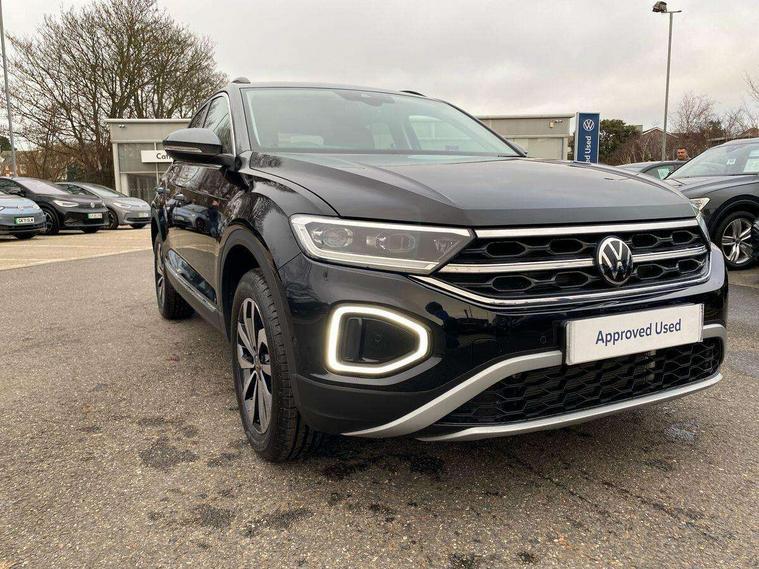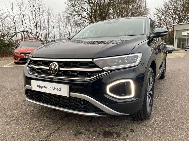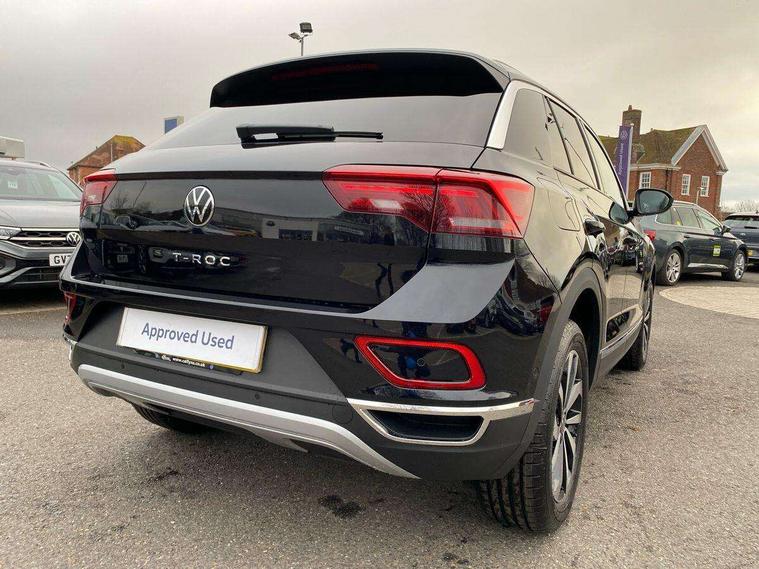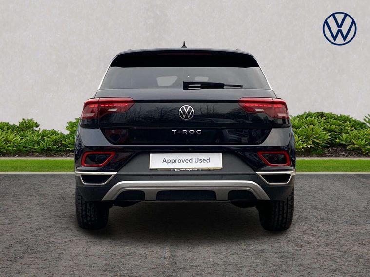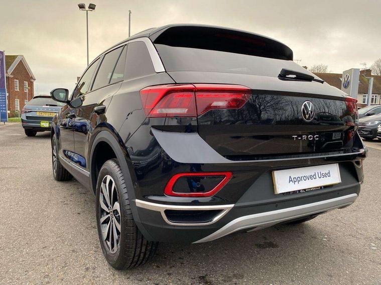 10.25" Digital cockpit pro, Advanced driver attention and drowsiness monitor, Emergency call service, Lane keeping system Lane Assist, Mobile phone interface, Modified key software - reduce switch off time for key status change to Long no motion, Online services, Park assist including front and rear parking sensors, Power assisted speed sensitive steering, Service interval indicator, Tailgate/trunk lid release from outside, Think blue trainer driver tips and journey analysis, Warning sound and light for front seatbelts unfastened, Wireless app connect, Battery regeneration during braking, Start/stop function with battery regeneration, DAB Digital radio, Diversity antenna for FM reception, Front and rear 6 speakers, Music playback - MP3, WMA and AAC files, Premium USB cable in choice of either Apple or Android smartphone compatibility, SD card slot, Simultaneous pairing of 2 compatible mobile devices, Title and cover art display, We Connect and We Connect Plus functionality, Auto dimming interior rear view mirror, Automatic hazard lights activation under emergency braking, Automatic headlight control with LED separate daytime running lights with coming/leaving home function, Body colour sports bumpers with silver metallic underbody fascia, Body coloured exterior mirror housings and door handles, Dynamic headlight range control with self adjusting whilst driving, Electrically adjustable and heated door mirrors, Extended roof spoiler, Exterior mirrors aspherical on driver side, convex on front passenger side, External USB type C socket and charging sockets, Front windscreen wiper with intermittent wipe and 4 position delay, Heated rear window, LED 3rd brake light, LED rear combination lamps, LED rear number plate lights, Light mode for poor weather, rain, fog or snow, Power windows with comfort operation and circuit breaker, Privacy glass for rear side windows and rear window, Rain sensor, Rear exhaust tailpipe, Rear fog light on one side and reversing lights on both sides, Rear side wing doors, Rear wash/wipe with intermittent wipe setting, Remote electrically foldable door mirrors, puddle lights and reverse activated passenger's door mirror, 12V power socket in centre console, 3 rear head restraints, 3 seat bench in 2nd row, 4 load lashing points in luggage compartment, Air care climatronic air conditoning system with active combination filter and 2-zone temperature control, Chrome plated radiator grille inserts, air vent surrounds and light switch surrounds, Door and side trim panel with leatherette insert, Drawer under drivers seat, Front + rear carpet mats, Front centre armrest, Front comfort sports seats, Front cupholders x 2, Front footwell illumination, Front seat back storage pockets, Glove compartment door with light, Instrument lighting, white adjustable panel illumination, Interior ambient lighting and surround lighting, Interior light delay, Isofix child seat preparation, Leather gearshift handle, LED interior light with switch off delay/dimmer and 2 front/rear LED reading lights, Load-through provision with cup holder when folded down ('Unsplit rear seat bench, split folding backrest, with centre armrest), Luggage compartment lighting, Non-folding front passenger seat backrest, Single front passenger seat, Storage compartment in left and right luggage area, Storage compartment in rear doors, Storage compartments in driver and front passenger doors, Sunvisors with illuminated vanity mirrors, Variable boot floor, height adjustable and removable, Driver assistance pack without proactive passenger protection - T-Roc, 3 point height adj front seatbelts + pretensioners, 3 point seatbelts in outer rear with ECE label, ABS, Child locks on rear doors, City emergency braking and pedestrian monitoring, Driver and front passenger airbag with front passenger airbag deactivation, Driver and front passenger safety-optimised head restraints, Drivers seatbelt reminder, Electronic parking brake, Electronic Stability Control (ESC) inc EDL (Electronic Differential Lock) and ASR (Traction Control), Front and rear passengers curtain airbag system including front side airbags, Predictive pedestrian protection, Rear disc brakes, Two tone horn, Tyre pressure loss indicator, Volkswagen roadside assistance, Deep iron grey decorative inserts in dashboard, centre console and front door trim panels, Trims for alloy wheels,