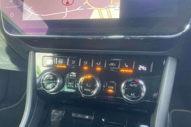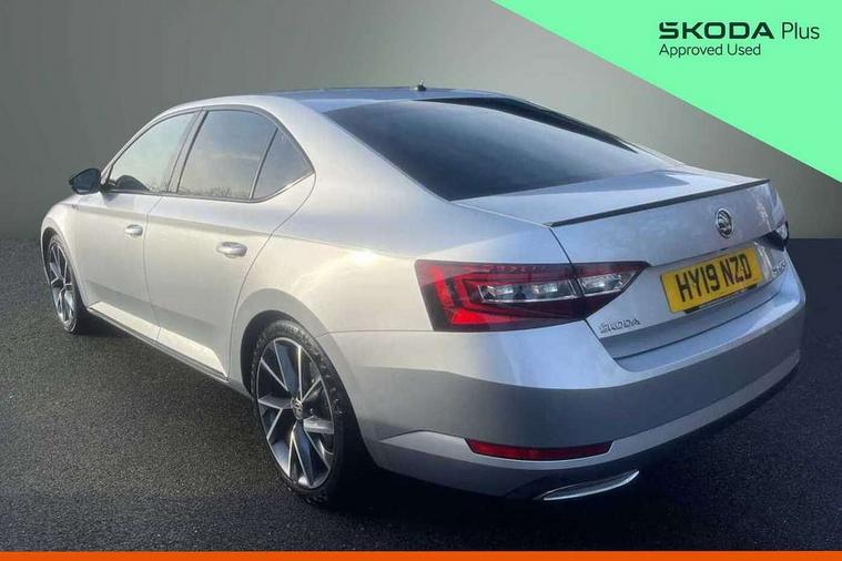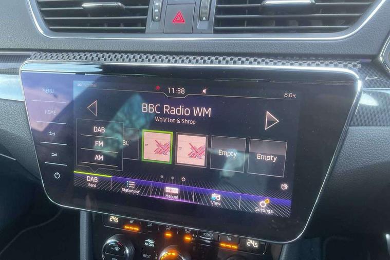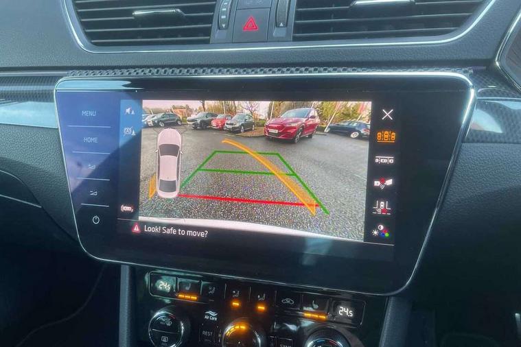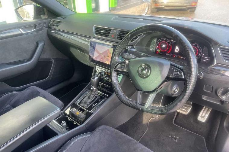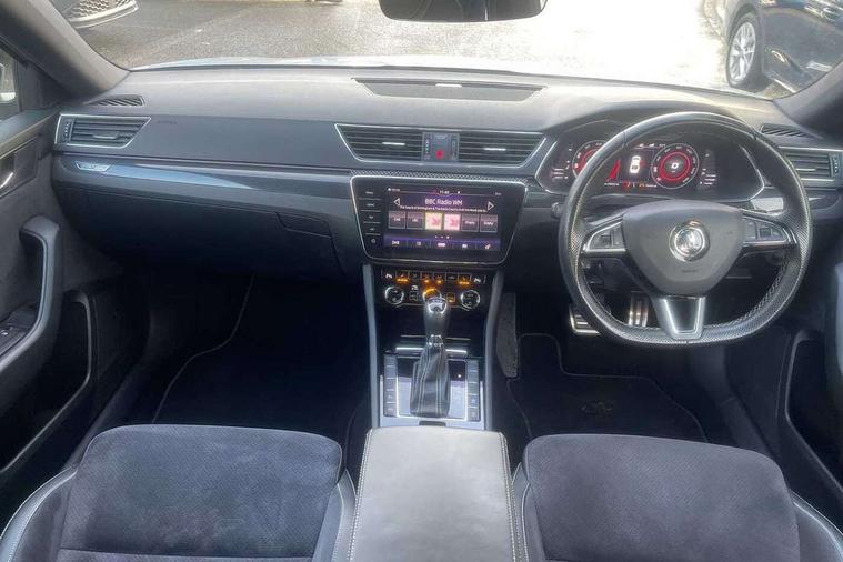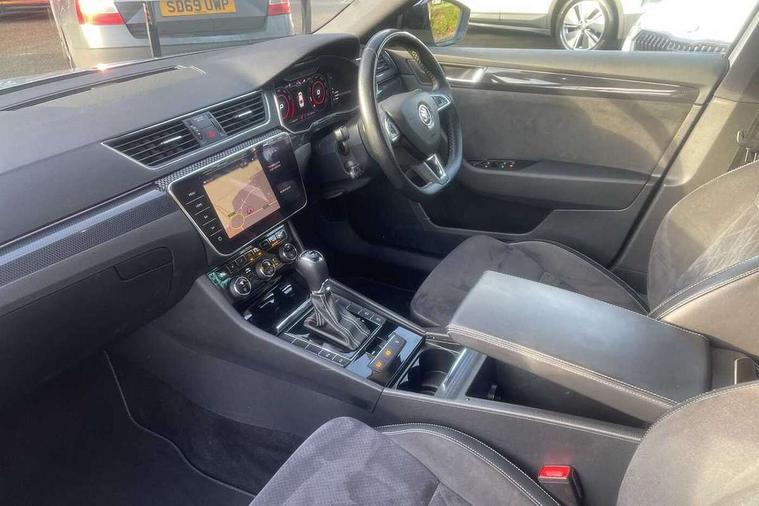 Adaptive cruise control, Bluetooth system, CareConnect and Emergency Call, Columbus colour 9.2" touch screen satellite 3D Map navi system with DAB, SmartLink+, CarPlay, Android Auto, USB, Aux in, SD Card, DVD drive and Wi-Fi, Drive mode selection including HMI sport, Driver fatigue sensor, Electrically operated boot door, Electromechanical power steering, External temperature gauge, Front assist including automatic braking function, Multifunction colour trip computer, Progressive dynamic steering, Remote fuel cap release, Service interval indicator, Speed warning indicator, Stop/start engine system and energy recovery, Voice control system, Wi-Fi with LTE internet, XDS+, In-car voice enhancement, Aero wiper + intermittent function, Auto dimming rear view mirror, Bi-Xenon headlights with AFS + integrated headlight washers + LED daytime running lights, Black gloss door mirror housings, Body colour bumpers, Body colour door handles, Cornering front fog lights, Electrically adjustable/heated/folding door mirrors with puddle lights/Integrated indicators and memory function, Front and rear electric windows, Fuel filler cap, Gloss black exterior door mirrors with sports styling including front grill, side strip and window surrounds, Gloss black spoiler, LED brake lights, Privacy glass, Rain sensor, Rear exhaust diffuser styling elements, Sport Line badging, 12v power point in centre console, 12V power point in luggage area, 3 rear height adjustable headrests, Alcantara/leather upholstery sports seats, Auxiliary heater, Black door trim, Black roof headlining, Electrically adjustable driver's seat with memory and lumbar support, Front armrest with storage box, Front passenger seat electric height adjust, Height adjustable front and rear head restraints, Height/reach adjust steering wheel, Illuminated air conditioned glovebox, Illuminated luggage compartment, Interior lights with control switches, Isofix child seat fittings on outer rear seats, Leather gearknob and handbrake lever, Overhead glasses storage compartment, Rear centre armrest with cupholders, Removable LED light in boot, Removable rear parcel shelf, Split folding rear seats, Textile floor mat set, Ticket holder, Umbrella compartments in front doors with umbrellas, LED interior light pack - Superb, LED package plus - Superb, LED rear pack - superb, 3 point height adj front seatbelts + pretensioners, 3 rear 3 point seatbelts + pretensioners, 7 airbags - Front, front side, curtain, driver's knee airbag with front passenger deactivation switch, Door open warning, Driver and passenger seatbelts with warning light, Electronic parking brake, ESC including ABS, EBV, MSR, ASR, EDS, HBA, DSR, RBS, CBC, multi-collision brake (MKB) and Auto hold, Hill start assist, Rear door child safety locks, Tyre pressure monitor, Alarm with interior monitoring tilt sensor and back up horn, Electronic engine immobiliser, Keyless entry and start/stop, Remote central locking with SAFE system, Carbon interior trim,