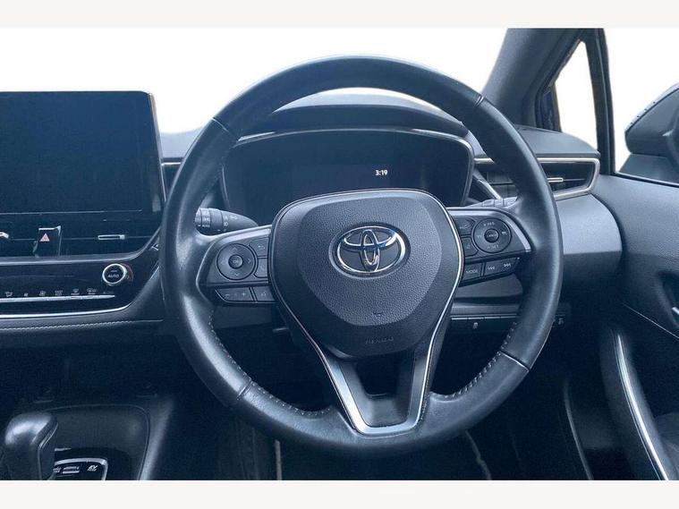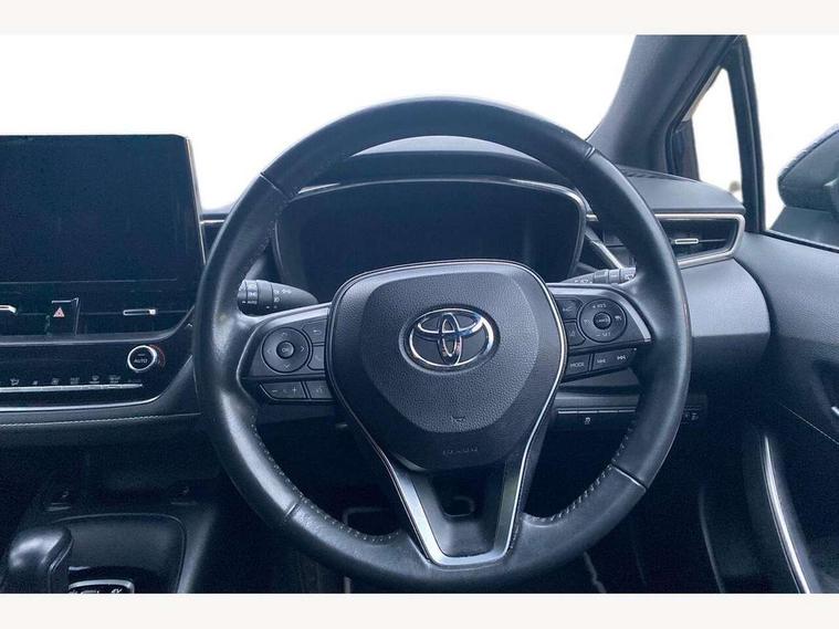 7" Multi information display screen, Bluetooth telephone connectivity, Connected car functionality upgrade, tracker, remote status and e-care, Dynamic radar cruise control (with RSA) including switch on steering wheel, E-call, Electrically assisted power steering, EV drive indicator, Intelligent park assist, Lane Departure Alert (LDA) switch on steering wheel, Memory on adjustable speed limiter, Push button start, Reversing camera, Smartphone integration with Apple CarPlay and Android auto, Gasoline particulate filter, Vehicle Stability Control (VSC), 6 speakers, 8" Touchscreen with MM19 Multimedia system and voice recognition, AM/FM radio, DAB Digital radio, Toyota touch 2 with go navigation system, USB and Aux in connectors + 12V front outlet, USB charging port in centre storage box, Aluminium roof rails, Anti-jam protection on power windows, Auto up and down function on all power windows, Automatic headlights with high beam assist, Black metallic surround on lower front grille, Black toyota logo in front, Body colour rear spoiler, Body coloured bumpers, Body coloured door mirrors, Body coloured outside door handles, Follow me home headlights, LED daytime running lights, LED front fog lights, LED Headlights, LED High mounted stop light, Manual day/night rear view mirror, Noise reduction layer on front windows, Power adjustable heated door mirrors, Power front windows, Power rear windows, Rain sensor, Rear side wing doors, Rear window defogger, Rear window wiper, Shark fin antenna, Time adjustment on intermittent wiper, Turning signal integrated indicators in door mirrors, Unique lower skirt, Unique side rocker with black insert, UV-filter on driver and passenger windows, 12v power outlet - luggage side, 3 rear headrests, 3 seat bench in 2nd row, 3 spoke leather steering wheel + gear knob, 60/40 split folding rear seat, Adjustable speed limiter switch on steering wheel, Audio, multimedia and telephone switches on steering wheel, Boot light, Boot underfloor storage, Clean air filter, Driver and front passenger personal light, Driver and passenger assist grip, Driver and passenger sun visor with mirror and light, Dual sided deck board in boot, Dual zone automatic air conditioning with ECO mode switch, Fabric armrests, Front and rear cup and bottle holders, Front and rear door pockets, Front head restraints, Front passenger seat, Heated driver and front passenger seats, Illuminated entry system in room lamp, ISOFIX seat fixing (2 fixings on rear outer seats), Leather gear shift with satin chrome on gear shift console, Manual height adjustable for driver and front passenger seat, Passenger seat back pocket, Pollen filter, Power adjustable lumbar support on driver seat, Power window switches with satin chrome inserts, Quilted fabric upholstery with grey stitches seats, Rear armrest with 2 cupholders, Rear passenger air vents, Rear passenger coat hooks (2), Rear passenger personal lights, Retractable tonneau cover with luggage partition net, Satin chrome inside door handles, Shopping bag hooks in luggage compartment, Side storage in boot, Sliding armrest on centre console box, Slow opening glovebox with lights, Tilt/telescopic steering column, Tonneau cover with under floor storage, Voice recognition switch on steering wheel, Whiplash Injury Lessening (WIL) feature (active headrest) for seats, Parking pack - Corolla, Toyota safety sense 2 pack - Corolla, 3x3 point rear seatbelts, Adjustable driver and front passenger seat belt extender to top anchor point, Anti lock braking system + Electronic brake force distribution, Brake assist function, Child locks on rear doors, Downhill Assist Control (DAC), Electronic parking brake, Emergency brake light signal (EBS), Front passenger airbag on/off switch, Front seatbelt reminder, HAC - Hill start assist control, Rear seat belt reminder, Seatbelt pretensioners and force limiters, Supplemental restraint system (SRS) 7 airbags - dual driver, dual side curtain, side impact and driver knee airbags, Traction control, Tyre pressure warning system, Acoustic vehicle alert system (AVAS), Alarm with motion sensor and immobilizer, Remote central locking + deadlocks, Smart entry, Satin chrome dash trim, Soft touch texture on upper dashboard, Stitching on lower dashboard, Space saver spare wheel, Unique wheel finish with red wheel cap,
