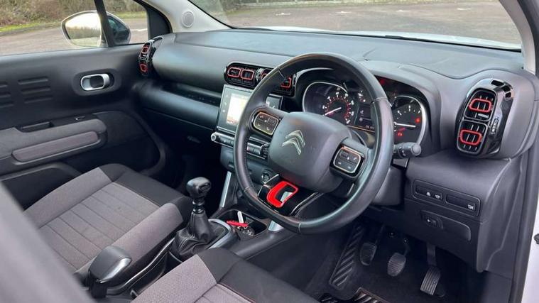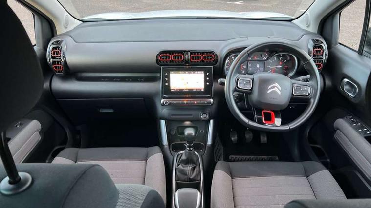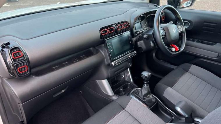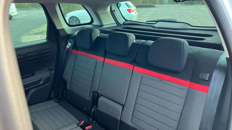 7" colour touch screen, Citroen connected nav with connect box and emergency assist system, Coffee Break Alert, Cruise control + speed limiter, Lane departure warning system, Mirror screen compatible with Apple Carplay and Andriod auto, Multi function on board trip computer, Rear parking sensors, Rev counter, Speed limit recognition and recommendation, Variable PAS, Bluetooth hands free and media streaming with USB socket and jack, Citroen connected DAB radio with 6 speakers, Steering wheel mounted controls for stereo and telephone, Auto dimming electrochrome rear view mirror, Automatic lights, Automatic windscreen wipers, Body colour bumpers, Body colour painted door handles, Dark tinted rear windows, Electric front windows + one touch + anti-pinch, Electric rear windows + anti-pinch, Electrically adjustable, heated and folding door mirrors, Front and rear aluminium effect bumper protectors, Front fog lights with cornering function, Halogen headlights with LED daytime running lights, Rear wiper, 0.5L Large bottle rear door storage, 1.5L Large bottle front door storage, 12 volt front socket, 12 volt rear socket, 60/40 split folding rear seat, Automatic air conditioning, Boot light, Driver and passenger sunvisor with courtesy mirror, Flex load/Pull out boot floor, Front courtesy reading lights, Height adjustable driver's seat, Height adjustable front headrests, Height and reach adjustable steering wheel, ISOFIX outer rear seats mounting points including top tether, Lashing eyelets in boot, Leather gear knob, Leather steering wheel with satin chrome inserts and radio controls, Rear centre armrest/ski flap, Sliding rear bench, Soft touch dashboard facia, Three height adjustable rear head restraints, Tilt adjustable rear seats (Two positions), ABS with Electronic brakeforce distribution and Emergency braking assistance, Active safety brake, Airbags - Driver/front passenger, front lateral and curtain, Drivers/passengers and rear seats unfastened seat belt warning, Electronic stability control, Five 3 point inertia reel seat belts, Forward collision alert, Front seatbelt pretensioners, Hill start assist function, Manual rear child locks, Tyre pressure monitor, Alarm, Automatic boot locking, Automatic door locking, Immobiliser, Keyless entry and start, Locking wheel nuts, Remote central locking + deadlocks, Satin chrome air vent decors, 17" Diamond cut 4 ever alloy wheels, Space saver spare wheel,