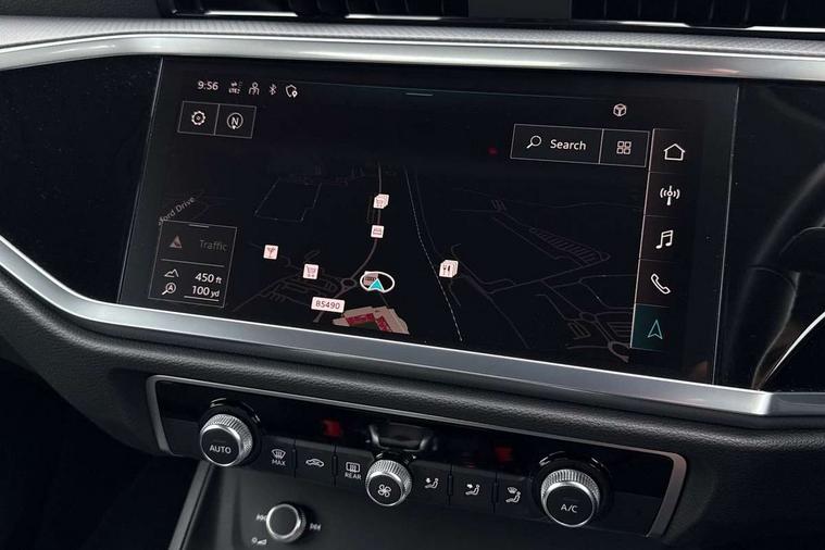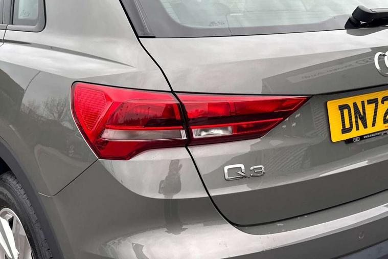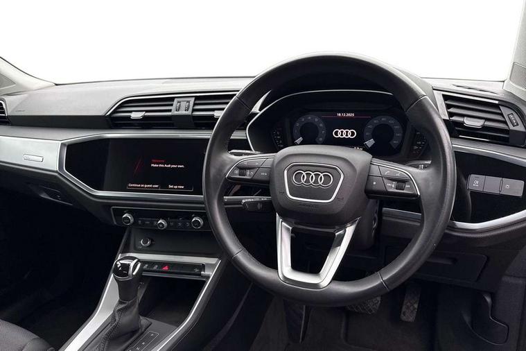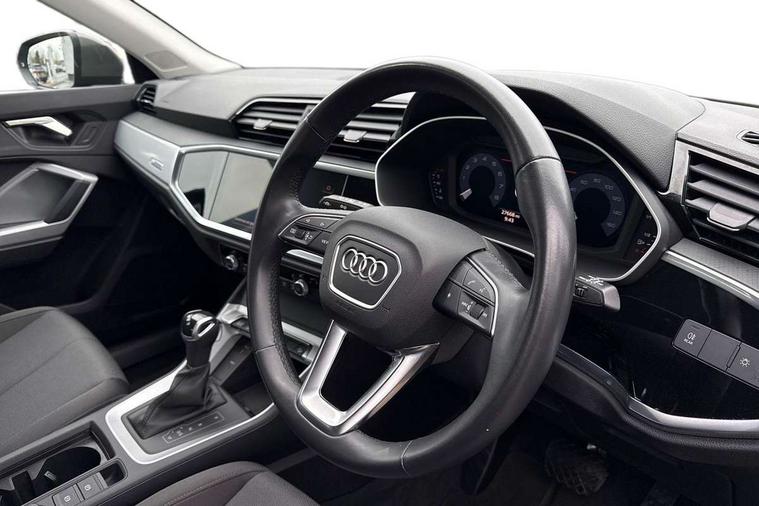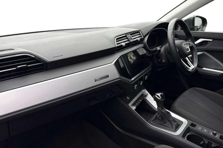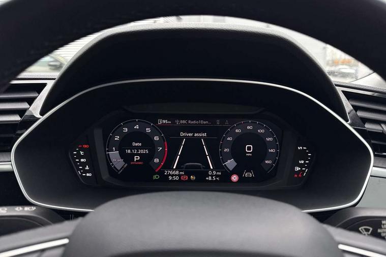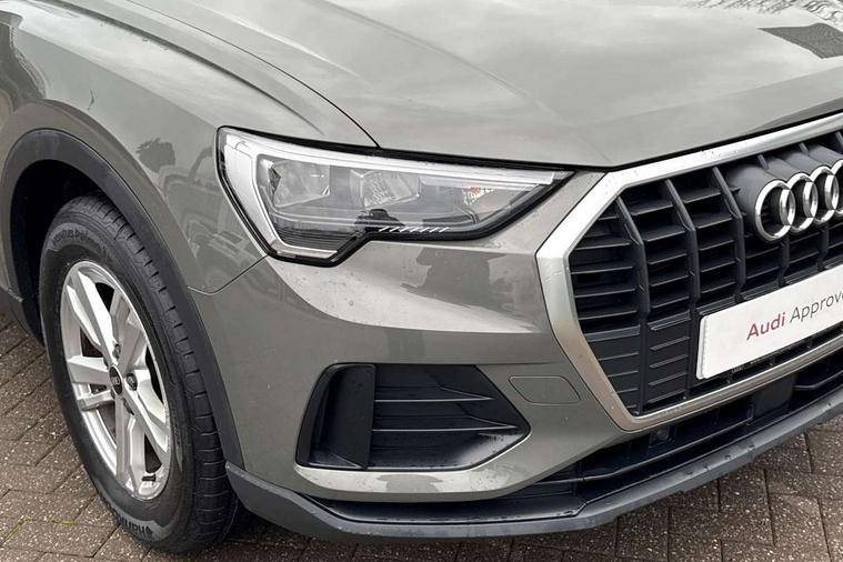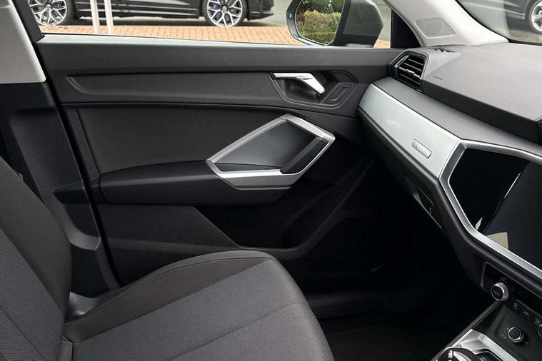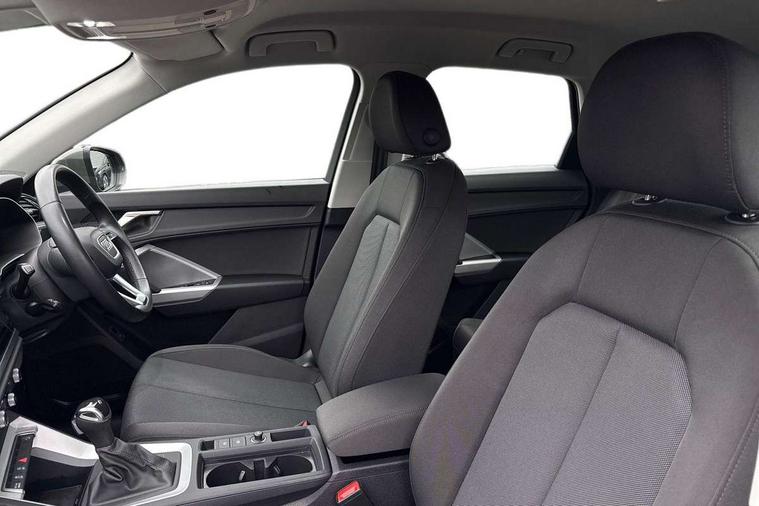 Amazon alexa Integration, Audi drive select, Audi lane departure warning, Audi Virtual Cockpit - 10.25" display, Bluetooth interface, Camera based traffic sign recognition, Legal emergency call, MMI Navigation Plus with high resolution 10.1 inch touchscreen colour display, Power operated tailgate, Progressive steering, Service interval indicator, Smartphone interface includes wireless Apple carplay/Android Auto, Start stop system with recuperation, Voice control system with natural language interaction, Standard suspension, 2 USB-C ports with charge and data functions, 6 passive loudspeakers, DAB digital radio module, Acoustic windscreen, Auto dimming frameless rear view mirror, Black roof rails, Body colour door mirrors, Diffuser in grained anthracite, Electrically folding, adjustable and heated door mirrors with integrated LED side indicators and kerb view function for passenger side, Exterior bumper with wheel arch trims and side sill trims in grained black matt, Front and rear electric windows, Grained radiator protective grille, Halogen rear lights, LED headlights with LED daytime running lights, Rain and light sensors, Rear side wing doors, Rear wiper, Third brake light, Variable front intermittent wipers, 12V socket in rear centre console, 3 seat bench in 2nd row, 3 spoke multi-function leather steering wheel, 40:20:40 folding with manual adjustment for 60:40 forwards/backwards position and backrest angle, Dual zone electronic climate control, Front and rear floor mats, Front and rear headrests, Front and rear roof module including reading lights, Front centre armrest, Glove compartment lighting, Height and reach adjustable steering wheel, ISOFIX child seat mounting for front passenger with airbag deactivation and outer rear seat including top tether attachment point for outer rear seats, Luggage compartment light, Lunar silver cloth headlining, Manual front seats with height adjustment, Single front passenger seat, Stainless steel luggage compartment sill finisher, Non smoking pack - Q3, 3x3 point rear seatbelts, 6 airbags - Driver, front passenger, curtain and side windows, Audi pre-sense front with pedestrain and cyclist recognition, Electrically operated child locks on rear doors, Electromechanical parking brake, Electronic stabilisation control including ABS, ASR and EDL, Front seatbelt reminder, Hill descent control, Hill hold assist, Pre sense basic, Seatbelt monitoring, Tyre pressure warning, Warning triangle and first aid kit, Anti theft alarm, Anti theft wheel bolts, Immobiliser, Remote central locking, Detail dashboard around MMI touch colour display in glass look, black with surround in aluminium look, Micrometallic silver inlay, 17" 5 twin spoke design alloy wheels,