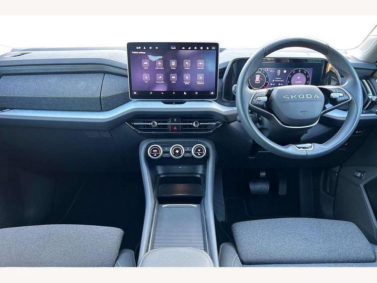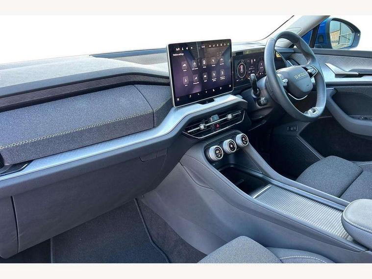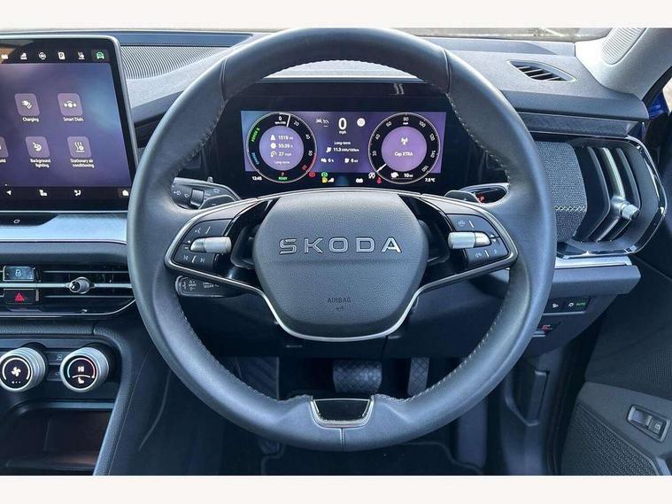 13" satellite navigation touchscreen display, Blind spot detection with door exit warning, Bluetooth system, ChatGPT functionality, Driver alert - Fatigue and drowsiness monitor, Dry display cleaner, Emergency call, Front and rear parking sensors, Front cross traffic assist, Lane assist, PAS, Rear traffic assist, Rear view camera, Tailgate unlocking from outside, Traffic sign recognition, USB C Port x 2 in front centre console, Virtual Cockpit - 10.25" digital display, Voice control system, Wireless charging for two smartphones (15W) with cooling function, Wireless SmartLink for Apple CarPlay and Android Auto, 32A charging cable, Stop/start function, 2x USB-C in the rear, 8 Speakers, DAB Digital radio, Aero front windscreen wipers with intermittent function, All weather light, Auto dimming rear view mirror, Black wheel arch surrounds, Body colour bumpers, Body colour door mirrors and handles, Cornering light and poor weather light, Electric folding /adjustable/separted heated/folding door mirrors, auto dimming with boarding sports and memory function, Electric front and rear windows, Exterior black decorative trims, Heat insulating glass in windshield, Heated rear window, Ice scraper in fuel tank cap, Invisible tailpipe, LED daytime running lights, LED front fog lamps, LED Headlights, LED rear fog light, LED rear lights, LED third brake light in rear spoiler, Light assistant with automatic headlight control and coming home feature, Logo projection in door mirrors, Rear roof spoiler, Rear side wing doors, Rear window wiper, Safety reflectors on front and rear doors, Unique dark chrome design logo on alloy wheels, Window control switches with black trim, Windscreen wipers with rain sensor, Without engine designation, 1.5l bottle holder points in all door, 1x centre rear reading light, 3 configurable smart dials with 32mm coloured display, 3 seat bench in 2nd row, 4 foldable roof handles with rear coat hooks, Ambient interior lighting - Dashboard, front-door stowage compartments, front and rear door panels and footwell lighting, Automatic gear selector on steering column, Chrome interior door handles, Driver/front passenger reading lights, Fabric headlining, Fixed bench 40:60:40 split folding backrests, Front and rear floor mats, Front centre armrest with jumbo box storage compartment, cup holder and 12V socket, Height adjustable front headrests, Isofix child seat fittings in outer rear seats and front passenger with top tether, iV badging on boot, Manual height adjustment for front passenger seats and thigh support extender, Manual lumbar support for front passenger seat, Manually adjustable steering column, Pollen filter, Rear centre armrest with cupholders, Rear seat boot backrest release, Single front passenger seat, Skoda lettering on steering wheel, Storage pocket including mobile phone pockets on the backs of the front seats, Sunvisors with illuminated vanity mirrors, Three rear height adjustable headrests, Ticket holder on A Pillar, Tri zone climate control, Umbrella in door panel x1 made from sustainable materials, Upper and lower glovebox with card holder and coin compartment, USB C port by rear view mirror for charging only (15W), Auto door release and activation of warning lights in the event of an accident, Driver and front passenger airbag with knee airbag and front passenger airbag deactivation, Electric child locks, Electronic parking brake, ESC (incl. ABS+EMD+MSR+ASR+EDL+HBA+DSR+RBS+ESBS+MCB+TSA+XDS), Front assist with braking reaction to vehicles, pedestrians and cyclists, Front disc brakes, Fuel cut off safety device, Height adjustable front 3 point seatbelts + pretensioners, Hill hold assist, Junction assist with automatic emergency braking, Rear disc brakes, Safety vest holder in door, Seat belt reminder for all seats, Three point rear seat belts, Two tone horn, Tyre pressure monitor, Alarm with interior monitoring and tilt sensor with safe function, Anti-theft wheel bolts, Immobiliser, Remote central locking with 2 keys, Breakdown kit, Tool kit,
