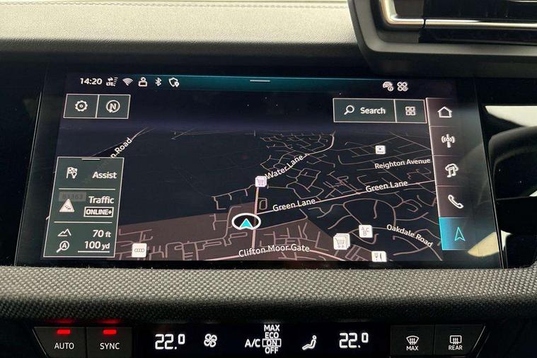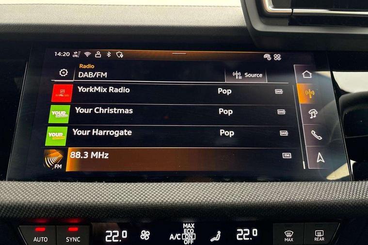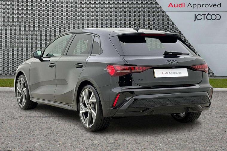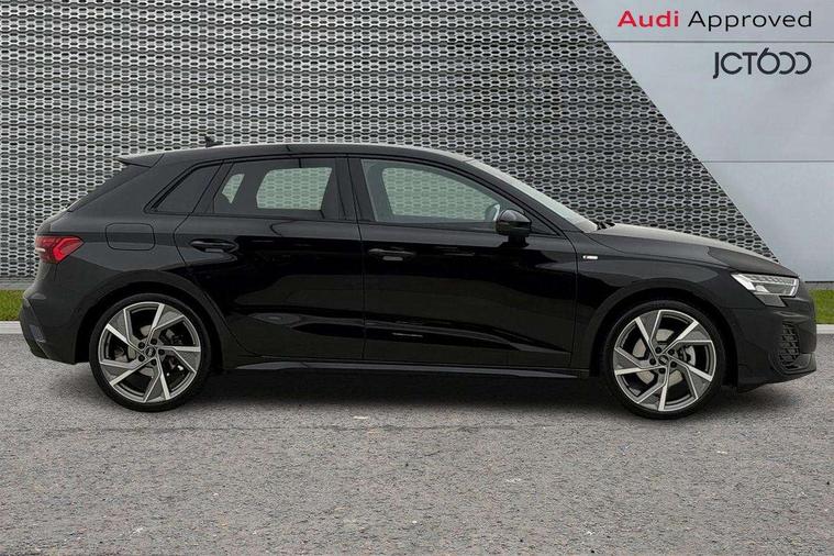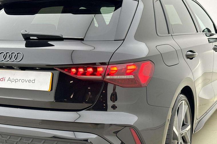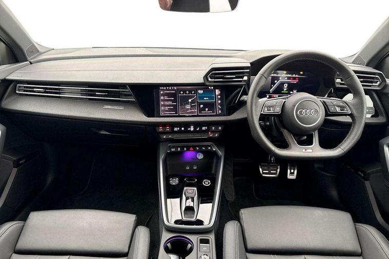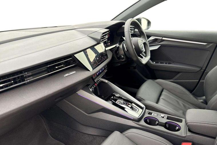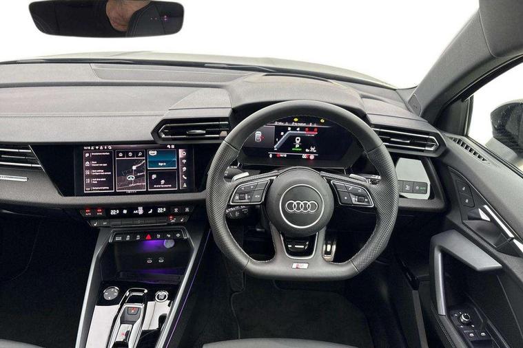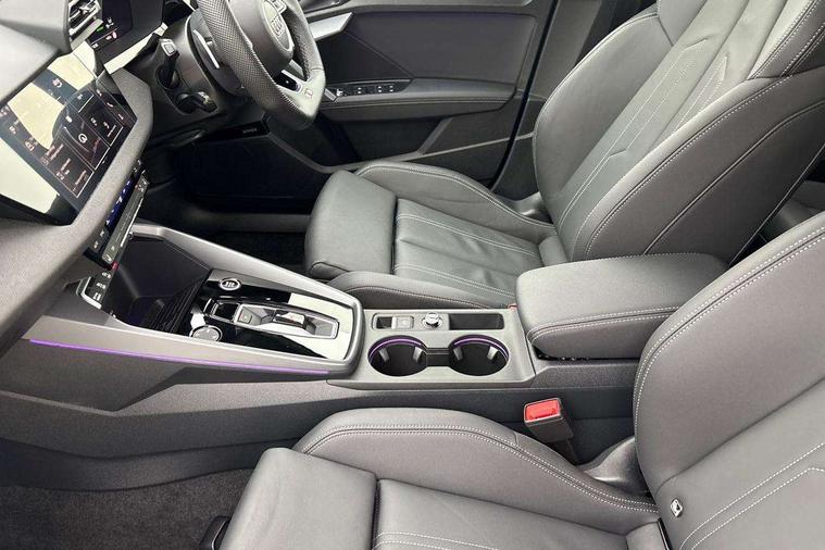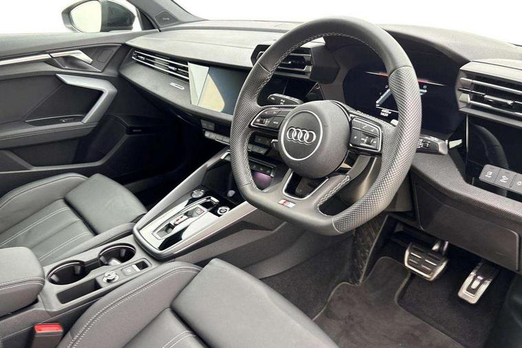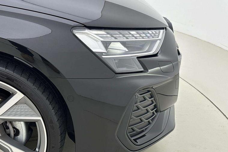 Adaptive cruise control (ACC), Adjustable speed limiter, Audi drive select (Auto, Comfort, Dynamic, Efficiency and Individual), Audi virtual cockpit plus - 12.3" full HD resolution dynamic digital instrument cluster, Automatic start/stop system with recuperation, Bluetooth interface, Camera based traffic sign recognition, Collision avoidance assistant, Driver attention and fatigue detection, e-Call (emergency call), Electromechanical power speed sensitive steering, Emergency assist, Intersection assist, Lane departure warning system, MMI Navigation Plus with high resolution 10.1" colour touch screen display, Park Assist with parking system Plus, Reversing camera, Service indicator, Smartphone interface with app store includes wireless Apple carplay, Android auto and Amazon alexa integration, Trip computer, Voice control system with natural language interaction, Diesel particulate filter, Sports suspension, Audi Phonebox light with wireless charging, Audi sound system - 10 loudspeakers including centre loudspeaker and subwoofer, DAB Digital radio, USB ports with charging function in the rear, Acoustic glass windscreen, All weather light, Anthracite grey Audi rings (front and rear), Audi beam uses LEDs to project the Audi logo onto the ground as you exit your A3, Auto dimming frameless rear view mirror, Automatic dynamic range control, Black accents front and rear bumpers, Black accents in the area of the Audi single frame grille, Black accents window trims strips, Dipped beam, main beam, position light and turning light, Electrically adjustable/heated/folding/auto dimming door mirrors with integrated LED indications + kerb view function for passenger side, Exterior model badging, Front and rear side air inlets in grained matt black with dark liquid chrome frame, Front electric windows, Front radiator grill in high gloss dark chrome, Heat insulating glass windscreen, Illuminated door sills with aluminium inserts at the front with S logo, Intersection light, LED 3rd brake light, LED brake lights, LED daytime running x3, LED headlights with LED rear lights and dynamic rear indicators, LED rear number plate lights, LED reverse light, LED tail lights, Light and rain sensors, Manoeuvring light, Motorway light, Privacy glass - dark tinted rear window, rear door and side windows, Rear diffuser and grill in grained matt black with inlay in dark liquid chrome, Rear electric windows, Rear side wing doors, Rear wiper, S roof spoiler, Side sill trim in dark liquid chrome, Static cornering light, 12V socket and storage compartment in front centre console, 3 seat bench in 2nd row, 3 spoke flat bottomed leather multifunction sport steering wheel with gear shift paddles, 3-zone deluxe automatic air conditioning, 4 way electrically adjustable lumbar support for driver and front passenger, 40/20/40 split folding rear seat bench, Black cloth headlining, Black front and rear floor mats, Front and rear centre armrest in artificial leather with contrasting stitching on armrests and instrument panel, Front and rear headrests, Heated front seats, Height and reach adjustable steering wheel, i-Size child seat mounting on the front passenger side and outer rear seats, i-Size and top tether on the outer rear seats, Manual boot compartment lid, Manually adjustable front seats, Rear centre armrest with cupholder, S badging on the steering wheel, Seat side bolsters, Single front passenger seat, Stainless steel pedals and front footrest in black, Twin leather upholstery with front sports seats S embossed logo, Aluminium interior elements pack - A3, 3x3 point rear seat belts, Driver and front passenger airbag with passenger airbag deactivation, Electronic Stabilisation Control (ESC) including ABS, ASR and EDL, First aid kit with warning triangle and 2 safety vests, Front side airbags with head airbags and interaction airbag, Hill hold assist, Pre-sense front with pedestrian and cyclist detection, Seatbelt monitoring, Tyre pressure loss indicator, Anti theft alarm, Anti-theft wheel bolts, Electronically operated child locks, Immobiliser, Black dashboard,