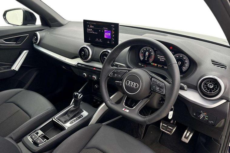 3D map display, Audi connect navigation and infotainment includes innovative services, Audi connect remote and control connects your vehicle to your smartphone, Audi drive select: S tronic - power steering assistance + engine + gearshift (modes: comfort, auto, dynamic, efficiency, individual), Audi smartphone interface - Apple carplay/Android Auto, USB connect, 2xSDXC card readers, voice control for navi, telephone, music and 3rd party apps, Audi virtual cockpit, Automatic start/stop system with recuperation, Bluetooth interface includes bluetooth audio streaming, Camera based traffic sign recognition, Cruise control, Distraction and Fatigue warning, E-call, Jukebox hard drive memory for music (10GB), Lane departure warning, MMI navigation plus with 8.8" touchscreen, Natural voice recognition, Power operated tailgate, Progressive steering, Rear parking sensors, Sport suspension, 6 passive loudspeakers, DAB Digital radio, USB type C port, Audi beam, Auto dimming rear view mirror, Black window trims, Bumper in full body colour paint finish, Electrically adjustable, folding, auto dimming and heated door mirrors with integrated LED side indicators, Front windscreen with grey tinted sunband, LED daytime running lights, LED headlights with dipped beam, high beam, position lights, indicators, LED rear lights, LED third brake light, Privacy glass - dark tinted rear and rear side windows from B-pillar backwards, Rear side wing doors, Rear wiper, Variable front intermittent wipers, Wheel arch trims in manhattan grey, 12V socket in front, 3 seat bench in 2nd row, 3 spoke flat bottomed multi-function leather sport steering wheel with gear shift paddles, 4-way electric lumbar support for front seats including manual seat height adjustment for both front seats, 60/40 split folding rear seat bench, Black carpets, Black cloth headlining, Front and rear head restraints, Front centre armrest, Front sport seats, Front/rear floor mats, Height/reach adjust steering wheel, Illuminated door sill trims with S logo, ISOFIX child seat mounting in front passenger and rear outer seats, Manual air conditioning, Single front passenger seat, Stainless steel pedals, Black styling pack - Q2, 3x3 point rear seatbelts, 6 airbags - Front, curtain and front side airbags, Electromechanical parking brake, Electronic stabilisation control including ABS, ASR and EDL, Front passenger airbag deactivation, Hill hold assist, Pre-sense front with pedestrian recognition, Seatbelt monitoring, Tyre pressure warning light with visual and acoustic warning, Warning triangle and first aid kit, Anti theft wheel bolts, Electronically operated child locks, Remote central door locking, Thatcham category 1 alarm, Aluminium interior element, Black dashboard, Gloss black centre console, Matt brushed aluminium trim inlays, Tool kit,