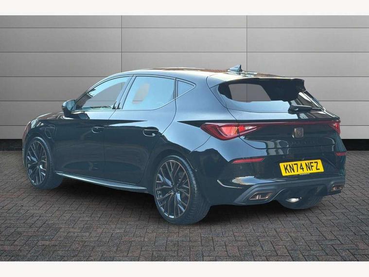 CUPRA drive profile selection with 4 modes (Comfort/Cupra/Sport/Individual), throttle response and gearshift mode, Digital cockpit, E-call, Four x USB Type C ports (2 in front and 2 in rear), Front assist with forward collision warning braking reaction to vehicles, pedestrians and cyclists, Full link smartphone integration with Mirror Link, wireless Apple CarPlay and wired Google Android Auto, Lane assist, Lockable tailgate, Park assist (inc front/rear parking sensors), Rear view camera, RPM, trip computer, outside temp gauge, instrument light brightness, low fuel warning light, lights on reminder, gearshift indicator, Service interval indicator, Start/stop system with regenerative braking, Wireless phone charger, 10 amp mode 2 charging cable, 16 amp mode 3 charging cable, 3.6 kw On-board charger, Standard suspension, XDS electronic differential lock and dynamic traction support, Auxiliary input socket, Auto dimming rear view mirror, Body colour door handles, Body coloured bumpers, Cupra sports bumpers, Dark tinted rear windows, Electric front/rear windows, Electrically adjustable, heated and folding door mirrors, LED front fog lamps with cornering function, LED headlights with dynamic turn signals, tail lights, rear fog lights with rear coast to coast lighting, Panoramic sunroof, Rain sensing wipers, Rear diffuser with twin exhaust pipe on each side with simulated exhausts, Rear side wing doors, Rear wash/wipe, Separate daytime running light with automatic headlight control and coming home feature, Third brake light, 12v power supply in centre console, 3 seat bench in 2nd row, 5 headrests, 60/40 split rear bench seat with armrest, Ambient lighting (glovebox, footwell, ambient lighting multicoloured), Black headlining, CUPRA Leather flat bottomed, heated, perforated steering and gearshift paddles, Cupra sports pedals, Driver/passenger manual seat height adjustment, Dust/pollen filter, Folding boot cover, Front and rear reading lights X 4, Front centre armrest, Front seats manual lumbar adjustment, Height/reach adjust steering wheel, Illuminated interior front door sills, Interior wraparound lighting, ISOFIX points in outer rear seats with top tether anchorage points, Luggage tie-down hooks, PVC/Cloth upholstery with copper stitching + Cupra embossed logo on headrest, Single front passenger seat, Sports bucket seats, Storage pockets on rear of front seats, Sunvisors with illuminated mirror, Three zone climate control, Design pack - Cupra Leon, Dynamic and comfort pack - Leon Cupra, Media system plus with navigation pack - Leon Cupra, 3 point seatbelts on all rear seats, ABS, Brake control system - ESC and brake booster, Child proof door locks, Cupra black brake calipers, Driver and front passenger airbags with front passenger airbag de-activation, front side and curtain airbags, Electronic parking brake, Extended safety system - seat belt tensioner, window closure and hazard lights, Hill hold control, Rear disc brakes, Seat belt reminder for front and rear seats, Tiredness recognition system, Tyre pressure monitoring system, Anti theft alarm system with interior monitoring in cab, backup horn and towing protection, KESSY Advanced - Keyless start, keyless entry, Locking wheel bolts, Chrome and copper interior detailing, 19" Performance satin black and copper alloy wheels with 91Y tyres, Breakdown kit, Tool kit,