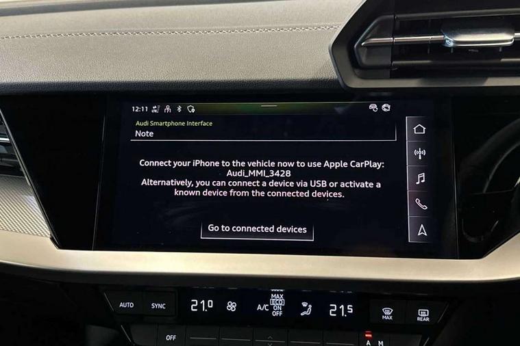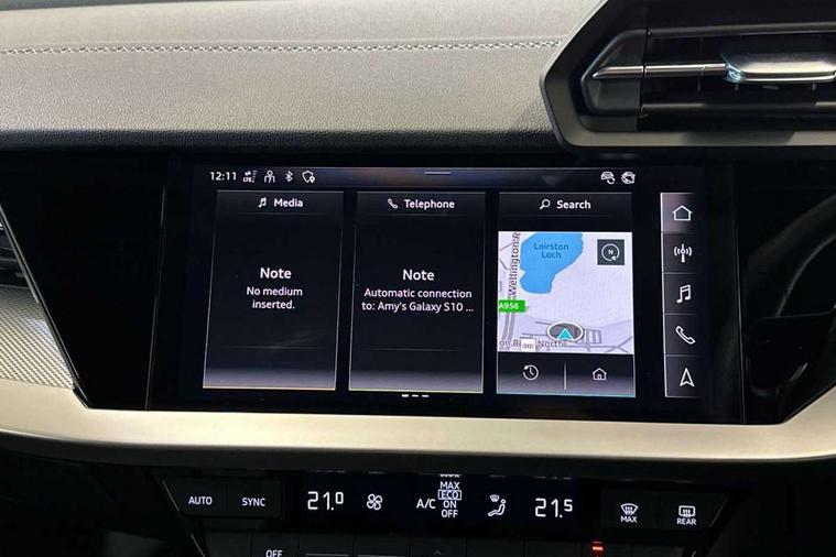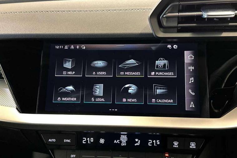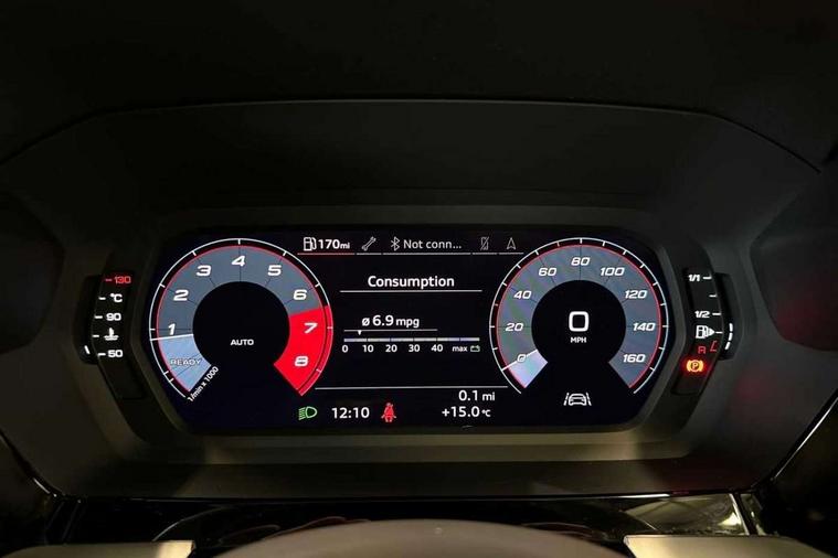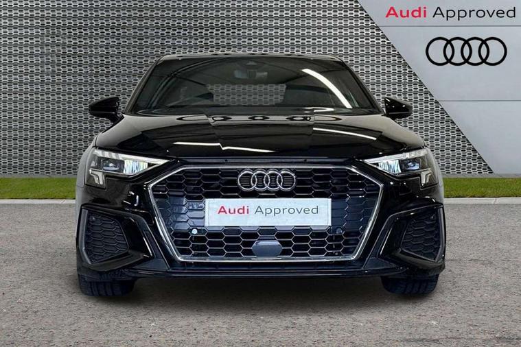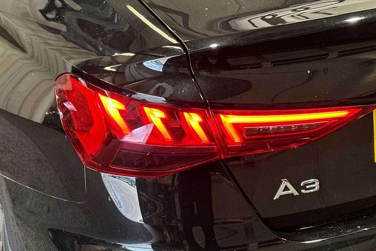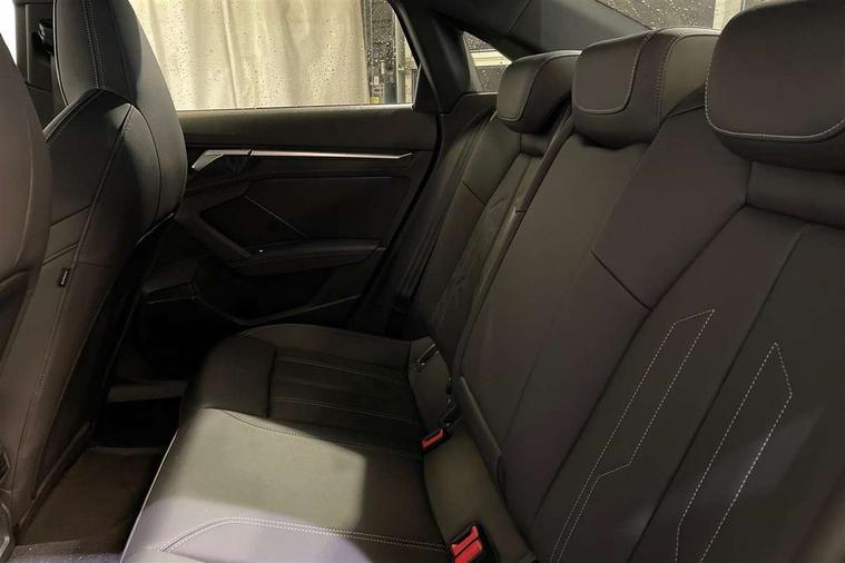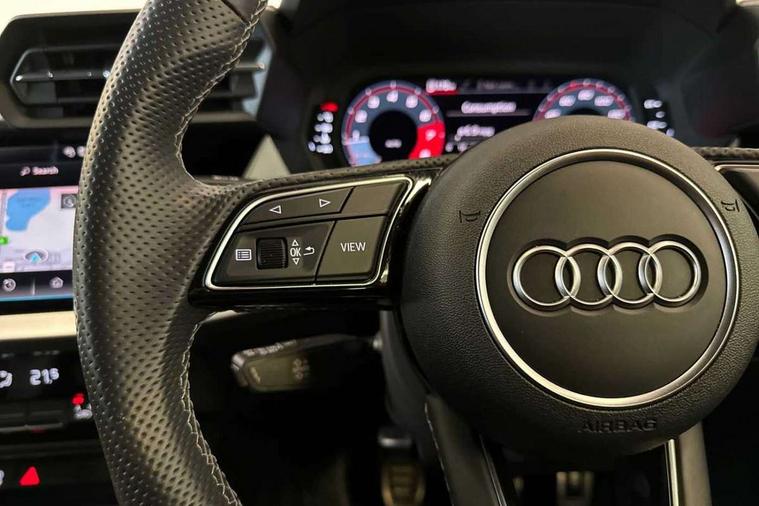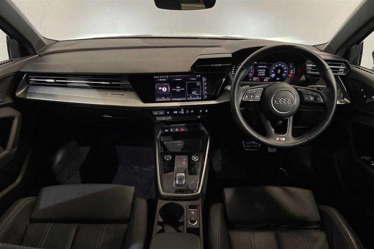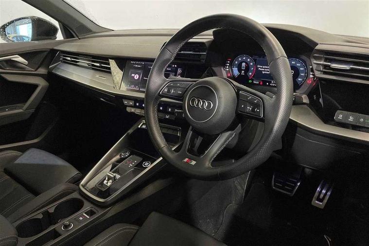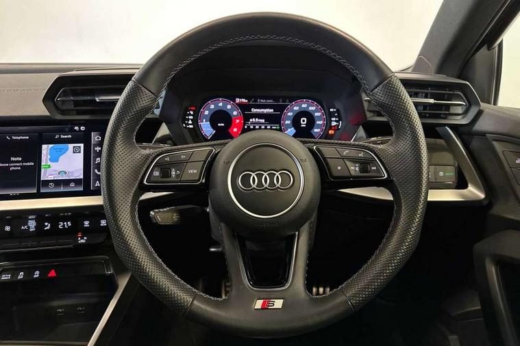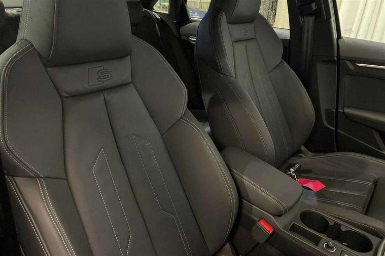 Audi connect emergency call and service, Audi drive select (Auto, Comfort, Dynamic, Efficiency and Individual), Audi smartphone interface, Audi Virtual Cockpit - 10.25" digital and colour instrument cluster, Automatic start/stop system with recuperation, Bluetooth interface, Collision avoidance assistant, Electromechanical power speed sensitive steering, Lane departure warning system, MMI Navigation Plus with high resolution 10.1" colour touch screen display, Service indicator, Voice control system with natural language interaction, 2x USB Type C ports (for charging and data transfer), 6 passive loudspeakers, CD player, DAB Digital radio, 3rd brake light, Acoustic glass windscreen, Aluminium window trim, Auto dimming frameless rear view mirror, Electrically adjustable/heated/folding/auto dimming door mirrors with integrated LED indications + kerb view function for passenger side, Front electric windows, Illuminated door sills with aluminium inserts at the front with S logo, LED daytime running lights, LED headlights with LED rear lights and dynamic rear indicators, Light and rain sensors, Model and engine designation badges at rear, Privacy glass - dark tinted rear window, rear door and side windows, Rear electric windows, S line bumpers, S roof spoiler, 12V socket and storage compartment in front centre console, 40/20/40 split folding rear seat bench with cupholder, Black cloth headlining, Dual zone electronic climate control, Front and rear centre armrest in leather, Front and rear headrests, Front/rear floor mats, Height and reach adjustable steering wheel, Interior lighting - glove compartment light and right hand side, Luggage compartment floor covering, Manual boot compartment lid, Manually adjustable front sport seats, Seat side bolsters, Stainless steel pedals and front footrest, Twin leather upholstery with front sports seats S embossed logo, Aluminium interior elements pack - A3, S line styling pack - A3 Saloon, 3x3 point rear seat belts, Driver and front passenger airbag with passenger airbag deactivation, Electronic Stabilisation Control (ESC) including ABS, ASR and EDL, First aid kit with warning triangle and 2 safety vests, Front side airbags with head airbags and interaction airbag, Hill hold assist, Pre-sense front with pedestrian and cyclist detection, Seatbelt monitoring, Tyre pressure loss indicator, Anti theft alarm, Anti-theft wheel bolts, Electronically operated child lock, Immobiliser, Remote control central locking, Aluminium air vent surrounds, Aluminium trim elements, Dark spectrum aluminium inlays, accent surfaces in the dashboard and centre console in platinum grey silk effect paint finish,