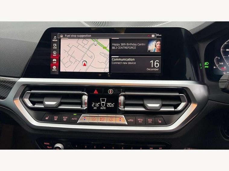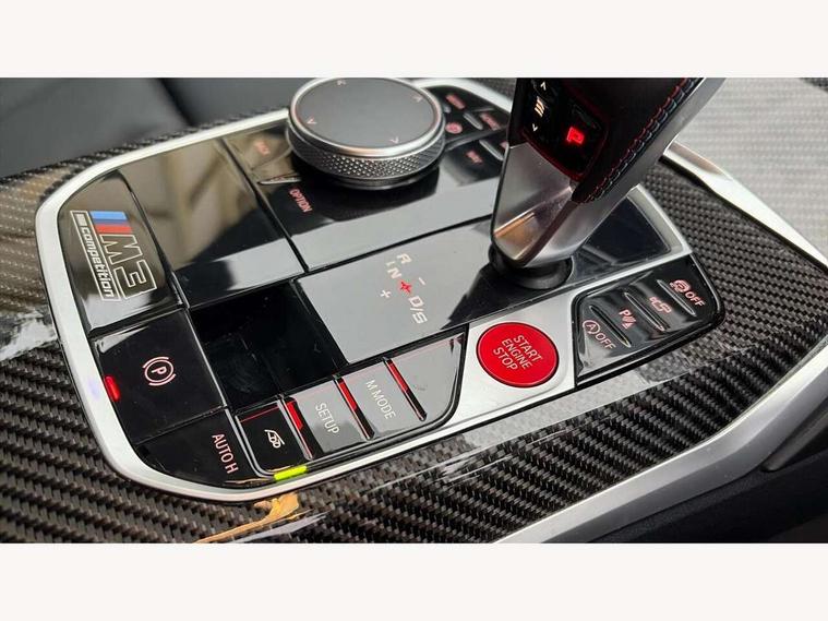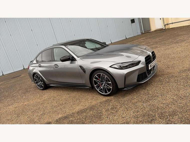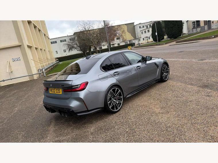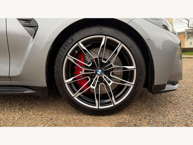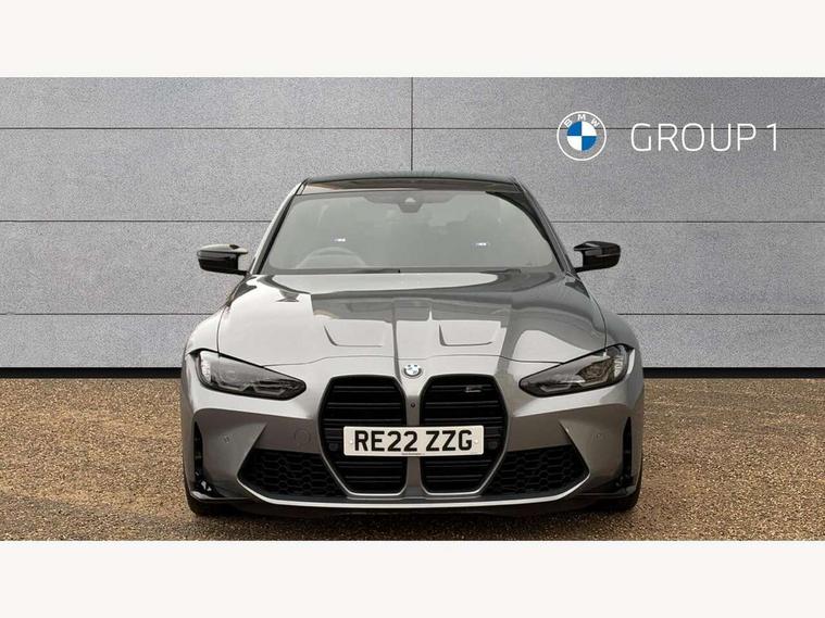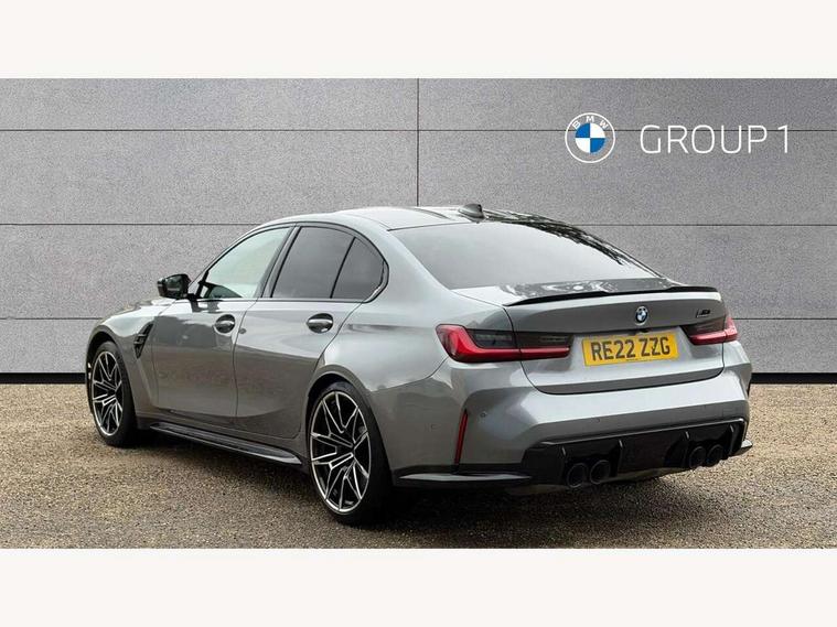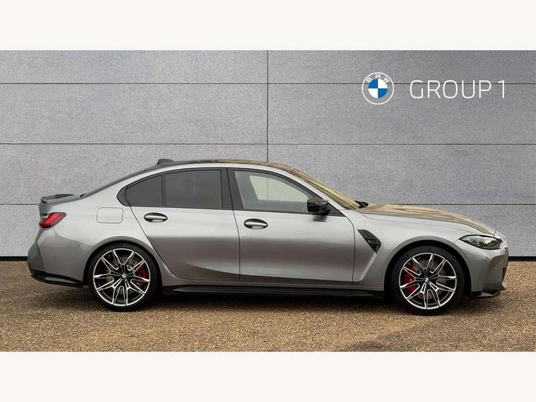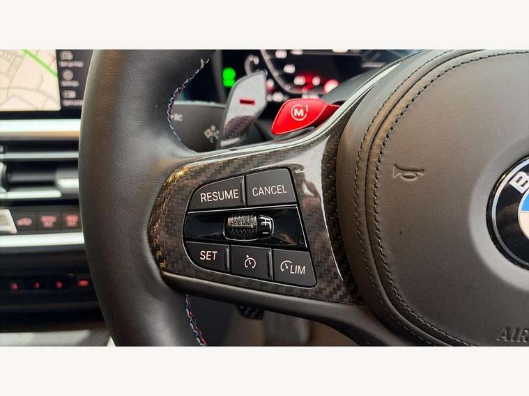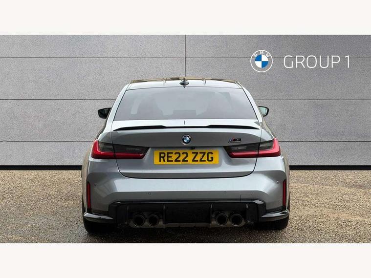 Active guard plus, Automatic start/stop system, Bluetooth functionality with Apple CarPlay/Android Auto, BMW iDrive controller on centre console, BMW legal emergency call, BMW Live Cockpit Professional sat nav system with 12.3" instrument display and high resolution control display, BMW Online services, BMW Teleservices, Brake pad wear indicator warning light, Condition based service, Connected drive services, Door/boot open warning light, Driving experience switch, Electric Power Steering (EPS) with Servotronic, Instrument cluster with extended contents, Lights on warning, M drive buttons, Oil sensor for level and grade, warning by check control system, Oil temperature gauge, On board computer, On board diagnostics, Optimum shift indicator, Outside temperature display, Pull away assistant, Run flat indicator, Service interval indicator, Speed limiter, Widescreen display, Adaptive M Sport suspension, Double joint spring strut front axle, M Drive Professional including track mode, laptimer, traction control & Drift analyser, M Sport differential, M steptronic sport transmission with drivelogic, Safety battery terminal clamp, 8 programmable favourite buttons, Auxiliary point for auxiliary devices, BMW professional radio/CD/MP3, DAB Digital radio, Harman/Kardon loudspeaker system, 3rd brake light, Acoustic glazing, Auto dimming driver's door mirror, Auto dimming rear view mirror, Automatic headlights + automatic windscreen wipers, Black chrome exhaust tailpipes, Black model designation badges, BMW emblem on engine compartment lid and tailgate, BMW high gloss shadow line with extended contents, BMW Individual shadowline lights, Body colour bumpers, Body colour door handles, Carbon fibre reinforced plastic (CFRP) roof, Day time running light, Door mirror integrated indicators, Door sill finishers with aluminium inserts, Dynamic brake lights, Electric adjustable heated door mirrors, Electric folding door mirrors, Electric front and rear windows with one touch/convenient open/close function, Follow me home headlights, Front and rear apron plastic in body colour, Front and rear bumper system, Headlight beam throw control, Heat protection, sun protection glazing, Heated rear window with automatic switch off, High beam assistant, High gloss black frameless kidney grille with M badge, LED number plate light, LED tail lights with 3D L-shaped LED light design, M designation, Mirror glass aspheric on driver's side, convex on passenger side, Rear boot, Rear fog lights, Rear reflectors, Rear right M3 competition inscription, Rear side wing doors, Reversing light, Shark fin roof aerial, Strakes in front side panel, black matt/black high-gloss, with model badge, Visible VIN plate, Welcome lighting, Windscreen wipers with integrated washing jets, 2 cupholders in front centre console, 2 x 12 V Power sockets (luggage compartment and front centre console), 2 x USB Type C ports for charging and data transmission in front centre console, 2 x USB Type C ports for charging in rear centre console, 3 folding rear headrests, 3 seat bench in 2nd row, Ambient lighting, Anthracite headlining, Battery in luggage compartment, Carbon fibre centre console incl. cover for cupholders, Carbon fibre decorative steering wheel finishers, Carbon fibre shift paddles, Carbon fibre strip in instrument panel on front passenger side, Centre console armrest with storage compartment, Compartment in front of cupholder, Driver/passenger sunvisors with illuminated vanity mirrors + covers, Electric front seats + driver memory, English handbook, Floor mats in velour, Footwell lighting, Front and rear door exit lights, Front door storage bins with bottle holder, Front interior light, Front isofix attachment + airbag deactivation, Front seat backrest width adjustment, Front seats lumbar support, Front/rear door armrests, Gearshift lever with embossed M badge, Heated front seats, Height adjustable front headrests, Interior mirror lighting, Isofix on 2nd row outer seats, Lockable/illuminated glovebox, Luggage compartment lighting, Manual 40:20:40 split folding rear seat with two tilt positions for backrest, Rake/reach adjustable steering wheel, Single front passenger seat, Storage compartment in rear doors, Storage tray and compartment with cover in centre console, Three zone automatic air conditioning, Through loading system, Toolkit located in luggage compartment, Wireless charging tray, Additional storage compartment pack - M3, Connected package professional - M3, High gloss shadowline exterior trim pack - M3, 3 point seatbelts on all seats, ABS/EBD, Automatic Stability Control (ASC), Brake energy regeneration, Brake fade compensation, Compound structure brake discs, Cornering brake control (CBC), Crash sensor, Driver/Front Passenger airbags, Dry braking, Dynamic brake control, Dynamic Stability Control with M Dynamic mode, Dynamic Traction Control - DTC, Electromechanical parking brake, Electronic differential lock control (EDLC), Front and rear head airbags, Front seat side impact airbags, Front seatbelt pretensioners + load limiters, Hill start assist, M Sport seat belts, Rear child proof door locks, Seatbelt warning, Side impact protection, Two tone horn, Tyre pressure sensor, Warning triangle and first aid kit, Digital key, Electronic immobiliser, Remote central locking, Thatcham cat 1 remote alarm, Vehicle Key with 4 buttons including the integrated key, Galvanic finish to control surrounds, High gloss black interior trim, Tyre repair kit,