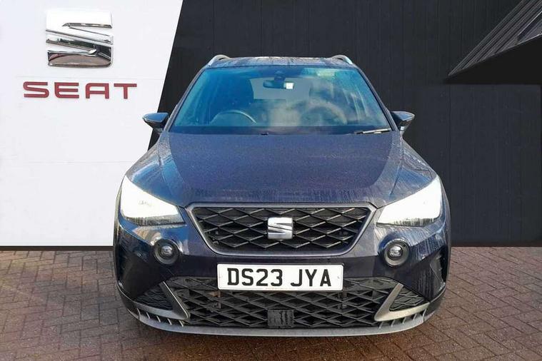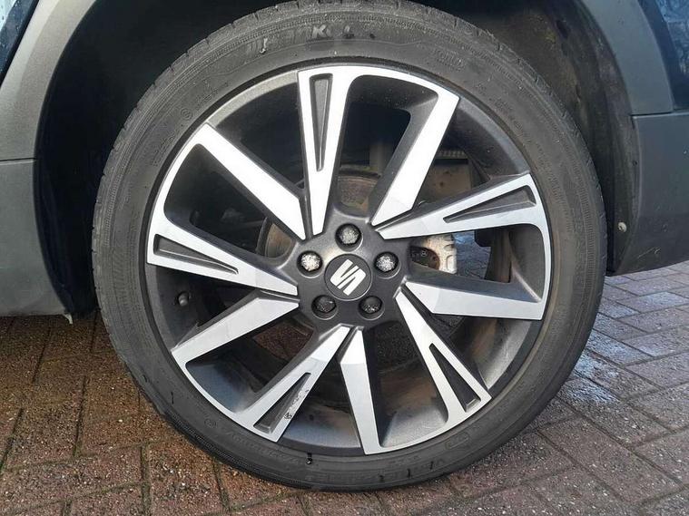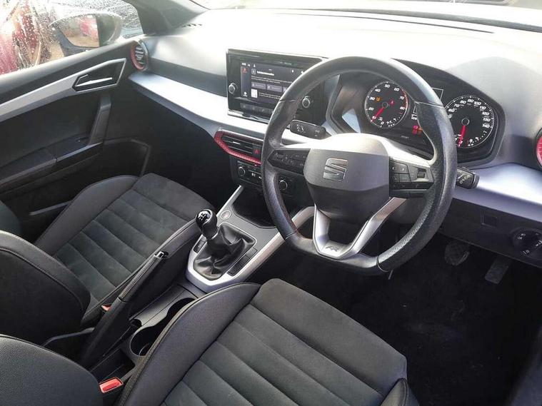 'Lights On' Reminder warning buzzer, Analogue cockpit with physical dials, Digital clock, E-call, Electric speed sensitive power steering, Full Link Smartphone Integration with Mirror Link, Apple Car Play, Google Android Auto with USB Type C cable for Apple and Android compatibility, Lane keeping system, Low fuel warning light, Outside temperature display, Rear parking sensor, RPM counter, Seat connect with safety, service and remote, SEAT Drive profile - Four different models normal-sport-eco-individual, steering response, throttle response, Trip computer, Wireless phone charger, Bluetooth interface for hands free and audio streaming, DAB digital radio and AM/FM radio, Media system with 8.25" colour touchscreen with USB port (type c), Steering wheel mounted audio controls, Anti theft roof antenna, Automatic activation of hazard warning lights, Body coloured bumpers, Body coloured door handle inserts, Chrome roof rails and window surrounds, Dark tinted rear windows, Dimming rear view mirror, Electric front/rear windows, Electrically adjustable and heated door mirrors, Front fog lights with cornering function and rear fog light, FULL LED automatic headlights with dynamic headlight range control, coming and leaving home, LED daytime running lights, LED rear tail lights and licence plate lights, Protective side mouldings, Rear side wing doors, Rear spoiler, Rear window wash/wipe, Roof colour door mirrors, Third brake light, Twin exhaust pipe styling hidden exhaust pipe, Visible VIN plate, Windshield wiper with intermittent control and potentiometer, 2 cupholders, 3 seat bench in 2nd row, 60/40 split folding rear seat, Aircare filter, Black interior roof, Double boot floor, Driver sunvisor with covered mirror + card holder, Dual zone climate control, Front comfort seats, Front courtesy light with 2x front and 2x rear reading lights, Gear shift indicator, Height adjustable front seats, Height/reach adjustable steering column, Illuminated boot, Instrument lighting with brightness control, Interior ambient lighting, Interior light in footwell, central console and door panel, ISOFIX points in outer rear seats with top tether anchorage points, Microsuede cloth upholstery, Passenger sunvisor with vanity mirror, Perforated flat bottomed leather steering wheel/gear knob/handbrake with red stitching and FR logo, Single front passenger seat, Two front and three rear height adjustable headrests, Interior chrome pack - Arona, 3 point seatbelts on all rear seats, ABS, Active front headrests, Child locks on rear doors, Driver and front passenger airbags with front passenger airbag de activation, front side and curtain airbags, Electronic stability control, Emergency Brake Assist (EBA) and front assist, Front and rear seatbelt reminder, Hill hold control, Multi-Collision braking, Tiredness recognition system, Traction control, Tyre pressure monitoring system, Alarm with back-up horn, Electronic engine immobiliser, KESSY Keyless entry and go, Locking wheel bolts, Remote central locking + deadlocks, Tow away protection, Titan black dashboard,