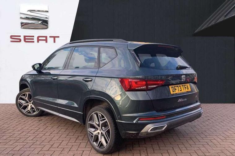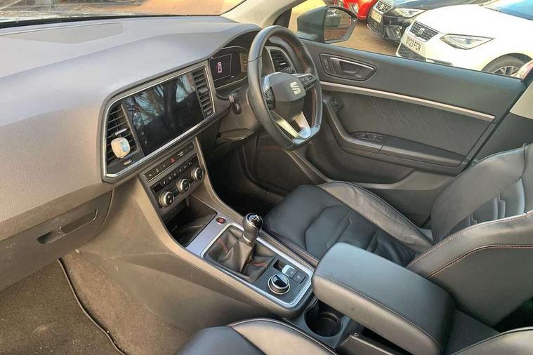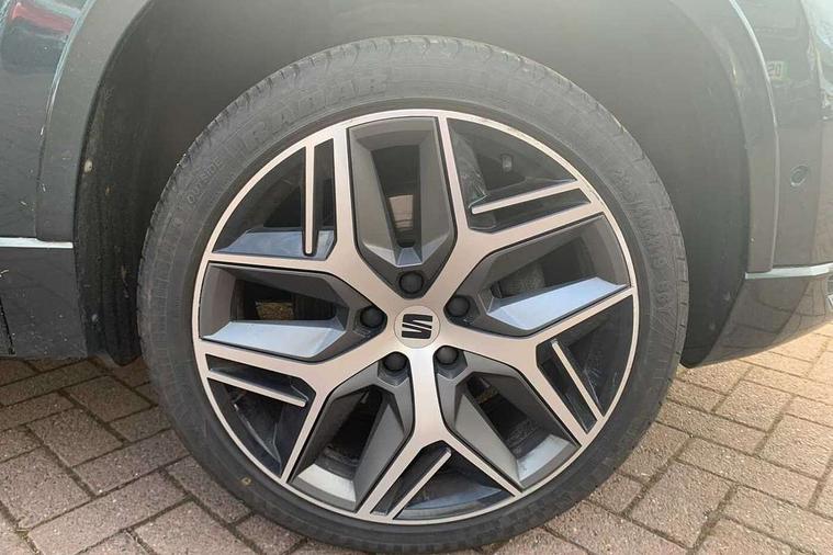 10" Digital cockpit, Cruise control system with speed limiter, E-call, Outside temperature gauge, Progressive power assisted steering, SEAT drive profile with driving experience button - Normal, Sport, Eco and Individual mode, steering and throttle response, Self parking functionality (includes front and rear parking sensors), Start/stop system, Tailgate, Trip computer, Wireless full link smartphone integration, Wireless phone charger, Steering wheel mounted audio/phone controls, Black roof rails, Black side window trim, Body colour bumpers, Body coloured wheel arch surrounds, Chrome front grille frame, Dark tinted rear windows, Daytime running lights, Door mirrors with welcome light silhouette, Dynamic headlight range control with self adjusting whilst driving, Electric adjustable/heated/folding door mirrors, Front and rear electric windows, Full LED headlamps with lens and LED front fog lamps with cornering function, Illuminated aluminium front door sill, LED rear tail lights with dynamic indicators, Rear fog lights, Rear roof spoiler, Rear side wing doors, Rear wash/wipe, Simulated exhaust pipes in chrome frame, Variable front intermittent wipers, 12V socket in front, 3 seat bench in 2nd row, 60/40 split folding rear seat, Aluminium pedals, Dual zone climate control, Electric adjustable driver seat with lumbar adjustment, Front and rear head restraints, Front centre armrest, Front seat back storage pockets, Heated front seats, Height adjustable passenger seats with lumbar adjustment, ISOFIX points in outer rear seats with top tether anchorage points, Leather steering wheel and gear knob, Leather upholstery with front comfort seats, Rear armrest and easy back seat release mechanism from boot, Single front passenger seat, Convenience pack - Ateca, Interior lighting pack - Ateca, Navigation system pack with DAB - Ateca, 3x3 point rear seatbelts, ABS, Traction control system (TCS), Electronic stability control (ESC) and Electronic differential lock system (XDS), Airbags - Driver and front passenger airbag with deactivation, front side, two curtain and driver's knee airbags, Electric parking brake with auto hold function, Front and rear seatbelt reminder, Front assist with autonomous emergency braking, Hill hold control, Manual rear child locks, Single tone horn, Tiredness recognition system, Traction control, Tyre pressure monitoring system, Alarm, Keyless entry, Locking wheel bolts, Remote central locking, Chrome interior detailing, 19" Exclusive machined alloy wheels with decorative inserts 36/7 in cosmo grey,