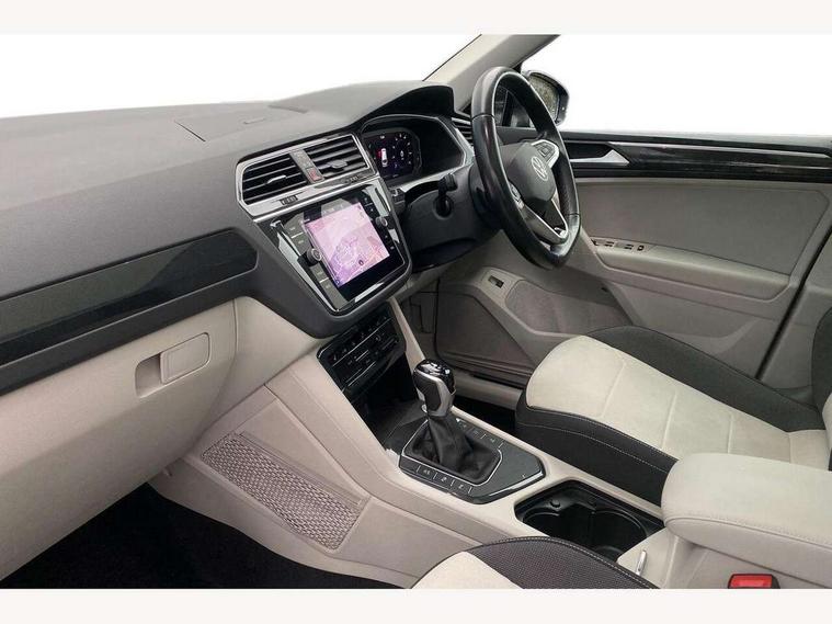 Adaptive cruise control ACC stop and go including speed limiter, App-Connect incl. App-Connect Wireless for Apple CarPlay and Android Auto, Bluetooth phone integration system, Distance control assist, Driver alert system, Driver profile selection, Dynamic road sign display, eCall emergency call system, Electromechanical speed sensitive power steering, Engine start/stop button, Lane keeping system Lane Assist, Lights on warning, Motorised electric tailgate operated via key fob, drivers door and foot movement under tailgate, Multifunction front facing camera, Outside temperature display, Premium multifunction display with multi colour display, Remote control boot opening, Rev counter, Revision / skills operating concept travel assistant, Service interval indicator, Speed limit display, Start/stop system with regenerative braking, Tailgate/trunk lid unlocking from outside, Trip computer, Warning sound and light for doors and tailgate open, Battery regeneration during braking, Diesel particulate filter, Misfuel prevention device for diesel engine, Selective Catalytic Reduction, XDS electronic differential lock for improved traction and handling, 4 X 20 watt output, 8 Speakers, Diversity antenna for FM reception, Radio, SD card slot, Simultaneous pairing of 2 compatible mobile devices, SMS functionality - read, compose and send SMS messages using touch-screen display, Title and cover art display, Aluminium door sill protectors, Auto dimming interior rear view mirror, Automatic headlight control system, Body colour door handles, Body coloured bumpers, Body coloured door mirrors with integrated indicators, Coming/leaving home lighting function, Dynamic headlight range control, Front and rear electric windows, Heated rear window, High level 3rd brake light, IQ light-Adv high beam, Dynamic light assist for LED matrix headlamp+LED separate DRL+DCL, dark red rear LED tech, Poor weather light+ cornering light, Laminated safety glass windshield, heat and sound insulating, LED rear number plate lights, Poor weather light and cornering light, Privacy glass for rear side windows and rear window, Rain sensor windscreen wipers, Rear exhaust tailpipe, Rear fog lamp, Rear side wing doors, Rear windscreen washer and wiper with interval delay, Side and rear windows in heat insulating glass, Tilting and sliding panoramic sunroof with rear panoramic sunroof, Trailer Stability Programme, Windscreen wipers/ intermittent wipe + 4 position delay, 12V outlet in center console rear and in luggage compartment, 12V outlet in front and tray, 2 cup holders in front, 2 LED front reading lights, 2 LED rear reading lights, 3 bench rear seats in 2nd row, 3 rear headrests, 4 load lashing points, 40:20:40 split folding rear seats, Air Care Climatronic 3 zone automatic climate control with enhanced air filter and controls in the rear, Backrest release for left front seat, Climate control unit rear with touch function, Door and side trim panel in foam film and woven fabric, Front centre armrest, Front footwell illumination, Front seats head restraints (x-adjustment), Height adjustable front seats, Height/reach adjust steering wheel, Instrument lighting white adjustable panel illumination, Interior light with delay, Isofix Preparation 2 Rear child seats, Leather gear knob, Lockable cooled glovebox, Luggage compartment lighting, Luggage net, Rear bench seat asymetrically split folding, longitudinally movable and folding with load-through hatch and center armrest, Remote unlocking for rear seat backrest, Removable luggage cover, Removable rear headrests, Safety optimised front head restraints, Single front passenger seat, Sliding/reclining rear seats, Standard rear seat release, Storage compartment in driver's door, Storage compartment in passenger's door, Storage compartment in rear doors, Storage compartments in luggage area left and right, Storage tray on dashboard, Sun visors with illuminated vanity mirrors, Top front comfort seats, Variable boot floor, height adjustable and removable, Easy open and close pack with safelock - Tiguan, 3 point seat belt for centre rear seats, 3 point seat belts with seat belt pretensioners for the outer rear seats, Active bonnet, Curtain airbags for front and rear passengers, Driver/Front Passenger airbags, Drivers knee airbag, Electronic parking brake with auto hold, Electronic Stability Control with driver steering recommendation, ABS, ASR, EDL, EDTC and trailer stabilization, Front assist with autonomous emergency braking (for Adaptive Cruise Control ACC up to 130 mph), Front disc brakes, Front passenger airbag deactivation, Front side airbags, Height adjustable front 3 point seatbelts + pretensioners, Hill hold control, Manual child proof rear door locks, Pedestrian monitoring system, Power assisted brakes, Proactive passenger protection system in combination with front assist, Rear disc brakes, Rigid safety cell with front and rear crumple zones, Two tone horn, Warning sound and light for front seat belts if unfastened, Anti theft alarm system with interior monitoring, backup horn and towing protection, Anti theft wheel bolts, Central locking system with safelock radio remote control and 2 remote control folding keys, Electronic engine immobiliser, Tool kit,