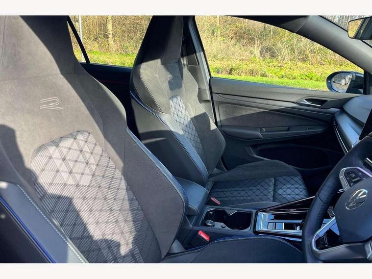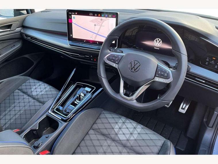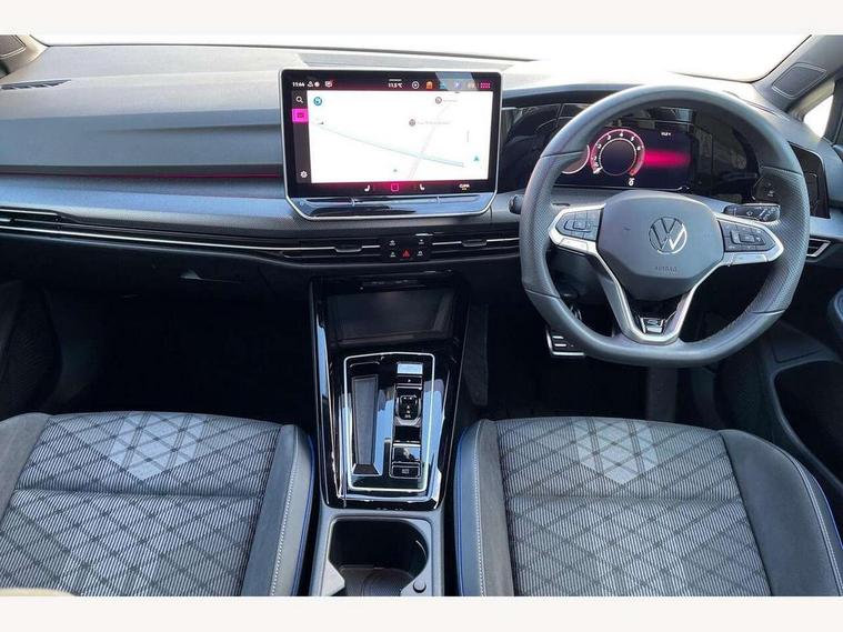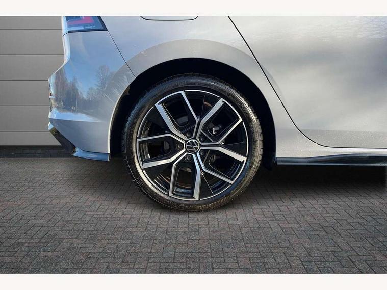 Activated carbon canister, Adaptive cruise control (ACC), Advanced driver attention and drowsiness monitor, Dynamic road sign display, Dynamic steering, E-Sim card for online connectivity, eCall emergency call system, Emergency assist, Lane keeping system Lane Assist, Multi-color Digital cockpit pro, selection of different info profile possible, Multifunction front facing camera for distance control, Navigation system, Oncoming vehicle braking when turning including swerve support, Preparation for light assist system, Speed limiter, Speedo, rev counter, electronic odometer, trip, service interval display, exterior temperature and fuel gauge, Traffic jam assist, Voice enhancer and voice control, Warning signal and warning light for front and rear seatbelts not fastened, We connect plus preparation, We connect preparation, Wireless app connect, Hybrid propulsion system, Petrol Particulate Filter, Start-stop system with battery regeneration (recuperation - energy recovery during braking), XDS electronic differential lock for improved traction and handling, 2 USB C ports in front, 2 USB charging sockets on the centre console in the rear charging capacity upto 45W, Comfort telephony + wireless charging, without wireless aerial connection, Digital radio reception (DAB), Diversity antenna for FM reception, Gaming platform via car app, Infotainment system with 12.9" display, Mobile phone interface with inductive charging feature, 3rd brake light, Auto dimming rear view mirror, Auto headlights, Automatic headlamp activation with Coming home and Leaving home feature, Body colored bumpers in R-Line style, Body colour door handles, Exterior mirrors convex on the left and aspherical on the right, Front and rear electric windows, Heat insulating windshield made of laminated glass, LED daytime running lights, Rain sensor, Rear exhaust tailpipe, Rear fog light on one side and reversing lights on both sides, Rear side wing doors, Rear windscreen washer and wiper with interval delay, Remote electrically foldable door mirrors, puddle lights and reverse activated passenger's door mirror, Volkswagen logo in front, illuminated lighting animation with wake up/goodbye scenario and illuminated door handles, Welcome light with surround lighting, 12V socket in front centre console, 12V socket in luggage compartment, 3 rear head restraints, 3 seat bench in 2nd row, Ambient lighting with 30 colour including LED light unit in front footwell with selectable light colour, Brushed stainless steel pedals, Carpet mats, front and rear, Chrome plated radiator grille inserts, air vent surrounds and light switch surrounds, Front centre armrest, Front seat lumbar support adjuster, Heated front seats, Integrated front head restraints, ISOFIX anchors for child seats on outer rear bench seats and on front passanger seat compatible for i-Size, Luggage compartment lighting, Manual height adjustable front seats, Plastic gear knob, Premium sports seats in front, Rear cupholder and loadthough, Sardegna cloth upholstery with front and outer rear seats Art Velour inner sides of bolsters, Single front passenger seat, Soul black instrument panel, Split folding backrest with centre armrest and unsplit rear seat bench, Storm grey roof lining, Sun visors with illuminated vanity mirrors, Black exterior Styling package with Matrix LED headlights - Golf, Winter package - Golf DSG Estate/Hatchback, 3 point height adj front seatbelts + pretensioners, 3 rear three point seatbelts, ABS, Autonomous emergency braking front assist with pedestrian and cyclist monitoring, Child locks on rear doors, Driver and front passenger airbag with front passenger airbag deactivation, Electronic parking brake with auto hold, ESC (Electronic Stability Control), Extended pedestrian protection measures, Hill start assist, Rear disc brakes, Two tone horn, Tyre pressure loss indicator, Volkswagen roadside assistance, Anti theft wheel bolts, Preparation for alcohol interlock, Decorative inserts carbon grey for dashboard and front door trim panels, 18" Leeds alloy wheels,