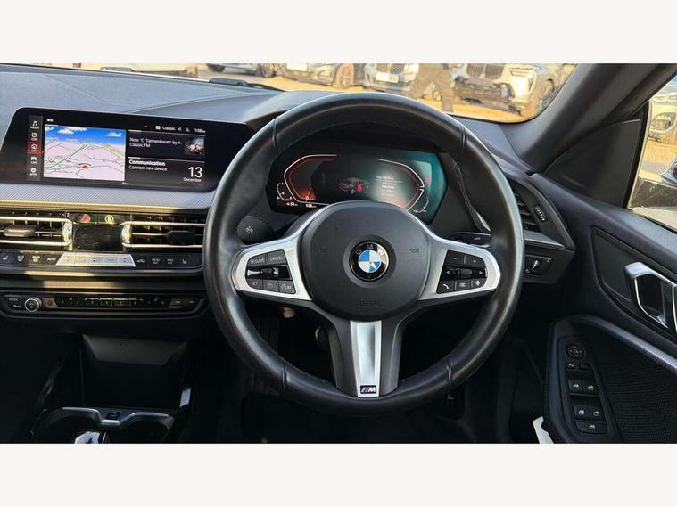 Active guard plus, Attentiveness assist, Auto start-stop, BMW ConnectedDrive online services, BMW Intelligent Personal Assistant, BMW Live Cockpit Professional with 10.25" high resolution instrument and control display, BMW Online services, BMW operating system with 7.0 mid interface, BMW Teleservices, Check Control warning system for monitoring of lights and door/luggage compartment open warning, Cruise control with braking function, iDrive controller with 7 short cut favourite buttons on centre console, Integrated navigation data with map data via USB +features such as 3D landmarks and micro city models, Integrated owners handbook, Intelligent voice assistant, Lane departure warning system, M Sports steering, On board computer - average speed+fuel consumption, service interval, clock/date, odometer/trip meter, outside temperature display and ice warning, Optimum shift indicator, Personal Profile, Pull away assistant, Speed limiting function, Aluminium lightweight construction, Balancer shaft, Double VANOS, Drive performance control with ECO PRO comfort + sport mode, Dual clutch automatic transmission, Electronic differential lock, High precision injection, M Sport suspension with stiffer spring/damper set-up and vehicle lowered by 10mm + twin tube gasfilled shock absorbers and Anti roll bars, Performance Control, Petrol Particulate Filter, VALVETRONIC engine management, 2x USB Type C ports (for charging and data transfer), 4G LTE Connectivity with hard wied 4G network sim card, DAB digital radio, MP3 players and RDS double tuner, Auto wipers, Automatically dimming rear view mirror, Body colour door handles, Body colour mirror caps, Chrome 'M' logo side designation, Chrome exhaust single tailpipe, round, Direction indicator side lights integrated exterior mirrors, Electric windows - front and rear, with open/close fingertip control and trap release, Exterior mirrors - electrically folding with anti-dazzle, Fading support, Follow me home headlights, Front and rear bumper system with replaceable deformation elements, Front door sill finishers in black plastic with M designation in metallic look, Heated, electrically adjustable exterior mirror aspheric on driver side, convex on passenger side, High gloss black B pillar finish, High gloss shadow line exterior trim, High level third brake light, LED daytime running lights, LED front fog lights, Lightweight engineering, Model designation on right side of tailgate, Preparation for high beam assistant, Rain sensor with automatic headlight activation, Rear boot, Rear fog lights, Rear side wing doors, Reversing light in rear light cluster, Welcome lighting, 12V power socket in centre console, 2 cupholders in front centre console, 3 rear seat head restraints, 3 rear seats, 3 spoke M sports design leather steering wheel finished in nappa leather with specific M badge, Anthracite finished floor mats with contrasting surround, Anthracite headlining, Automatic two zone climate control air conditioning, Child seat ISOFIX attachment for two outer rear seats and front passenger seat with anchorage points, Conditioned based service, Driver and front passenger seat heating, Front and rear door pockets including bottle trays, Front and rear side armrests integrated into door trim, Front armrest foldable with integrated storage compartment, Front centre interior light over interior mirror and rear centre automatic interior light when door is opened/ignition switched off or via remote key, Front head restraints, Front passenger seat, Front sports seats with electric side bolster adjustment, Glove compartment, Luggage compartment lighting, Manually adjustment steering wheel column, Multi-function controls for steering wheel, Sun visors with vanity mirrors and insert tab, Through loading system with 40/20/40 split folding rear seat, Two lashing eyes, Additional interior lighting pack - 2 Series Gran Coupe, Connected pack professional - 2 Series Gran Coupe, Extended storage pack - 2 Series Gran Coupe, M Sport exterior styling aerodynamics pack - 2 Series Gran Coupe, 2 tone horn, Airbag - Front driver and passenger, front and rear head, front side, curtain head protection, manual deactivation of front passenger airbag possible, Anti lock braking system (ABS) with cornering brake control, BMW emergency call, Brake drying, Braking readiness, City braking function, Crash sensor activating of airbags, Unlocking doors, hazard warning lights, interior light, safety battery terminal, Dynamic stability control + (DSC+), Dynamic Traction Control - DTC, Electrically operated hand brake, Rear brake discs, Rear child proof door locks, Seat belt security check for driver and front passenger, Seatbelt warning, Side impact protection, Three point seat belts on all seats including front belt stopper, pyrotechnic belt tensioners and belt force limiters, Trailer stability control, Tyre pressure monitoring system, Ventilated front disc brakes, Warning triangle and first aid kit, Central locking switch for all doors, fuel filler cap and luggage compartment, Deadlocking function system to all doors, Drive away locking system on all doors and luggage compartment, Locking wheel bolts, Start/Stop button (illuminated) in centre console with keyless engine start and Auto Start-Stop deactivation button, Thatcham Cat.1 alarm and immobiliser, Two remote control key with integrated key - open/close doors/fuel flap/tailgate +1 button for unlock compartment with M design high gloss black inlay, Contrast stitching on instrument panel, 18" Burnished M double spoke bi-colour alloy wheels finished in orbit grey - style 819M, Reduced rolling resistance tyres,