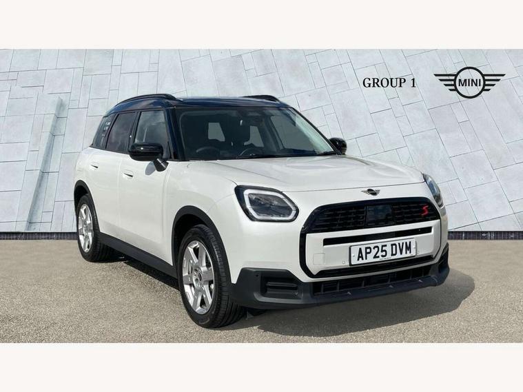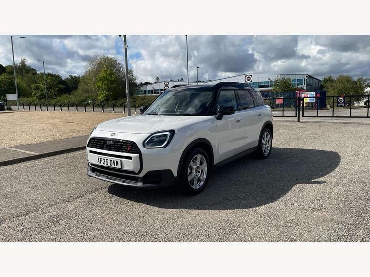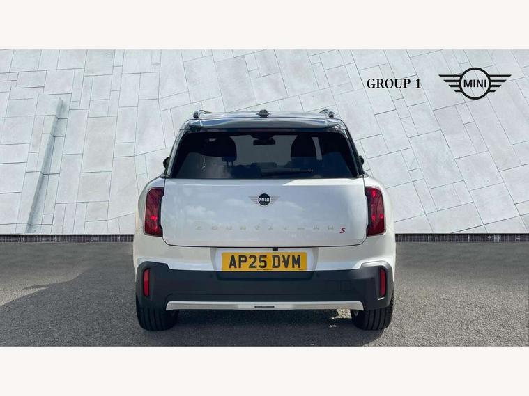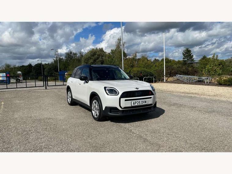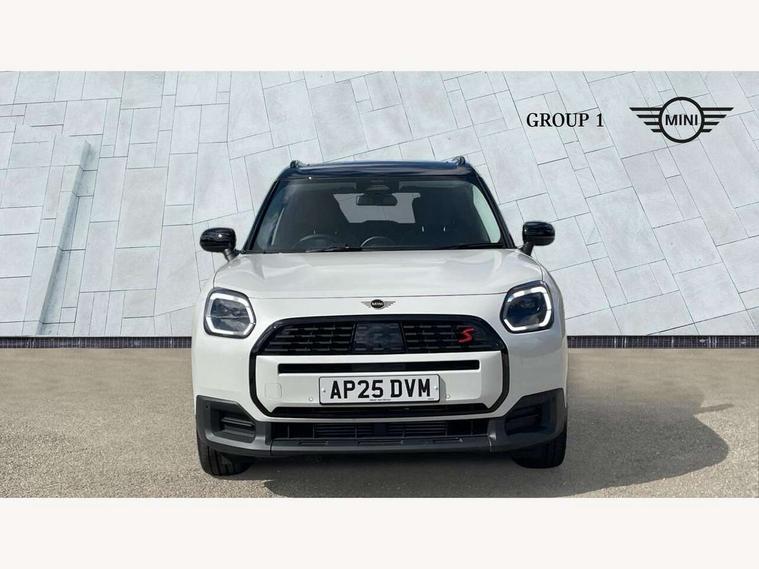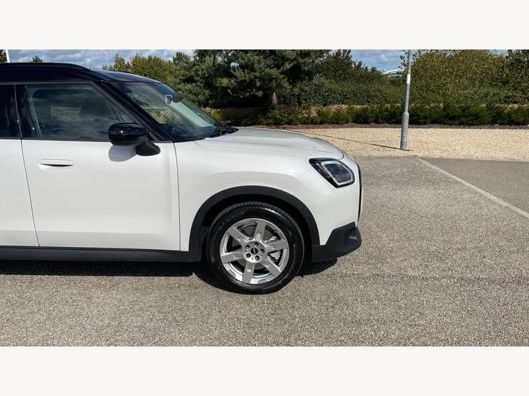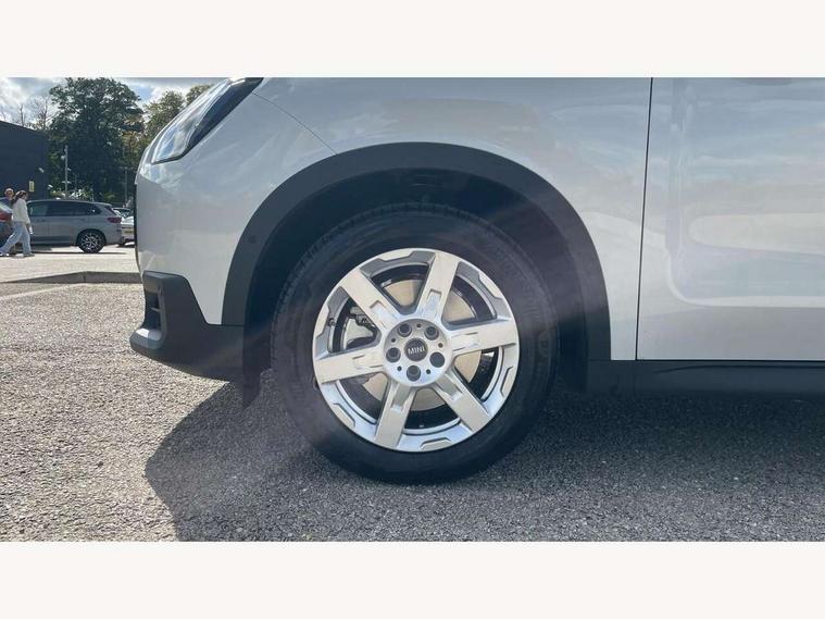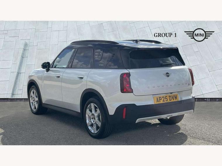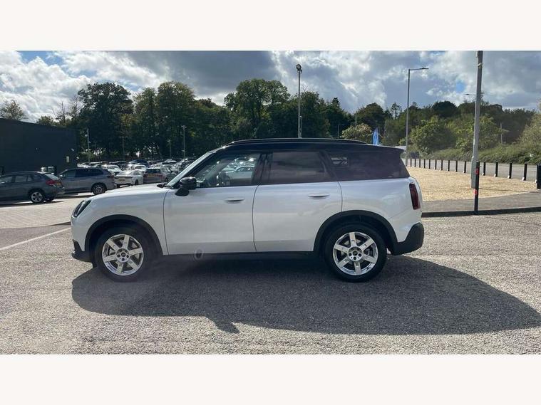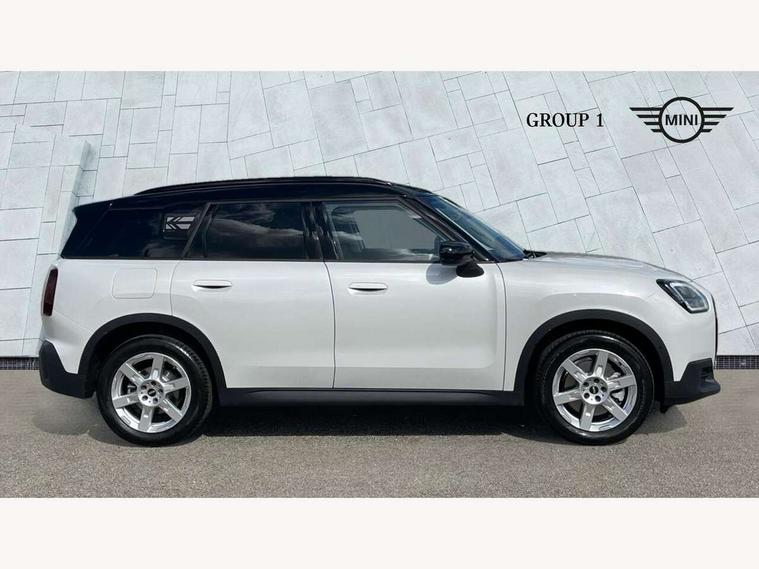 Bluetooth connection, Circular OLED Screen, Compatible mobile phone bluetooth with audio streaming, Cruise Control (DCC), Digital dashboard display, Driving assistant, Driving Assistant Plus Preparation, E-call, Electro-mechanical speed dependant steering assistance, MINI Experience Modes, MINI Head up display, Mini navigation system, MINI TeleServices, Parking assistant in camera and ultrasound based assistance system, rear view camera, parking aid and distance control, Auto transmission with Paddles, Larger capacity fuel tank, 6 speakers, DAB Digital radio, Personal eSim, Auto tailgate, Electric adjustable heated door mirrors, Front and rear electric windows, Heated rear window, High beam assistant, Interior rear-view mirror with automatic anti-dazzle function, LED daytime running lights, LED headlights with extended contents including Adaptable light signatures, LED rear lights, LED third brake light, Rain sensor with auto headlights, Rear side wing doors, Rear window wiper, Roof rails, 3 Seat sliding rear bench in 2nd row, 60/40 split rear bench seat, Auto air conditioning, Driver and front passenger seat heating, Floor mats, Front armrest, Front headrests, Heated steering wheel, Height and length steering column adjustment, Light headliner, Luggage compartment separating net, Rear headrests, Seat adjustment for rear seats, Single front passenger seat, Sport Vescin Steering Wheel, Sunvisors with vanity mirrors, Vescin/Cloth upholstery, Wireless charging tray, Interior and exterior mirror package - Mini Countryman, 3x3 point rear seat belts, 6 Airbags - front, side, head and seat belt tensioners, ABS, DSC - Dynamic Stability Control, Electronic handbrake, Electronic Stability Programme (ESP), Front ISOFIX (iSize), Hill descent control, Hill hold assist, Hill start assist, Manual rear child locks, Traction control, Tyre pressure monitoring system, Warning triangle, Alarm system with tilt sensor, monitoring doors, bonnet interior and tailgate, Auto drive away locking, Comfort access system, Deadlocking function, Electronic vehicle immobiliser, Locking wheel bolts, Remote control locking, Start/stop toggle with keyless go, Black/Blue dashboard knit, MINI Mobility Kit,