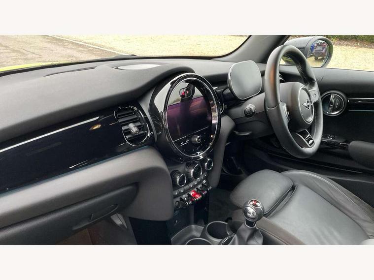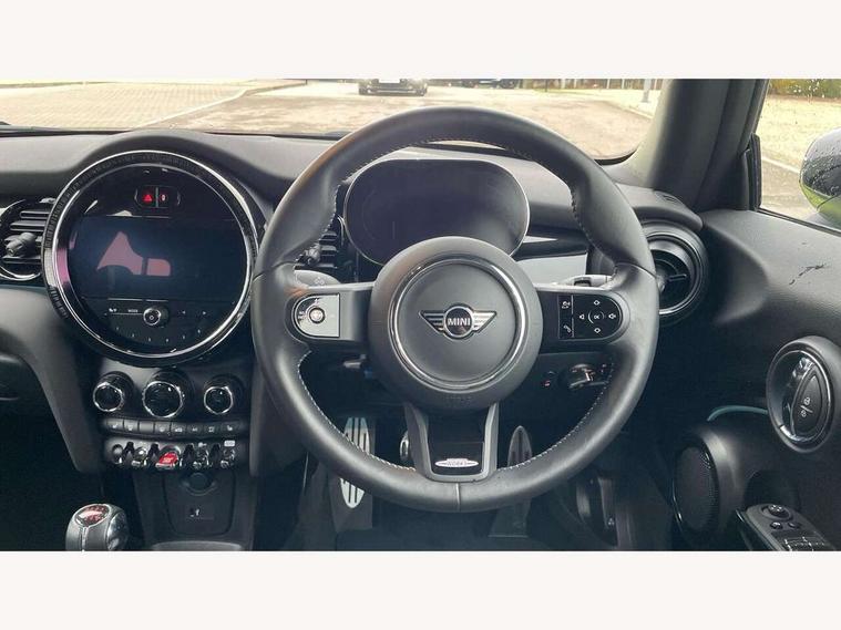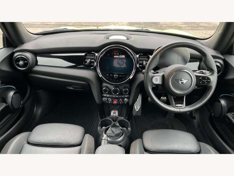 Automatic start/stop function with brake energy recuperation, Compatible mobile phone bluetooth with audio streaming, Electro-mechanical speed dependant steering assistance, Instrument cluster, MINI Driving Modes - centre toggle switch to control driving setting (sport, mid and green), Mini E-call, MINI TeleServices, On board computer, Service interval indicator, Double Vanos system, Fully variable valve control, Gear change indicator display, High precision injection, Performance Control, FM tuner and DAB digital radio, Automatic headlight activation switch, Bonnet scoop, Chrome border honeycomb structure radiator grille with S badge, Chrome plated fuel cap, Dynamic brake lights, Electric front+rear windows, Heated rear window, Heated windscreen washer jets, John Cooper Works - aerodynamic kit (front and rear apron, spoiler), front and rear sport bumpers and part-painted side sills with door sill finishers, John Cooper Works rear spoiler, Metal door sill strips with Cooper S imprint, Model logo Cooper S on right of tailgate, Rain sensor window wipers, Rear fog lights, Rear LED lights with union jack design, Rear window wiper, Side scuttle panel with integrated indicator, Sun/heat protection glass, Two central exhaust tailpipes with chrome finisher, White indicator lenses, 12V Accessory socket in centre console, 4 lashing eyes in luggage compartment, 60/40 split folding rear seat, Anthracite headlining, Carbon Black colour line, knee roll and door armrests, Chrome interior highlights, Cupholders, Front and rear head restraints, Front and rear isofix with front passenger airbag deactivation, Glove compartment, Height and length steering column adjustment, Interior lighting with 12 basic colours selectable via toggle switch in roof, John Cooper Works leather steering wheel with contrasting stitching in Chilli Red with John Cooper Works logo, John Cooper Works Logo in seat, Leather gearshift lever and handbrake gaiters, LED reading lights, vanity mirror lights, front foot well light and spotlight on front seats, Mechanical seat adjustment, driver seat height adjust, forward/back and front seats backrest, Mini logo projection on floor from drivers exterior mirror, Multifunction steering wheel, Storage compartments in doors, Storage pocket on back of front seats, Sunvisors with vanity mirrors, 3 point seatbelts on all four seats, 6 Airbags - front, side, head and seat belt tensioners, Anti-lock braking system (ABS), DSC - Dynamic Stability Control, Front and rear disc brakes, Hill start assist, Two tone horn, Tyre pressure monitoring system, Alarm system with tilt sensor, monitoring doors, bonnet interior and tailgate, Electronic vehicle immobiliser, Start/stop toggle with keyless go, Tool kit,