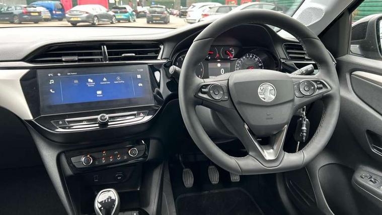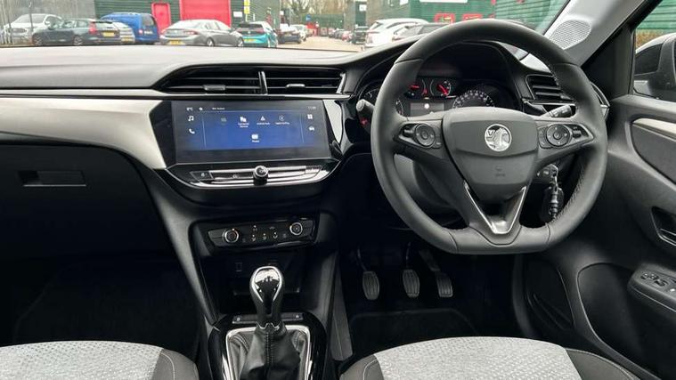 3.5" colour digital instrument cluster, Apple car play/Android Auto, Breakdown call (b-call), Central facia display with digital clock, outside air temperature and audio information, Cruise control with intelligent speed limiter, Driver drowsiness alert system, E-call, Engine oil life indicator, Front camera system, Instrumentation - Speedometer, rev counter, low fuel gauge warning light + water temperature gauge warning light, Lane departure warning, Lane keep assist, Lights on audible warning, Multi function trip computer, RDS with traffic programme, Rear parking distance sensors, Service indicator, Smartphone projection, Speed sensitive power steering, Speed sign recognition, Start/stop system, Vauxhall connect box, Electronic returnless fuel system, Petrol Particulate Filter, Under body shield for aero, AM/FM stereo radio, Bluetooth A2DP audio streaming function (Advanced audio distribuition profile), DAB Digital radio, Multimedia with 10-inch touchscreen, Six speakers, Steering wheel audio, phone and cruise controls, USB type C port, 3rd brake light, Automatic headlight control system, Black door mirror housings, Black lower side window mouldings, Body colour door handles, Body colour front and rear bumpers, Body colour roof and A pillar, Bonnet/headlight/wiper structure, Chrome-effect Griffin logo and Black vizor frame, Corsa lettering in tailgate, Electrically operated front and rear windows with safety auto reverse and one touch up/down facility, Electrochromic automatic anti-dazzle rear view mirror, Flexible roof mounted aerial, Glazed tailgate and heated rear window with wash/wipe facility, Hazard warning lights, Headlamps for left side traffic, High beam assist, LED daytime running lights, LED Headlights, Rain sensitive windscreen wipers, Rear fog lamp, Rear reversing lights, Rear side wing doors, Rear wiper, Solar heat absorbing windscreen and windows, Two speed windscreen wipers with variable intermittent wipe, Windscreen and side window demist vents, 12V power sockets, 3 bench rear seats in 2nd row, 3 spoke flat bottomed leather effect steering wheel with satin chrome effect bezel, 4 speed fan with illuminated controls, 4 way manual co-driver seat reach fore/aft, backrest upright/recline, 6 way manual adjustable driver seat height up/down, reach fore/aft, backrest upright/recline, 60/40 split folding rear seat, Air conditioning with air recirculation facility, Cabin particulate filter - removes dust, airborne particles and pollen, Cloth upholstery, Comfort front seats, Driver/passenger sunvisors with vanity mirrors + covers, Four adjustable facia vents, Front cupholder, Front headrests, Height adjustable head restraints, Illuminated glovebox with lid, Interior courtesy light, Internal chrome door handles, IP plastic insert single piece, LED boot light, Polyurethane gear knob/lever, Reach and rake adjustable steering column, Rear cupholder, Rear headrests, Right hand drive (RHD), Single dome lamp with dual front reading lamps, Single front passenger seat, Two litre open door pockets, 3 rear 3 point seatbelts, Anti-lock braking system (ABS), Automatic emergency braking with pedestrian detection, Cornering brake control, Deactivation switch for front passenger's airbag, Drag torque control, EBD - Electronic brakeforce distribution, Electrical child lock system in rear door latch, Electronic Stability Programme (ESP), Emergency brake assist, Forward collision alert, Front seatbelt unfastened audible warning and warning light, Hill hold and start system, ISOFIX child seat mountings incorporating top tether anchor points located on second row rear seats, Manual handbrake, Seatbelt pretensioners, Single tone horn, Six airbags - Driver's dual stage airbag/front passenger's dual stage airbag/front seat side impact airbags/full size curtain airbags, Straight line stability control, Traction control, Tyre deflation detection system, Tyre pressure monitoring system, 2 keys one folding with integral remote, Electronically protected audio equipment, Engine deadlock and immobiliser, Freewheeling door locks, Locking wheel nuts, Remote control central locking, Remote locking fuel filler flap, Steering column lock, Visible vehicle identification number, Akoya grey fascia with high gloss black insert, 16" Grey alloy wheels,