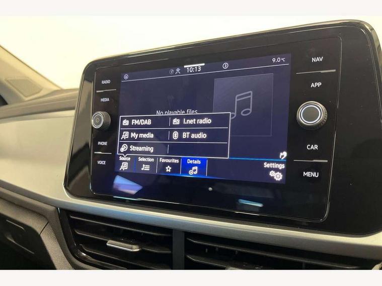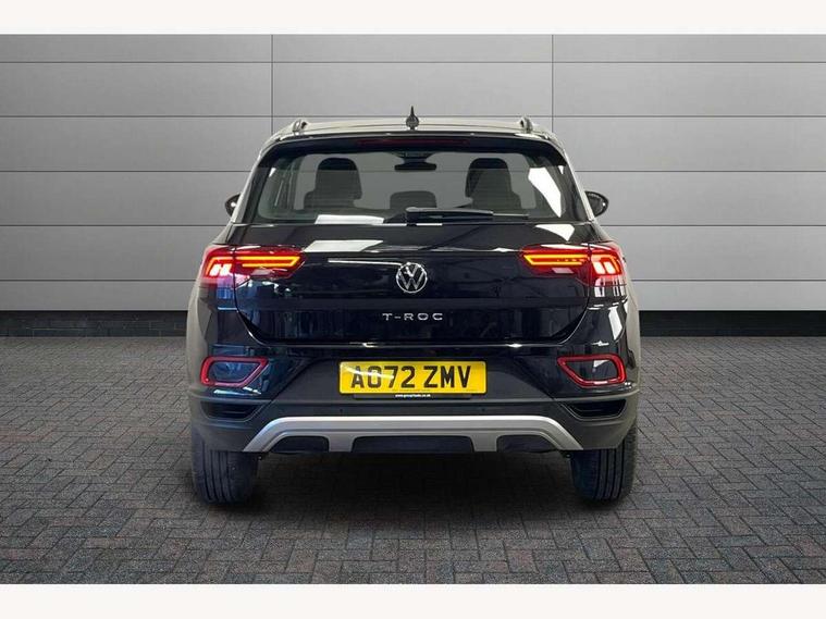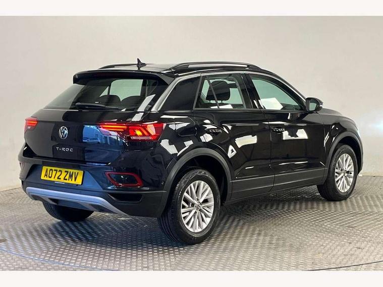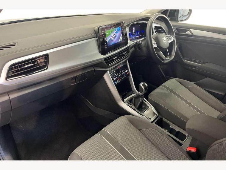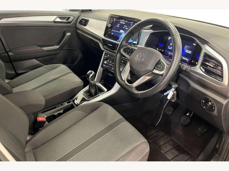 Bluetooth mobile phone interface, Driver alert system with fatigue detection, Driver tips and journey analysis, Emergency call service, Lane keeping system Lane Assist, Modified key software - reduce switch off time for key status change to Long no motion, Online services, Park assist including front and rear parking sensors, Power assisted speed sensitive steering, Service interval indicator, Tailgate/trunk lid release from outside, Think blue trainer driver tips and journey analysis, Warning sound and light for front seatbelts unfastened, Wireless app connect, Battery regeneration during braking, Front shock absorption, Rear shock absorption chassis with increased ride height, Start/stop function with battery regeneration, DAB Digital radio, Diversity antenna for FM reception, Front and rear 6 speakers, Music playback - MP3, WMA and AAC files, Premium USB cable in choice of either Apple or Android smartphone compatibility, SD card slot, Simultaneous pairing of 2 compatible mobile devices, Title and cover art display, We Connect and We Connect Plus functionality, 3rd brake light, Auto dimming interior rear view mirror, Automatic hazard lights activation under emergency braking, Automatic headlight control with LED separate daytime running lights with coming/leaving home function, Black roof rails, Body coloured bumpers and radiator grille with chrome trim and front fog lamps with chrome bezel, Body coloured exterior mirror housings and door handles, Extended roof spoiler, Exterior mirrors aspherical on driver side, convex on front passenger side, External USB type C socket and charging sockets, Front windscreen wiper with intermittent wipe and 4 position delay, Heated rear window, LED Headlights, LED rear combination lamps, LED rear number plate lights, LED tail lamp rear comination lamps, Power windows with comfort operation and circuit breaker, Rain sensor, Rear exhaust tailpipe, Rear fog light on one side and reversing lights on both sides, Rear side wing doors, Rear wash/wipe with intermittent wipe setting, Remote electrically foldable door mirrors, puddle lights and reverse activated passenger's door mirror, 12V power socket in centre console, 3 rear head restraints, 3 seat bench in 2nd row, 4 load lashing points in luggage compartment, Air care climatronic air conditoning system with active combination filter and 2-zone temperature control, Ambient lighting with mirror logo projection, Cloth upholstery, Door and side trim panel in cloth, Drawer under drivers seat, Driver/front passenger seat height adjustment, Front centre armrest, Front comfort sports seats, Front cupholders x 2, Front reading light, Instrument lighting, white adjustable panel illumination, Interior light delay, Isofix child seat preparation, Leather gearshift handle, Load-through provision with cup holder when folded down ('Unsplit rear seat bench, split folding backrest, with centre armrest), Luggage compartment lighting, Lumbar support for driver's and front passengers seat, Non-folding front passenger seat backrest, Single front passenger seat, Storage compartment in left and right luggage area, Storage compartment in rear doors, Storage compartments in driver and front passenger doors, Sunvisors with illuminated vanity mirrors, Variable boot floor, height adjustable and removable, Driver assistance pack without proactive passenger protection - T-Roc, 3 point height adj front seatbelts + pretensioners, 3 point seatbelts in outer rear with ECE label, ABS, Child locks on rear doors, Driver and front passenger airbag with front passenger airbag deactivation, Driver and front passenger safety-optimised head restraints, Drivers seatbelt reminder, Electronic parking brake, Electronic Stability Control (ESC) inc EDL (Electronic Differential Lock) and ASR (Traction Control), Front and rear passengers curtain airbag system including front side airbags, Front assist with city emergency braking and pedestrian monitoring, Front disc brakes, Front seat side impact airbags, Hill start assist, Predictive pedestrian protection, Rear disc brakes, Single tone horn, Tyre pressure loss indicator, Volkswagen roadside assistance, Alarm with interior protection, Anti-theft alarm system with interior monitoring, backup horn, and towing protection, Remote central locking with SAFELOCK, radio remote control with 2 remote control folding keys, Pewter matt decorative inserts for intrument panel, centre console and door panels at the front, Trims for alloy wheels,