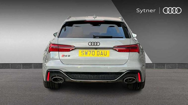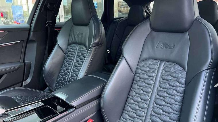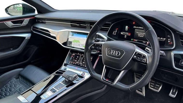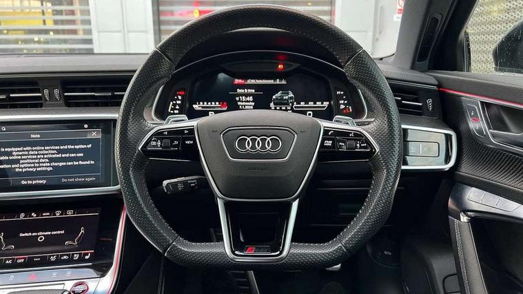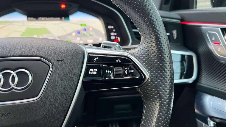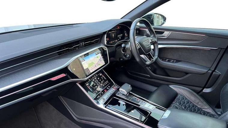 360 degree parking camera, Audi connect safety and service (e-call), Audi drive select, Audi phone box with wireless charging, Audi smartphone interface, Audi Virtual Cockpit with RS specific design and 12.3" display, Automatic start/stop system, Bluetooth interface, Dynamic all wheel steering, Head up Display, Lane departure warning system, MMI navigation with MMI touch + twin touch screens 10.1" and 8.6" with haptic and acoustic feedback, Operating buttons in black, glass look with haptic feedback including extended aluminium look, Power door closure, Power latching doors, Power operated tailgate, Service interval indicator, Voice control system, 73 litre fuel tank, Increased top speed to 174mph, Quattro sports differential, RS Sports suspension plus with dynamic ride control, Audi music interface, Audi music interface at rear, Bang & Olufsen 3D Premium Sound System, DAB Digital radio, Adaptive windscreen wipers with integrated washer jets, Black mirror caps, Body colour rear roof spoiler, Electric front/rear windows, Electric Panoramic opening glass sunroof, Electrically folding auto dimming/adjustable/heated door mirrors with LED side indicators and kerb view function for passenger side, Frameless auto dimming interior rear view mirror, HD Matrix LED headlights with Audi laser light with dynamic light design and dynamic turn signal, Headlight washers, Heat insulating glass in side and rear windows, Illuminated door sill trims with RS lettering, LED rear combination lamps with dynamic light design and dynamic turn signal, Privacy glass with rear/side windows and acoustic glazing side windows, Radiator grille in honeycomb structure, large front air inlets and rear diffuser in gloss black, Rain and light sensors, Rear sports exhaust system with gloss black oval tailpipe, Rear wiper, RS front bumper with air inlets on both side, Towbar preparation, Wheel arch extensions, 3 spoke RS flat bottomed leather multifunction steering wheel with shift paddles, heated funtion, contrast stitching, RS mode button and RS emblem, 4 way electric lumbar support for driver and front passenger, 4 zone deluxe automatic climate control, Aluminiium gear shift paddles, Audi Sport logo projection (Audi Beam) in front and rear, Black cloth headlining, Electric steering wheel adjustment, Electrically adjustable front seats with driver memory, Front and rear headrests, Front centre armrest, Front seat ventilation, Front/rear floor mats, Heated front and rear seats, ISOFIX child seat mounting and Top Tether with front passenger airbag deactivation, RS Front sports seats, Stainless steel pedals and foot rest, Valcona leather upholstery with perforated honeycomb and RS lettering, Air quality pack - RS6, City assist pack - RS6, Extended LED interior multi coloured lighting pack - RS6, Gloss black styling pack - RS6, Parking assistance plus pack - RS6, Storage pack - RS6, Tour pack - RS6, 2 x 3-point rear seat belts, Airbags - Front side, front and rear including head, Audi pre-sense front, Direct tyre pressure monitoring system, EBD - Electronic brakeforce distribution, Electromechanical parking brake, Electronic Stability Control (ESC) including ABS, ASR and EDL, Extended pedestrian protection measures, Warning triangle and first aid kit, Advanced key, Anti theft alarm with tow away protection, Anti-theft wheel bolts and wheel loosening detection, Immobiliser, Keyless Go, Remote central locking, 22" Titanium matt gloss turned finish alloy wheels, Tyre repair kit,