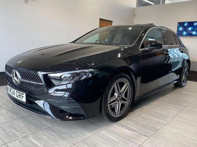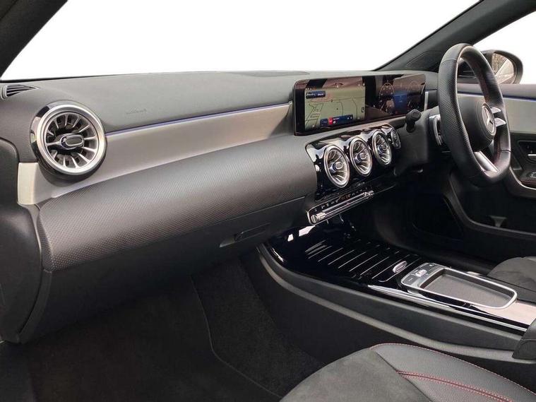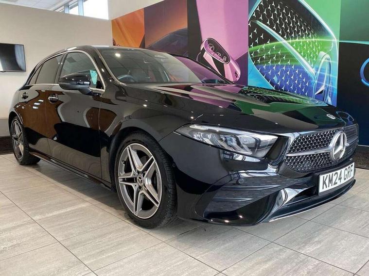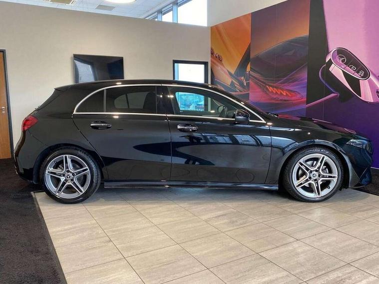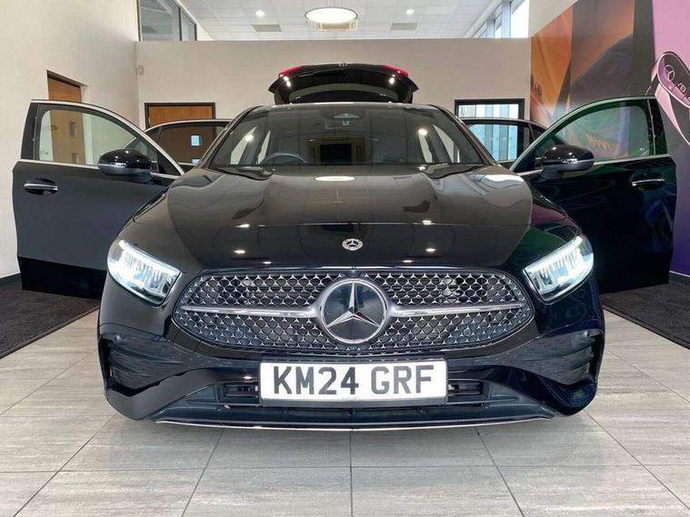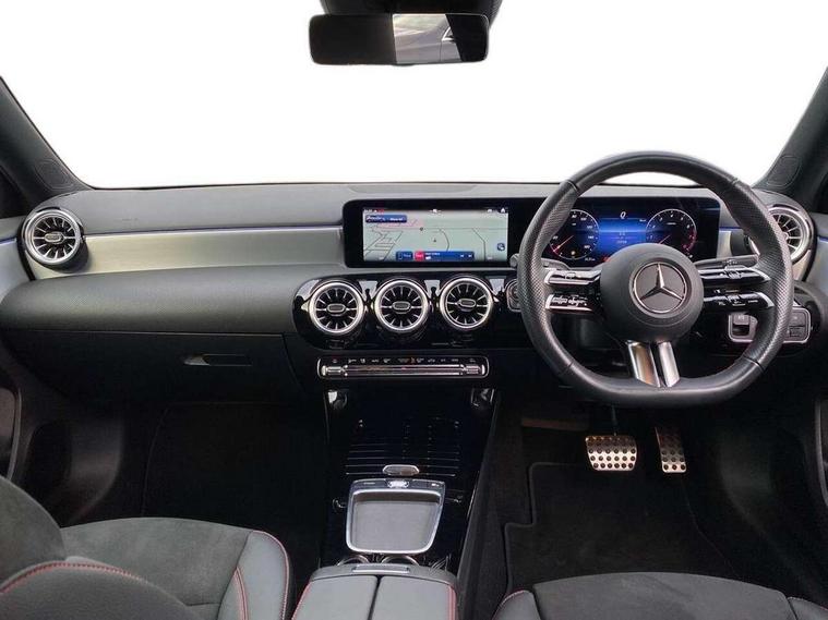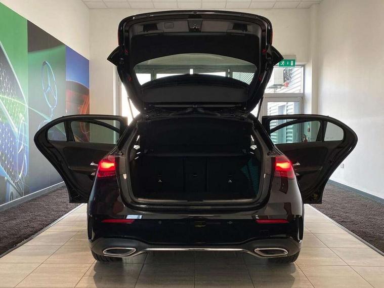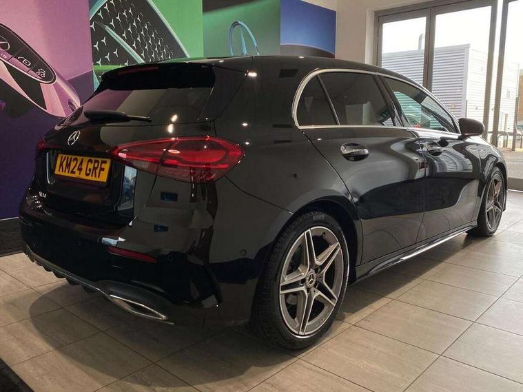 10.25 inch touchscreen central media display, 10.25" Digital instrument cluster display screen, Attention assist, Blind spot assist, Brake pad wear indicator warning light, Car wash mode, Cruise control + speed limiter, Direct steering, Direction indicators with lane change function, Dual bluetooth interfaces, DYNAMIC SELECT with a choice of driving modes (ECO, Comfort, Sport and Individual), Easy pack tailgate hands-free access, ECO start/stop function, Engine start/stop button, Fluid level warning indicator for fuel, oil, coolant and washer fluid, Fluorescent jacket for driver, Hard-disk navigation, Hey Mercedes Voice activation, Lamp failure indicator, Lane keeping system, MBUX augmented reality for navigation, Mercedes me connect including emergency call system, accident recovery, breakdown and maintenance management, Mercedes me remote services, Outside temperature gauge, Owners manual in English, Pre-installation of private car share, Preinstallation for Mercedes Benz link, Remote boot closing, Service indicator (ASSYST), Smartphone integration with Apple CarPlay and Android auto, Speed limit assist, Speed sensitive power steering, Tailgate, Trip computer in multifunction display with current consumption indicator, Wireless charging, Lowered comfort suspension, DAB Digital radio, MBUX multimedia system, Mercedes Benz advanced sound system (225 W) with 10 speakers, 1 central speaker, speakers on doors, a tweeter on door, one sub woofer + boost amplifier, 4 Electric Front and Rear windows, Adaptive brake lights, AMG body styling - AMG front apron with front splitter and AMG rear apron and visible exhaust tailpipe trim elements, Body colour bumpers, Body colour door handles with chrome inserts, Body colour side skirt, Body coloured door mirrors, Chrome beltline strips, Diamond radiator grille with pins in fine star pattern, Electric adjustable and heated door mirrors with integrated LED side indicators, Exhaust system with 2 visible tailpipe trim elements and rear apron, Headlamp assist automatic headlamp activation, Heat insulating dark tinted rear and rear side windows, Heated glass rear windscreen + timer control, LED High level third brake light, LED High Performance headlamps including integral LED daytime running lamps and adaptive highbeam assist, LED tail lamp, Privacy glass, Radio aerial, Rain sensing windscreen wipers with two sensitivity settings, Rear fog lights, Rear side wing doors, Rear windscreen wiper, Window line trim strip in chrome, 3 seat bench in 2nd row, 3 Spoke flat bottom leather multi function steering wheel with perforated leather in grip area, 4 way lumbar support, 40:20:40 split folding rear seats, Air conditioning - Two zone thermotronic luxury automatic climate control with display, AMG floor mats, Automatic child seat recognition sensor, Black air vents with surround in silver chrome, Black roof lining, Brushed stainless steel sports pedals with rubber studs, Front centre armrest with stowage, Front seat backs luggage nets, Galvanished gear shift paddles on steering wheel, Heated front seats, Height/reach adjustable steering column, Illuminated Mercedes Benz lettering front door sills with changeable cover, Interior lighting - 64 colour Ambient lighting, Interior mirror with reading lamps in black and frameless, Rear armrest with 2 cupholders, Seat occupancy sensor for front passenger seat, Single front passenger seat, Sports seats with integrated headrests, Stowage compartment in centre console with retractable cover, Sunvisors with illuminated vanity mirrors, Twin front cupholders, Light and sight pack - A Class, Mirror package - A Class, Parking pack - A Class, Seat comfort pack - A Class, USB pack plus - A Class, 3 rear 3 point seatbelts, ABS with Brake Assist, Active bonnet, Active brake assist includes forward collision warning system with autonomous braking, Adaptive brake assist with hold function and hill start assist, Black seatbelts, Bonnet with power domes, Childproof locks manually operated for rear doors and electrically operated for rear power windows, Crash responsive emergency lighting, Driver and passenger head and side airbags, Drivers knee airbag, Dual stage driver/passenger airbags, Electronic parking brake, ESP curve dynamic assist, ESP with ASR, Front and rear seatbelt reminder, ISOFIX and top tether child seat fixing points in two outer rear seats, Tyre pressure monitoring system, Warning triangle and first aid kit, Window airbags, Alarm system/interior protection/immobiliser, Guard 360 degree vehicle protection, Keyless entry lock/unlock, Keyless Go, Remote central locking and crash sensor with emergency opening function, Light longitudinal grain aluminium trim, 18" AMG 5 twin spoke light alloy wheels, aerodynamically optimised, painted in termolite grey with high sheen finish, Summer tyres, Tirefit sealant kit,