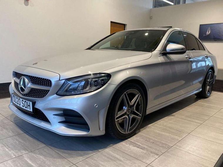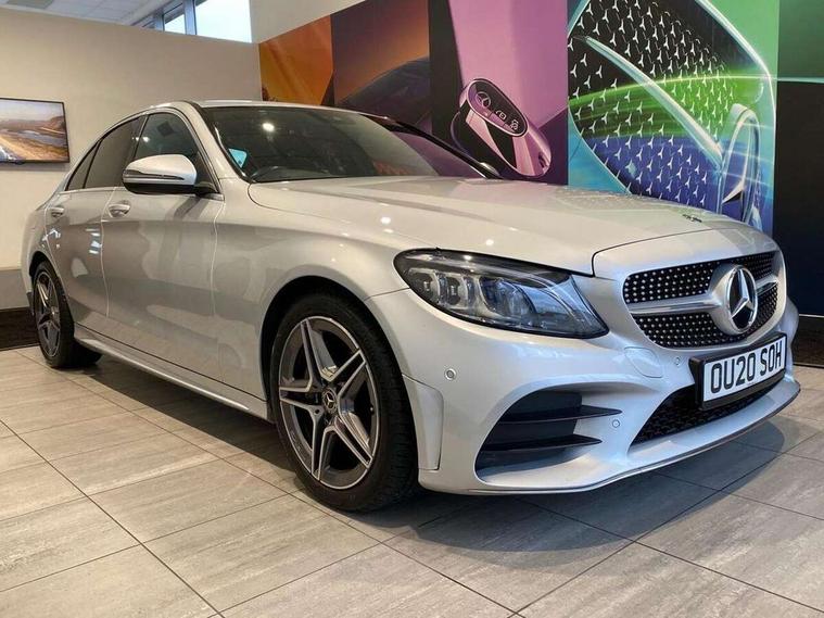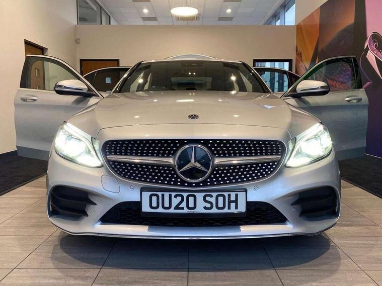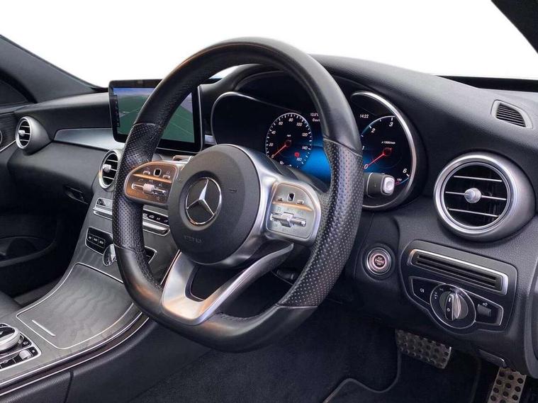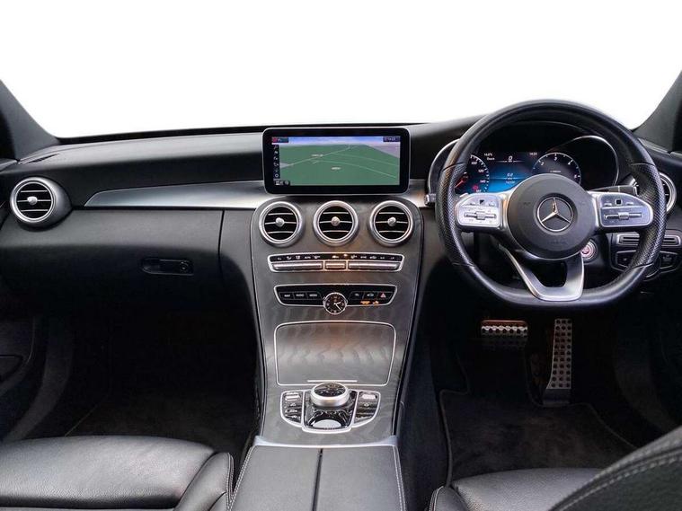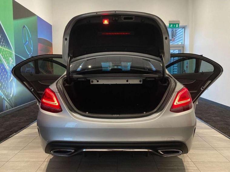 10.25" display screen, Active park assist with parktronic system, Attention assist, Bluetooth system, Collision prevention assist plus, Cruise control with speedtronic variable speed limiter, DYNAMIC SELECT with a choice of driving modes (ECO, Comfort, Sport, Sport+ and Individual), Instrument cluster with display, Multi function trip computer, Multifunction colour display, Navigation system, Outside temperature gauge, Pre-wiring for SD navigation system, Remote boot release, Reversing camera, Service indicator (ASSYST PLUS), Speed sensitive steering, Diesel particulate filter, 2 USB ports in centre console, DAB Digital radio, Frontbass loudspeakers, Mercedes Audio 20 radio/single CD + telephone keypad, SD card slot, Steering wheel mounted audio controls, Adaptive brake lights, Aerial in rear window, AMG body styling, Body coloured bumpers, Body coloured door mirrors, Chrome pins diamond radiator grille with integrated stars, Electric windows one touch open/close, Electrically adjustable and heated door mirrors, Green tinted glass, Heated windscreen washers, LED daytime running lights, LED Headlights, LED Indicators, LED tail lights, LED third brake light, Rain sensor windscreen wipers, Side windows surround in polished aluminium, Twin exhaust pipes, 2 cupholders in front centre console, 3 spoke flat bottom AMG steering wheel in nappa leather, 40:20:40 split folding rear seats, AMG floormats, AMG sports seats, Auto Mercedes-Benz child seat recognition sensor, Dual zone automatic climate control, Electric front seat height adjustment, Front and rear head restraints, Front centre armrest with storage compartment, Front door sills with Mercedes Benz lettering, Gearshift paddles, Heated front seats, Illuminated glovebox, Multifunction steering wheel, Rear top tether child seat ISOFIX attachment, Sports pedals with stainless steel surfaces and rubber studs, Sunvisors with illuminated vanity mirrors, Lighting pack - C class, Mirror pack - C Class, Seat comfort pack - C Class, Stowage space pack - C Class, 3 rear 3 point seatbelts, ABS with Brake Assist, Active bonnet, Adaptive brake system, Black seat belts, Brake calipers with Mercedes-Benz lettering + perforated brake discs, Child proof door locks, Crash sensor, Drivers knee airbag, Drivers pelvis airbag, Dual stage driver/passenger airbags, Electronic parking brake, ESP with ASR, Front passenger seat occupancy sensor, Front side airbags, Hill start assist, Rear seatbelt warning indicator, Tyre pressure monitoring system, Warning triangle and first aid kit, Window airbags, Alarm system/interior protection/immobiliser, Chrome surround in electric key, Remote central locking, Tyre inflation kit,