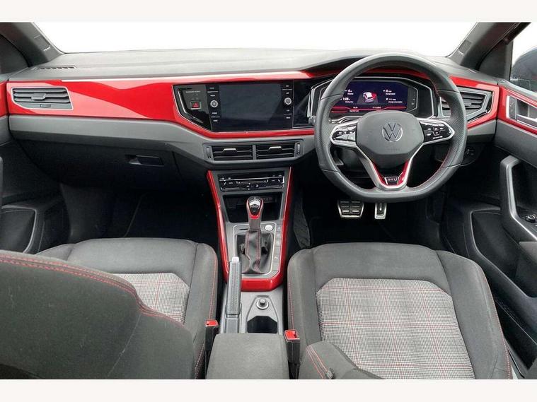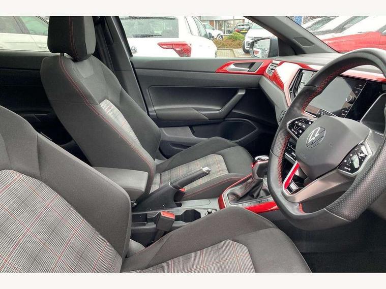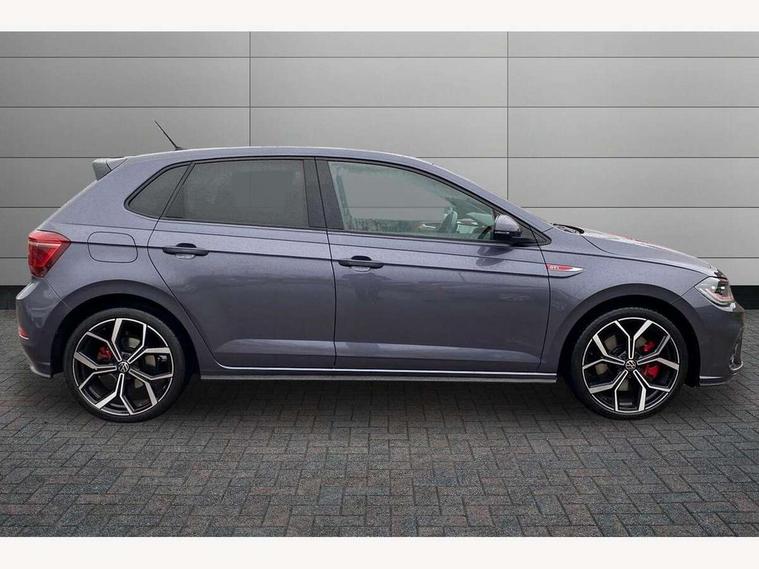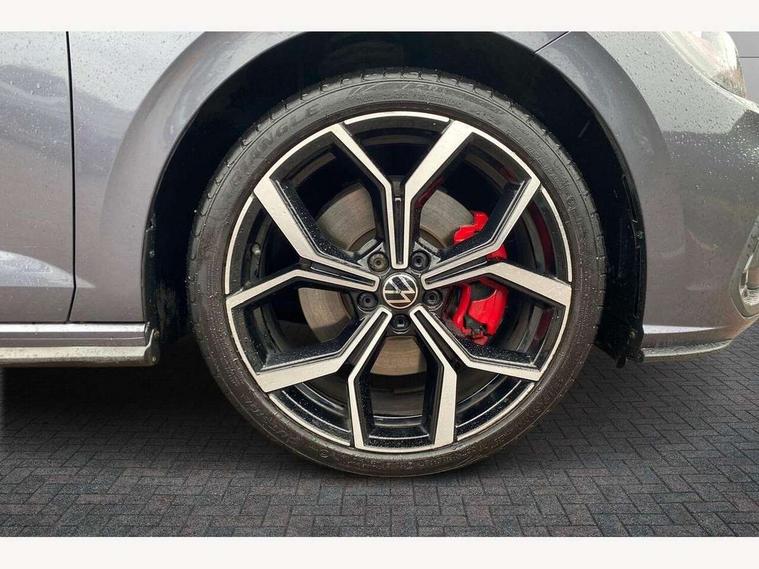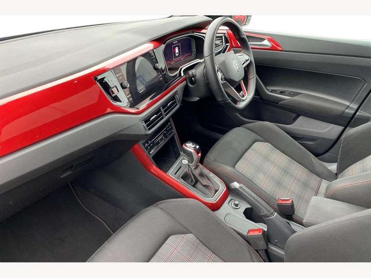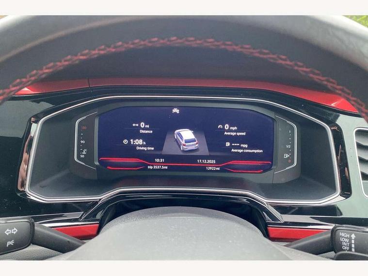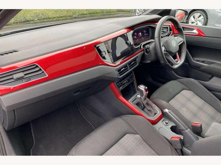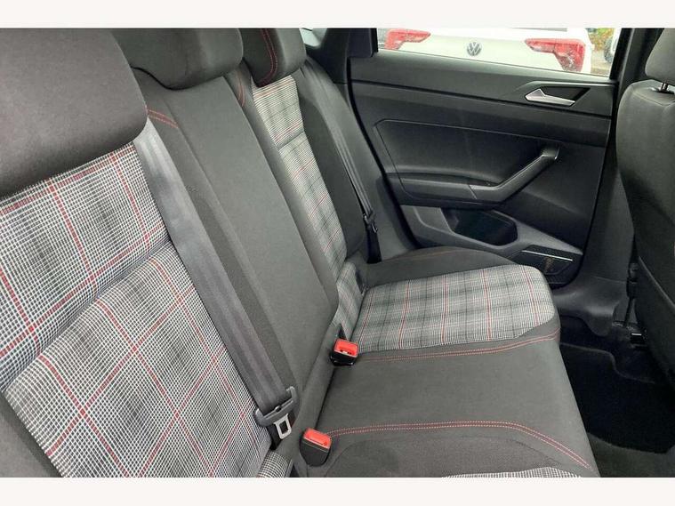 Adaptive cruise control with follow-to-stop and speed limiter, Bluetooth mobile phone interface, Digital Cockpit Pro with 10.25" Display, Driver alert system, Dynamic road sign display, Eco mode, Emergency call service, Power assisted speed sensitive steering, Preparation for We connect and We connect plus, Speedo and rev counter, electronic odometer, trip, service interval display and fuel gauge, Travel Assist - Lane keeping system and traffic jam assist, Travel assist including emergency assist, Trip computer, Warning signal and warning light for front and rear seatbelts not fastened, Washer fluid level indicator, Wireless app connect, Adaptive chassis control, Front wheel drive, Heavy duty rear axle, Rear shock absorpion sports version, Sports select suspension lowered by 15mm, Start-stop system with battery regeneration (recuperation - energy recovery during braking), DAB Digital radio, Diversity antenna for FM reception, Front and rear 6 speakers, Body colour bumpers, Body colour door handles, Electric front windows, Front scuff plates in aluminium with GTI logo, Heat insulating darkened glass in side and rear windows, Heat insulating glass windscreen, Power folding adjustable/heated exterior mirrors and front passenger exterior mirror lowering function, Rear electric windows, Rear fog light, Rear side wing doors, Rear windscreen washer and wiper with interval delay, Sport bumpers with air intakes with honeycomb structure, Third brake light, Twin chrome exhaust tailpipes, 12V power socket in centre console, 2 USB-C ports in the front, 2 USB-C charging sockets on the center console in the rear, 3 rear head restraints, 60/40 split folding rear seat and rear seat bench not split, Air care climatronic air conditoning system with active combination filter and 2-zone temperature control, Black roof lining, Ceramique headliner, Chrome plated radiator grille inserts, air vent surrounds and light switch surrounds, Door and side trim panel, Driver and front passenger seat height adjustment, Driver/passenger sunvisors with illuminated vanity mirrors, Front + rear carpet mats, Front centre armrest, Front footwell illumination, Front seat backrest storage pockets, GTI sports gearshift knob in aluminium leather, Handbrake lever handle in leather, Isofix child seat preparation easy-fit (for two outer rear seats, and front passenger seat) compatible with I-size, LED interior light with switch off delay and dimmer, 2 reading lights front and rear, Luggage compartment cover, Luggage compartment floor, Luggage compartment lighting, Single front passenger seat, Stainless steel pedals, Standard pedal cluster, Three spoke leather wrapped multifunction sports steering wheel with shifting paddles, IQ LED matrix headlights pack - Polo, Light and sight pack - Polo GTI, Sports suspension pack - Polo, 3 point height adj front seatbelts + pretensioners, 3x3 point rear seatbelts, ABS, Driver and front passenger airbag with front passenger airbag deactivation, Drivers and front passengers safety optimised head restraints, ESC (Electronic stability control) + EDL (Electronic Differntial lock) and ASR (Traction control), Extended and predictive pedestrian/ cyclist protection, Front and rear disc brakes with red brake calipers, Front curtain and side airbags with center airbag, Hill hold control, Manual child lock in rear doors, Two tone horn, Tyre pressure loss indicator, Alarm with interior protection, Anti-theft alarm system with interior monitoring, backup horn, and towing protection, Anti-theft wheel bolts, Electronic engine immobiliser, Chrome applications on rotary light, mirror adjustment, window regulator switches, outlet with frame in black, Low rolling resistance tyres,