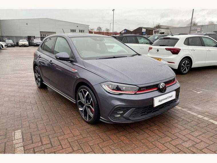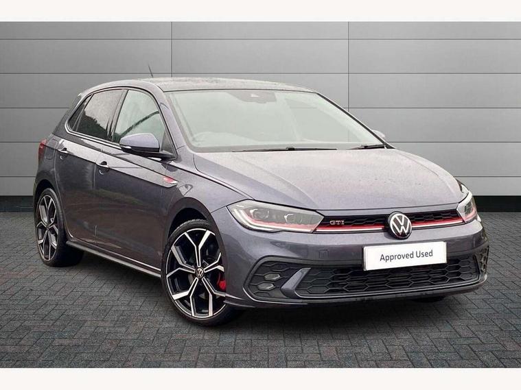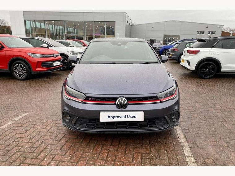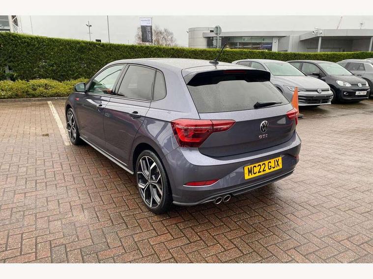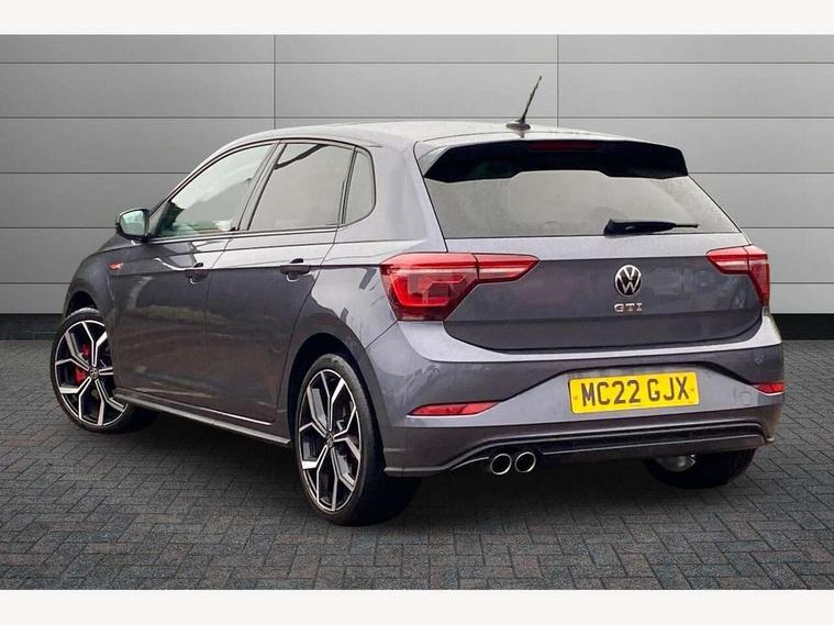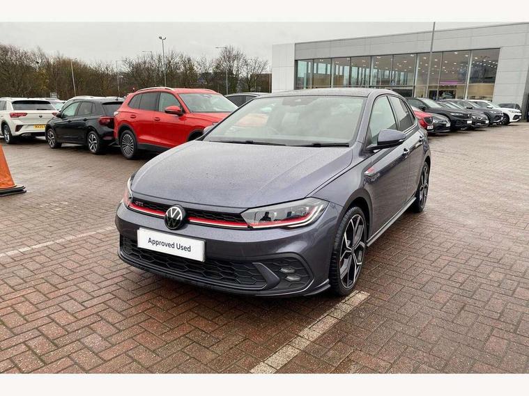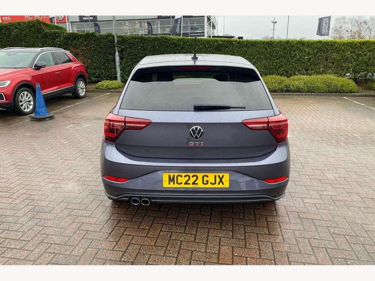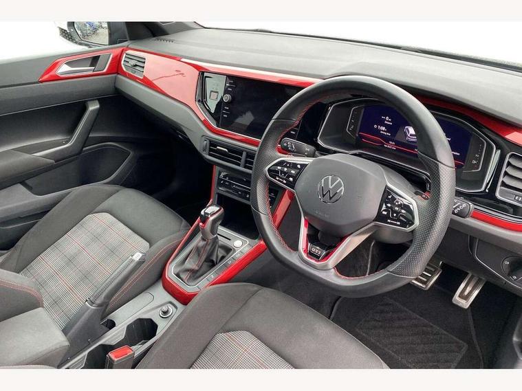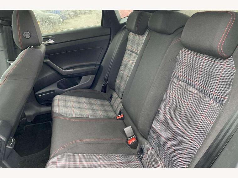 Adaptive cruise control with follow-to-stop and speed limiter, Bluetooth mobile phone interface, Digital Cockpit Pro with 10.25" Display, Driver alert system, Dynamic road sign display, Eco mode, Emergency call service, Power assisted speed sensitive steering, Preparation for We connect and We connect plus, Speedo and rev counter, electronic odometer, trip, service interval display and fuel gauge, Travel Assist - Lane keeping system and traffic jam assist, Travel assist including emergency assist, Trip computer, Warning signal and warning light for front and rear seatbelts not fastened, Washer fluid level indicator, Wireless app connect, Adaptive chassis control, Front wheel drive, Heavy duty rear axle, Rear shock absorpion sports version, Sports select suspension lowered by 15mm, Start-stop system with battery regeneration (recuperation - energy recovery during braking), DAB Digital radio, Diversity antenna for FM reception, Front and rear 6 speakers, Body colour bumpers, Body colour door handles, Electric front windows, Front scuff plates in aluminium with GTI logo, Heat insulating darkened glass in side and rear windows, Heat insulating glass windscreen, Power folding adjustable/heated exterior mirrors and front passenger exterior mirror lowering function, Rear electric windows, Rear fog light, Rear side wing doors, Rear windscreen washer and wiper with interval delay, Sport bumpers with air intakes with honeycomb structure, Third brake light, Twin chrome exhaust tailpipes, 12V power socket in centre console, 2 USB-C ports in the front, 2 USB-C charging sockets on the center console in the rear, 3 rear head restraints, 60/40 split folding rear seat and rear seat bench not split, Air care climatronic air conditoning system with active combination filter and 2-zone temperature control, Black roof lining, Ceramique headliner, Chrome plated radiator grille inserts, air vent surrounds and light switch surrounds, Door and side trim panel, Driver and front passenger seat height adjustment, Driver/passenger sunvisors with illuminated vanity mirrors, Front + rear carpet mats, Front centre armrest, Front footwell illumination, Front seat backrest storage pockets, GTI sports gearshift knob in aluminium leather, Handbrake lever handle in leather, Isofix child seat preparation easy-fit (for two outer rear seats, and front passenger seat) compatible with I-size, LED interior light with switch off delay and dimmer, 2 reading lights front and rear, Luggage compartment cover, Luggage compartment floor, Luggage compartment lighting, Single front passenger seat, Stainless steel pedals, Standard pedal cluster, Three spoke leather wrapped multifunction sports steering wheel with shifting paddles, IQ LED matrix headlights pack - Polo, Light and sight pack - Polo GTI, Sports suspension pack - Polo, 3 point height adj front seatbelts + pretensioners, 3x3 point rear seatbelts, ABS, Driver and front passenger airbag with front passenger airbag deactivation, Drivers and front passengers safety optimised head restraints, ESC (Electronic stability control) + EDL (Electronic Differntial lock) and ASR (Traction control), Extended and predictive pedestrian/ cyclist protection, Front and rear disc brakes with red brake calipers, Front curtain and side airbags with center airbag, Hill hold control, Manual child lock in rear doors, Two tone horn, Tyre pressure loss indicator, Alarm with interior protection, Anti-theft alarm system with interior monitoring, backup horn, and towing protection, Anti-theft wheel bolts, Electronic engine immobiliser, Chrome applications on rotary light, mirror adjustment, window regulator switches, outlet with frame in black, Low rolling resistance tyres,