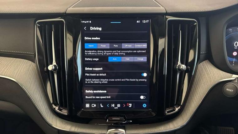 12.3" Progressive Driver Display, 360 degree surround view parking camera with side proximity sensors, 9" centre console touch screen, Adjustable steering wheel force, Apple carplay (wired), Bluetooth handsfree system, Drive mode settings, Driver alert control with lane keeping aid, Emergency services call system, Front and rear park assist, Google Automotive Services, Intelligent speed assistance, Oncoming Lane Mitigation, PAS, Power operated tailgate with handsfree opening and closing, Service interval indicator, Speed limiter, Speed sensitive steering, Trip computer, Volvo cars services with app, Volvo on call with App, Wireless/Inductive Mobile Phone Charging, 2 phase on board charger 6.4kW (home charging limited to 3.7kW), 7m 10amp charge cable with 3 pin plug and 6m 3 phase 16amp type 2/mode 3 charge cable, 8 speed automatic transmission with start/stop + manual change functions, Active four-C chassis + four corner adaptive damper with electronic rear air suspension, Electric rear axle drive, Recharging port located in nearside front wing, DAB Digital radio, Low speed exterior sound speaker, Premium Sound by Bowers and Wilkins, dirac live, dolby pro logic II surround sound, 14 speakers/1100W output and subwoofer, Steering wheel remote infotainment controls, Active bending headlights with adaptive shadow technology, Adaptive brake lights with high level LED brake lights, Auto dimming interior + exterior mirrors, Automatic headlight levelling system, Automatic LED Headlights + Active high beam incorporating daytime running lights, Dark tinted windows for rear side windows and cargo area, Electric adjustable/heated/auto power folding door mirrors, Electric front+rear windows, Headlight cleaning system, High gloss black door mirrors and window surround, High gloss black front and rear bumper decoratives, High gloss black mesh front grille with high gloss black surround, Home safe and approach lighting, Integrated roof rails in high gloss black, Power glass tilt and slide panoramic sunroof with sun curtain, Puddle lights, Rain sensor with automatic windscreen wiper activation, Rear side wing doors, Rear wiper, Roof antenna, Roof spoiler, Tinted windscreen, Visible VIN plate, 12V socket in front tunnel console and luggage compartment, 2 zone electronic climate control with Clean zone air quality system and pollen filter, 3 seat bench in 2nd row, A-pillar parking ticket holder, Air purifier particulate matter (PM) 2.5 filter, B Pillar ventilation, Bright metal luggage scuff plate, Centre console cupholders and storage, Charcoal floor mats, Front and rear courtesy lights, Front and rear door pocket illumination, Front cupholder illumination, Front footwell illumination, Front reading lights, Front seat cushion extensions, Glovebox compartment with illumination, Head restraints for all seats, Heated front seats, Heated steering wheel, Height/reach adjustable steering column, Illuminated luggage compartment, Illuminated vanity mirrors + ticket holder, ISOFIX attachment on outer rear seats, Load cover, Load protection net, Multi directional lumbar support, Power driver seat with memory + exterior mirrors memory, Power folding rear headrests, Power passenger seat with memory, Rear armrest with cupholder, Rear footwell and front and rear side step illumination, Rear reading lights, Rear seat concealed storage, Recharge aluminium tread plates, Single front passenger seat, Tailgate illumination and ambient door lighting, Underfloor stowage compartment, Versatile split folding rear seat - 60/40, Driver assist pack with Driver awareness - XC60, 5 three point seatbelts, City safety with steering support with Pedestrian + cyclist + front collision warning with full auto brake and rear auto brake, Drivers knee airbag, Dual stage driver/passenger airbags, Electronic parking brake with auto hold, First aid kit, Front seats SIPS airbags, Hill descent control - Off-road drive mode, Hill start assist, IC (Inflatable Curtains) - Full Length, Passenger airbag cut-off device, Power child locks on rear doors, Run off Road Mitigation, Run off Road Protection, Seatbelt reminder and pretensioners, SIPS (Side Impact Protection System), Slippery road and hazard light alert, Stability and Traction Control with Spin control, Engine Drag Control and Corner Traction Control, Tyre pressure monitoring system, Vehicle deceleration control with Anti-lock Brake System, Electronic Brake Distribution and Emergency Brake Assist, Warning triangle, WHIPS whiplash protection system - front, Anti-theft alarm including immobiliser/volume sensor + level sensor, Care key with user defined top speed, Key integrated remote control central locking + fuel flap with deadlocking system and auto open/close power windows, Keyless Drive (includes Keyless Entry and Keyless Start), Locking wheel nuts, Private locking for tailgate, Tailored instrument panel with contrast stitching, Tyre sealant kit + 12v compressor,