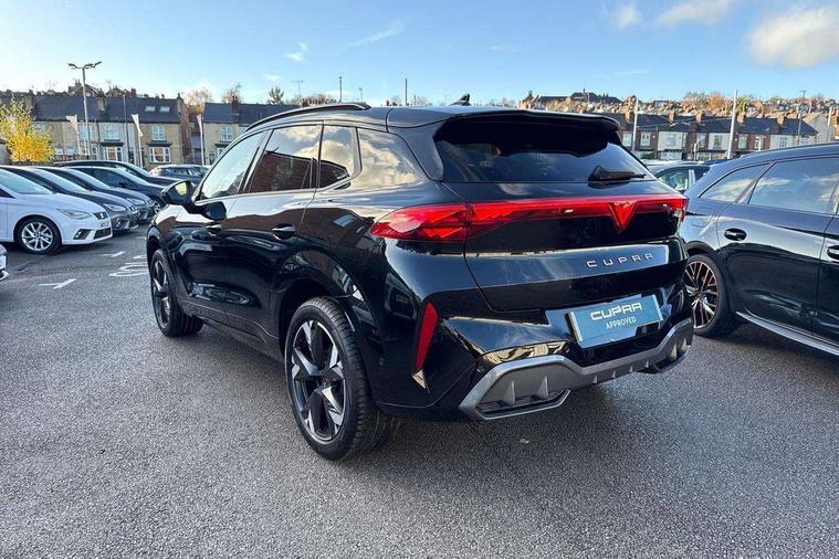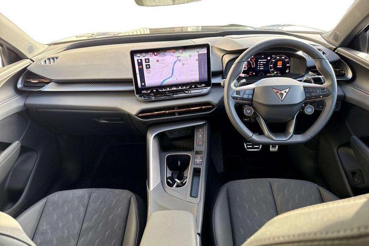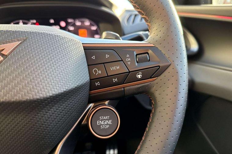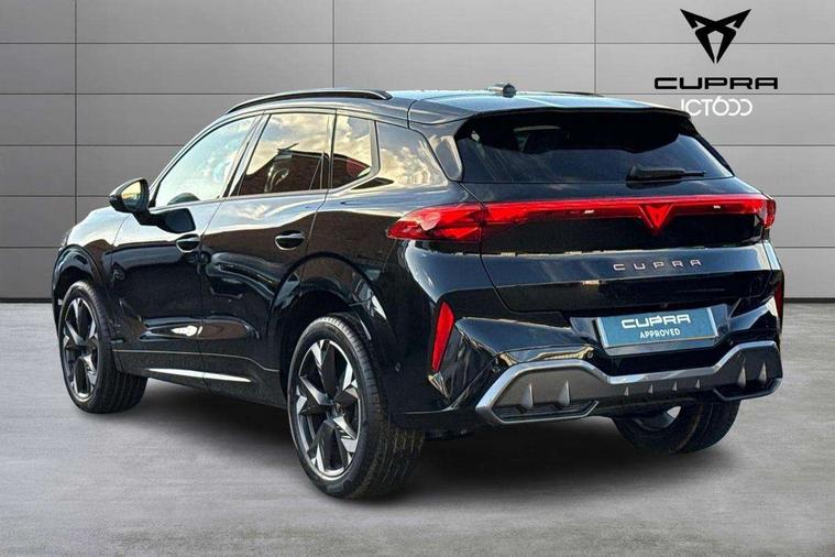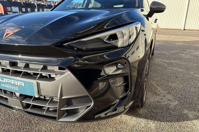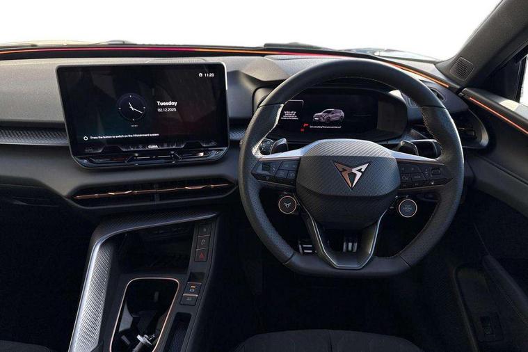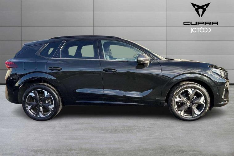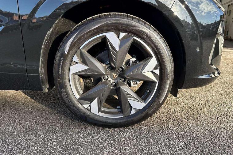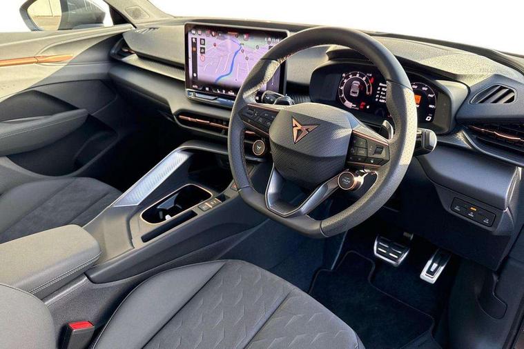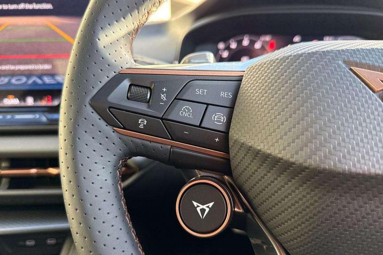 10.25" digital cockpit and configurable dashboard, Adaptive cruise control with follow-to-stop and speed limiter, Advanced driver alert system, Advanced lane assist with semi-automatic vehicle control in a medical emergency and traffic jam assist, Driving profile selection and conventional shock absorber, Dynamic road sign display, E-call, Electric tailgate with virtual pedal, Emergency steering support with turn assist, Four x USB Type C ports (2 in front and 2 in rear), Front and rear parking sensors, Front assist (Forward collision warning with automatic braking) with multifunction camera and front cross traffic assist, Head up Display, Intelligent park assist, Media system with Nav - 12.9" touch display, voice control, full link phone (wired/wireless), DAB and Steering wheel mounted controls, Rear traffic assist, Side and exit assist, Speed sensitive power steering, Start/stop system with regenerative braking, Top view camera (front camera, rear camera, 2 side cameras), Wireless phone charger, Auto dimming rear view mirror, Black roof rails, CUPRA 3D rear lights with ceremony & swiping indicator and illuminated logo, Dark tinted rear windows, Daytime running lights with automatic headlight control and Coming and Leaving home function, Door mirrors with memory function and lowing function on passenger mirror, Dynamic headlight range control, Electric front/rear windows, Electrically adjustable, heated and folding door mirrors, Front fog lamps with cornering function, Heat reflecting windscreen, High beam assist, LED headlamps with signature "CUPRA LED", Rain sensing wipers, Rear fog light on one side, back up light on both sides, Rear side wing doors, Rear wash/wipe, Third brake light, Welcome lights (within exterior mirror housing), 3 seat bench in 2nd row, Black roof lining, Cupra sports pedals, Dinamica cloth upholstery, Driver seat memory function, Electrically adjustable front seats including lumbar support, Front and rear head restraints, Front and rear reading lights X 4, Front centre armrest, Heated front seats, Heated leather wrapped multi function sports steering wheel with tiptronic, Illuminated interior front door sills, Isofix, Operating voltage 12V, Single front passenger seat, Smart wraparound interior lighting, Sunvisors with illuminated mirror, Three zone climate control with control panel in rear, Unsplit rear seat bench, split folding backrest, with centre armrest, Variable luggage/load compartment floor, 3 point seatbelts in front with pretensioner and electric height adjustment, 3 point seatbelts on all rear seats, Brake control system - ESC and brake booster, Child proof door locks, Driver and front passenger airbags, Electronic parking brake, Front and rear disc brakes, Front interaction airbag, Front passenger airbag deactivation switch, Front side airbags with curtain airbags, Pre-crash front and rear seat belt tensioner, window closure and hazard lights, Tyre pressure monitoring system, Visual and acoustic seat belt reminder, electric contact in front and rear, Anti theft alarm, Keyless locking and starting system with keyless access, Locking wheel bolts, Black decorative trims, Chrome interior detailing, 19" Spectrum exclusive machine alloy wheels, Tool kit,