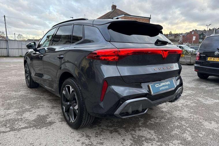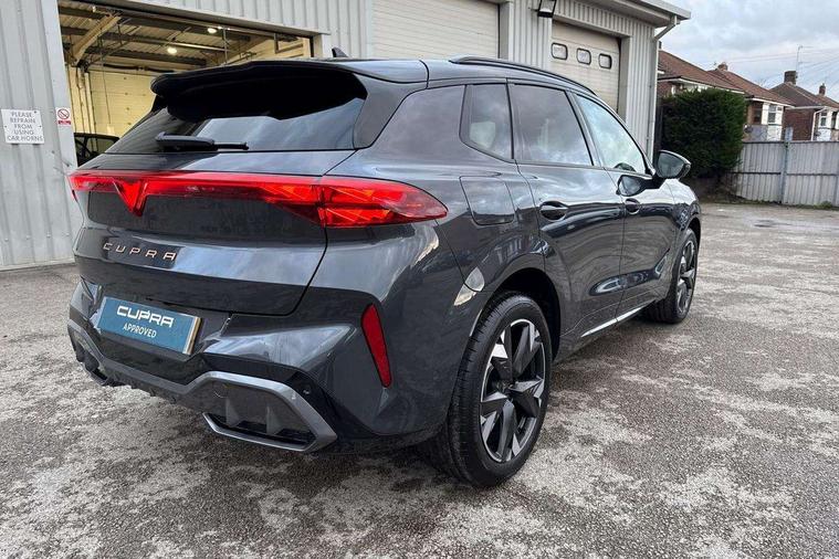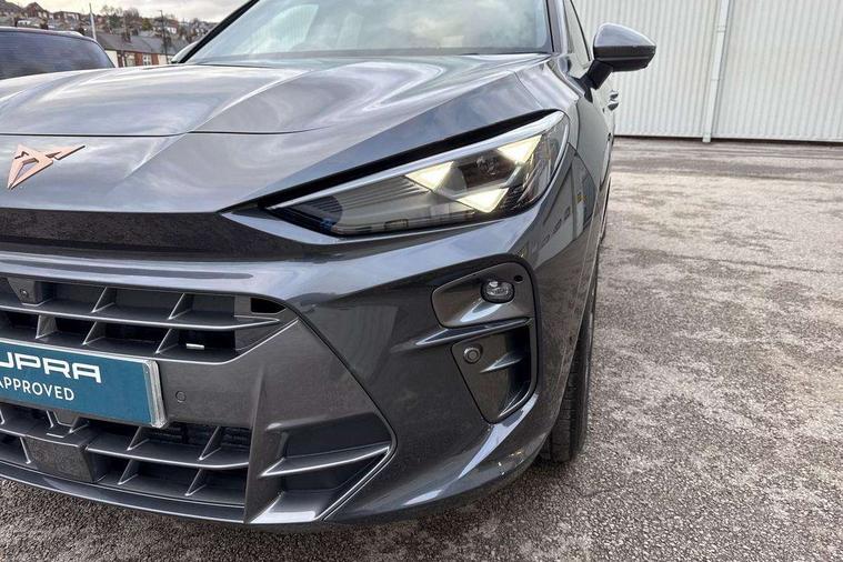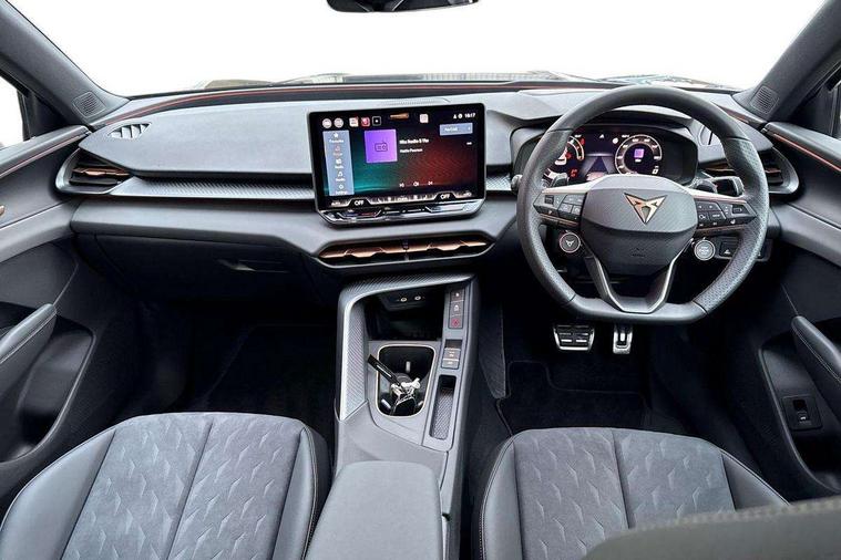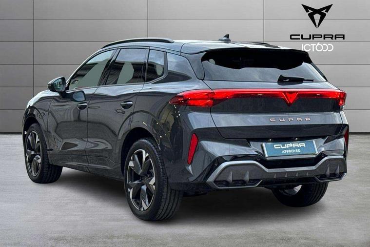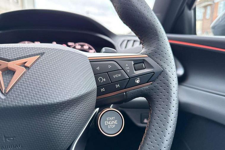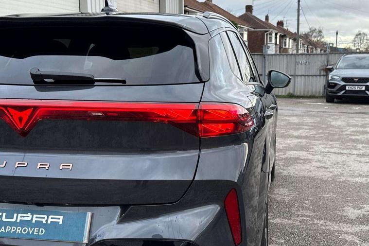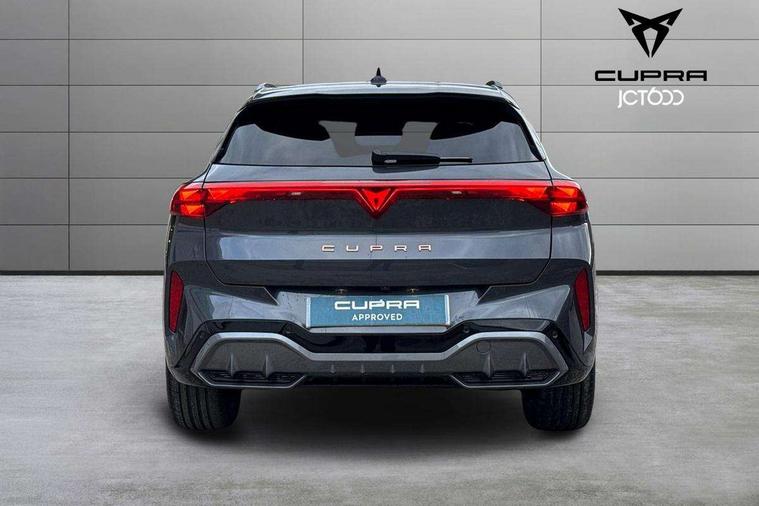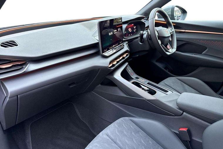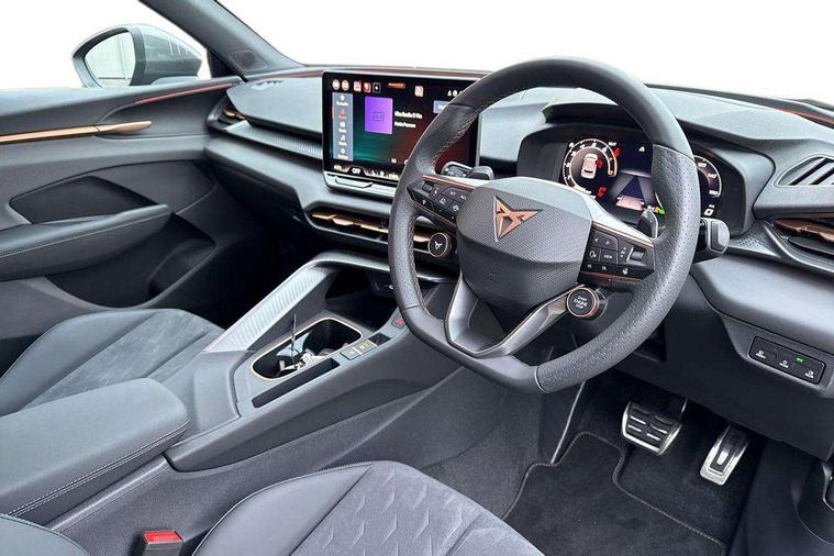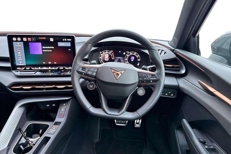 10.25" digital cockpit and configurable dashboard, Adaptive cruise control with follow-to-stop and speed limiter, Advanced driver alert system, Advanced lane assist with semi-automatic vehicle control in a medical emergency and traffic jam assist, Driving profile selection and conventional shock absorber, Dynamic road sign display, E-call, Electric tailgate with virtual pedal, Emergency steering support with turn assist, Four x USB Type C ports (2 in front and 2 in rear), Front and rear parking sensors, Front assist (Forward collision warning with automatic braking) with multifunction camera and front cross traffic assist, Head up Display, Intelligent park assist, Media system with Nav - 12.9" touch display, voice control, full link phone (wired/wireless), DAB and Steering wheel mounted controls, Rear traffic assist, Side and exit assist, Speed sensitive power steering, Start/stop system with regenerative braking, Top view camera (front camera, rear camera, 2 side cameras), Wireless phone charger, Auto dimming rear view mirror, Black roof rails, CUPRA 3D rear lights with ceremony & swiping indicator and illuminated logo, Dark tinted rear windows, Daytime running lights with automatic headlight control and Coming and Leaving home function, Door mirrors with memory function and lowing function on passenger mirror, Dynamic headlight range control, Electric front/rear windows, Electrically adjustable, heated and folding door mirrors, Front fog lamps with cornering function, Heat reflecting windscreen, High beam assist, LED headlamps with signature "CUPRA LED", Rain sensing wipers, Rear fog light on one side, back up light on both sides, Rear side wing doors, Rear wash/wipe, Third brake light, Welcome lights (within exterior mirror housing), 3 seat bench in 2nd row, Black roof lining, Cupra sports pedals, Dinamica cloth upholstery, Driver seat memory function, Electrically adjustable front seats including lumbar support, Front and rear head restraints, Front and rear reading lights X 4, Front centre armrest, Heated front seats, Heated leather wrapped multi function sports steering wheel with tiptronic, Illuminated interior front door sills, Isofix, Operating voltage 12V, Single front passenger seat, Smart wraparound interior lighting, Sunvisors with illuminated mirror, Three zone climate control with control panel in rear, Unsplit rear seat bench, split folding backrest, with centre armrest, Variable luggage/load compartment floor, 3 point seatbelts in front with pretensioner and electric height adjustment, 3 point seatbelts on all rear seats, Brake control system - ESC and brake booster, Child proof door locks, Driver and front passenger airbags, Electronic parking brake, Front and rear disc brakes, Front interaction airbag, Front passenger airbag deactivation switch, Front side airbags with curtain airbags, Pre-crash front and rear seat belt tensioner, window closure and hazard lights, Tyre pressure monitoring system, Visual and acoustic seat belt reminder, electric contact in front and rear, Anti theft alarm, Keyless locking and starting system with keyless access, Locking wheel bolts, Black decorative trims, Chrome interior detailing, 19" Spectrum exclusive machine alloy wheels, Tool kit,