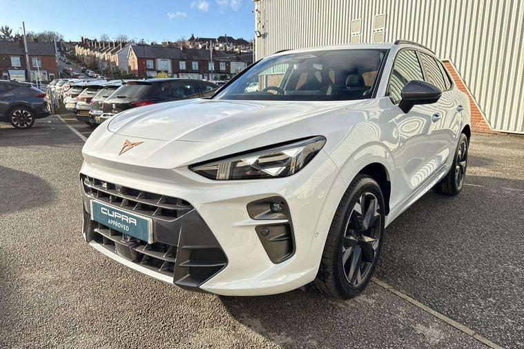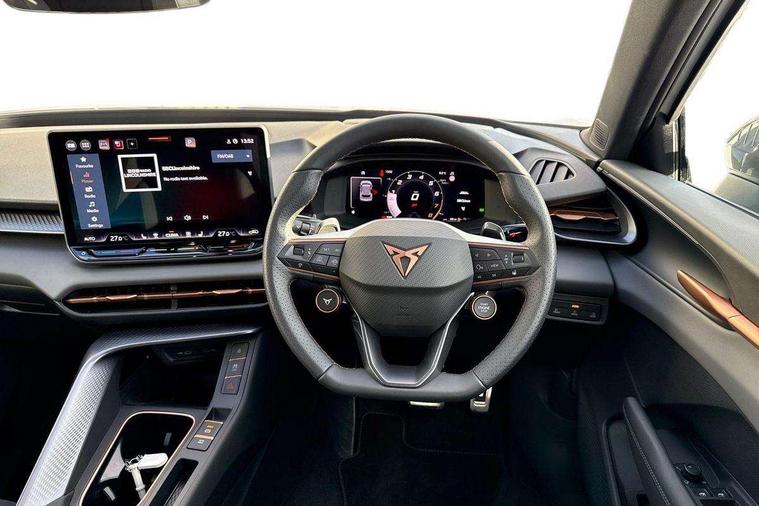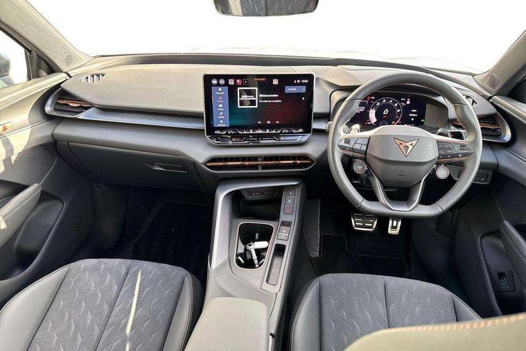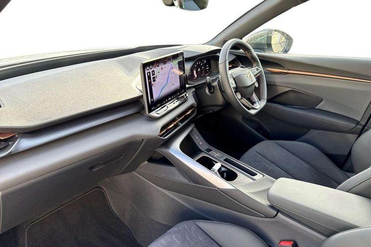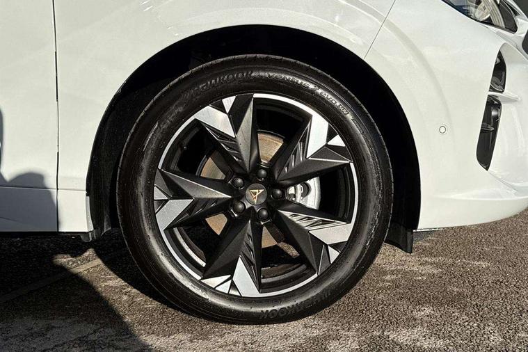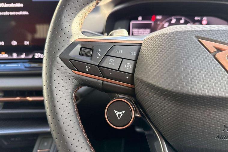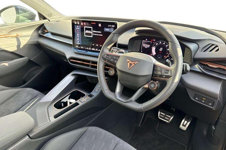 10.25" digital cockpit and configurable dashboard, Adaptive cruise control with follow-to-stop and speed limiter, Advanced driver alert system, Advanced lane assist with semi-automatic vehicle control in a medical emergency and traffic jam assist, Driving profile selection and conventional shock absorber, Dynamic road sign display, E-call, Electric tailgate with virtual pedal, Emergency steering support with turn assist, Four x USB Type C ports (2 in front and 2 in rear), Front and rear parking sensors, Front assist (Forward collision warning with automatic braking) with multifunction camera and front cross traffic assist, Head up Display, Intelligent park assist, Media system with Nav - 12.9" touch display, voice control, full link phone (wired/wireless), DAB and Steering wheel mounted controls, Rear traffic assist, Side and exit assist, Speed sensitive power steering, Start/stop system with regenerative braking, Top view camera (front camera, rear camera, 2 side cameras), Wireless phone charger, Auto dimming rear view mirror, Black roof rails, CUPRA 3D rear lights with ceremony & swiping indicator and illuminated logo, Dark tinted rear windows, Daytime running lights with automatic headlight control and Coming and Leaving home function, Door mirrors with memory function and lowing function on passenger mirror, Dynamic headlight range control, Electric front/rear windows, Electrically adjustable, heated and folding door mirrors, Front fog lamps with cornering function, Heat reflecting windscreen, High beam assist, LED headlamps with signature "CUPRA LED", Rain sensing wipers, Rear fog light on one side, back up light on both sides, Rear side wing doors, Rear wash/wipe, Third brake light, Welcome lights (within exterior mirror housing), 3 seat bench in 2nd row, Black roof lining, Cupra sports pedals, Dinamica cloth upholstery, Driver seat memory function, Electrically adjustable front seats including lumbar support, Front and rear head restraints, Front and rear reading lights X 4, Front centre armrest, Heated front seats, Heated leather wrapped multi function sports steering wheel with tiptronic, Illuminated interior front door sills, Isofix, Operating voltage 12V, Single front passenger seat, Smart wraparound interior lighting, Sunvisors with illuminated mirror, Three zone climate control with control panel in rear, Unsplit rear seat bench, split folding backrest, with centre armrest, Variable luggage/load compartment floor, 3 point seatbelts in front with pretensioner and electric height adjustment, 3 point seatbelts on all rear seats, Brake control system - ESC and brake booster, Child proof door locks, Driver and front passenger airbags, Electronic parking brake, Front and rear disc brakes, Front interaction airbag, Front passenger airbag deactivation switch, Front side airbags with curtain airbags, Pre-crash front and rear seat belt tensioner, window closure and hazard lights, Tyre pressure monitoring system, Visual and acoustic seat belt reminder, electric contact in front and rear, Anti theft alarm, Keyless locking and starting system with keyless access, Locking wheel bolts, Black decorative trims, Chrome interior detailing, 19" Spectrum exclusive machine alloy wheels, Tool kit,